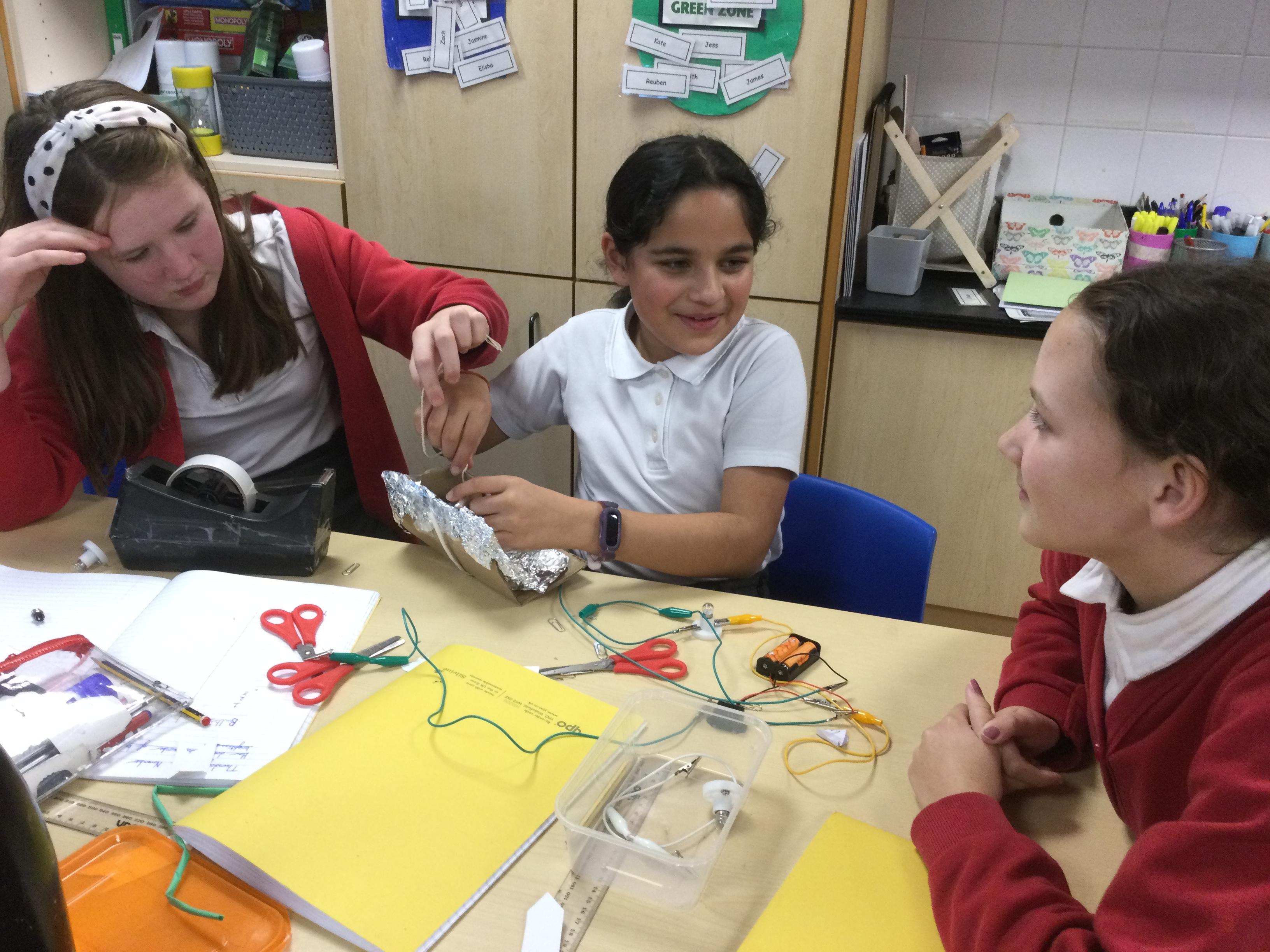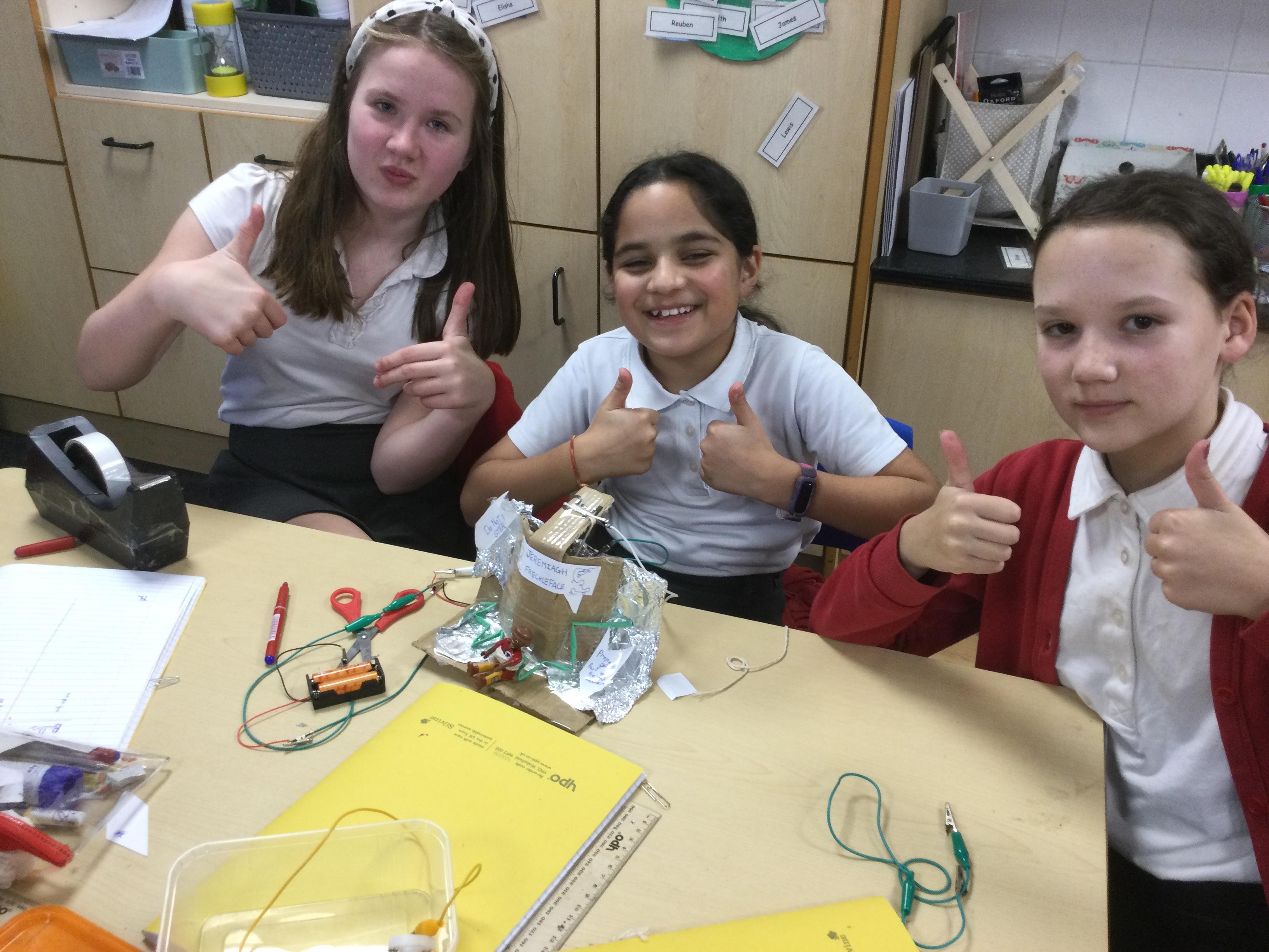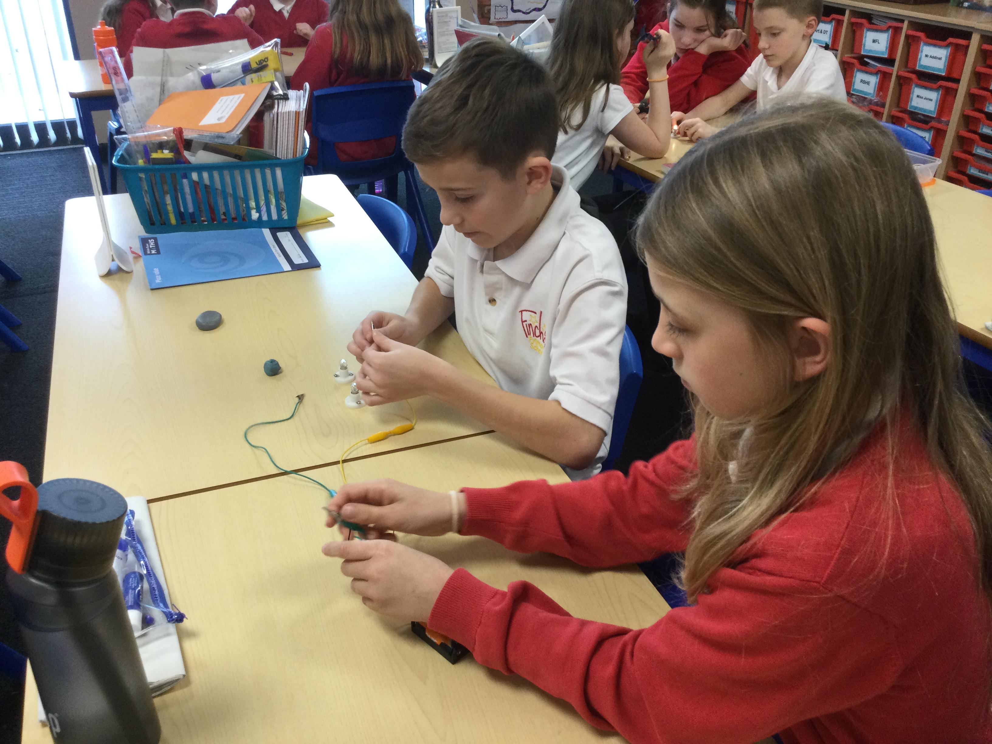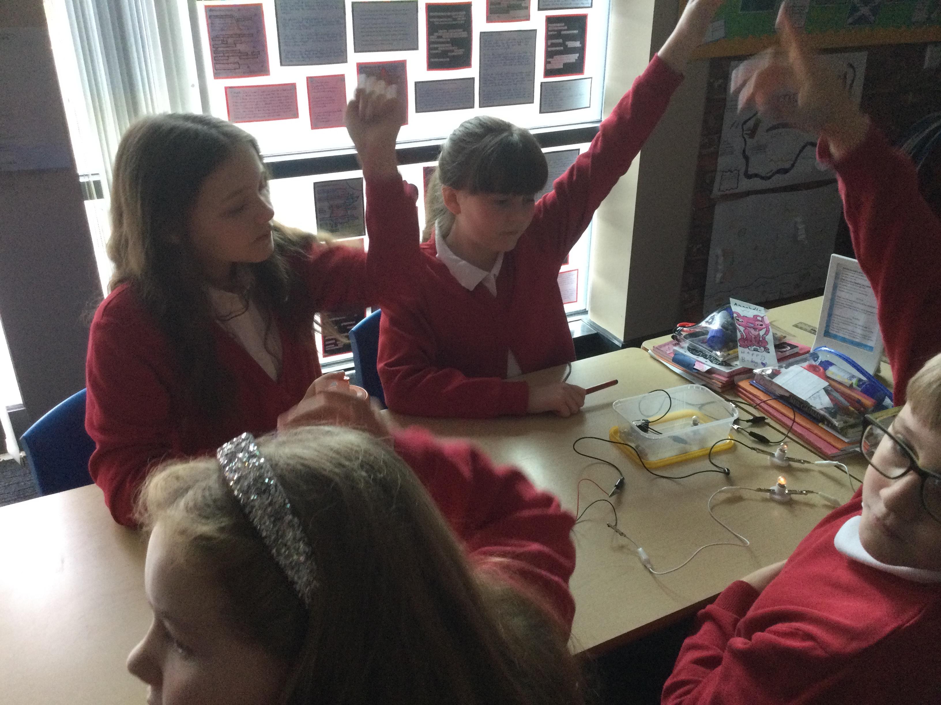 Captain Chemistry paid Year 6 a visit with electricity as a focus. We looked at static electricity, created a physical series circuit, investigated how adding components to a circuit affected the brightness of bulbs and made our own wind turbines. After this, we had a scenario of a statue in a museum that needed protecting by an alarm. We had to create a circuit so that when pressure was applied the buzzer (alarm) would not sound, but if someone tried to steal the sensor the buzzer would sound. We made some fantastic creations.