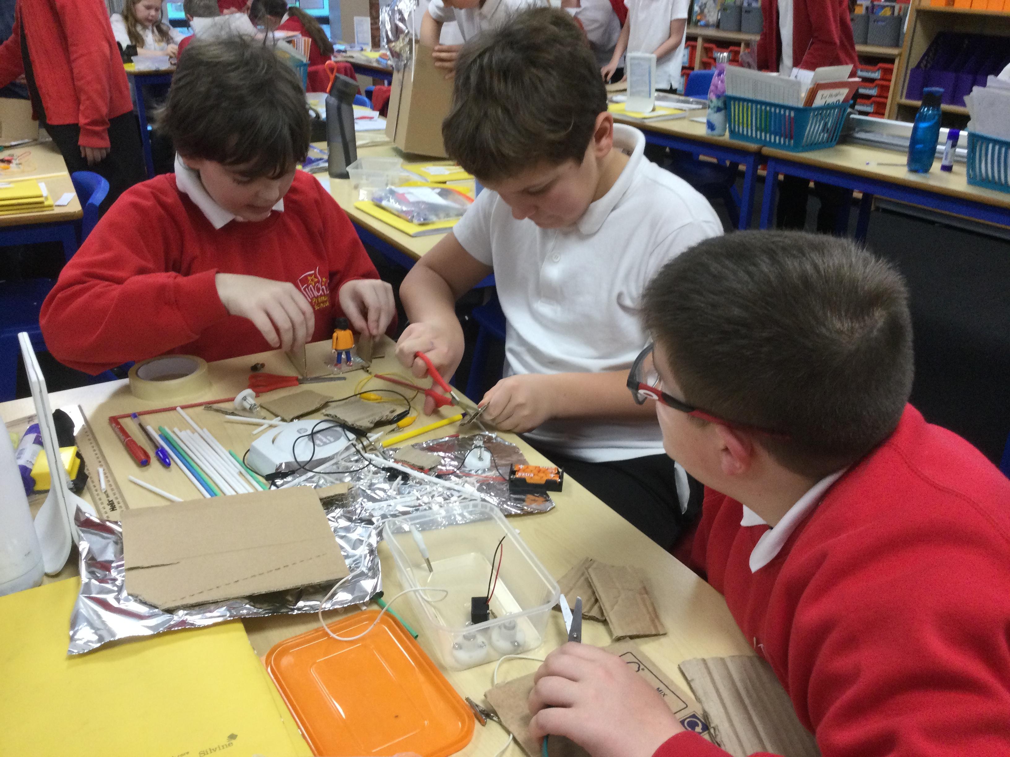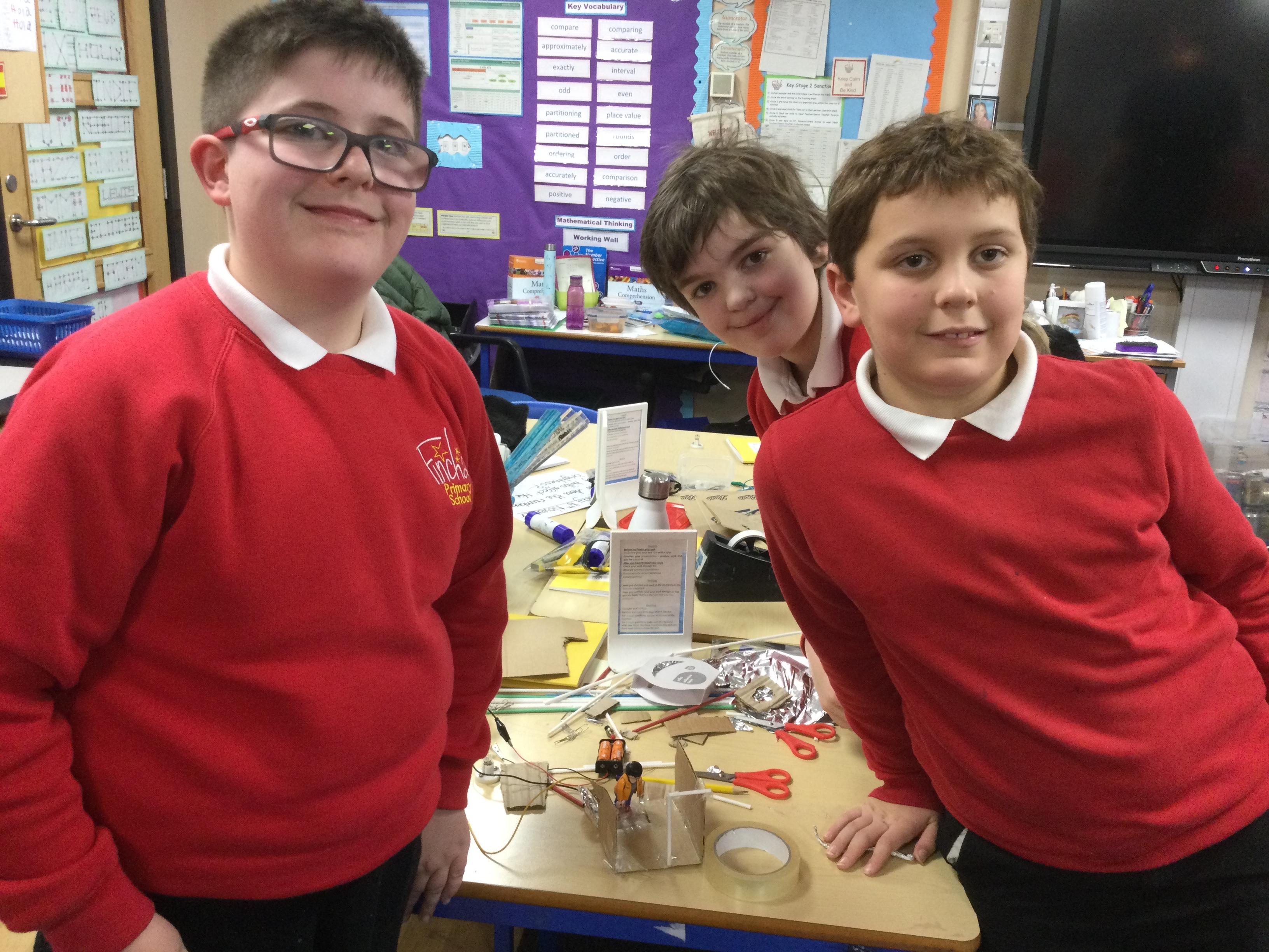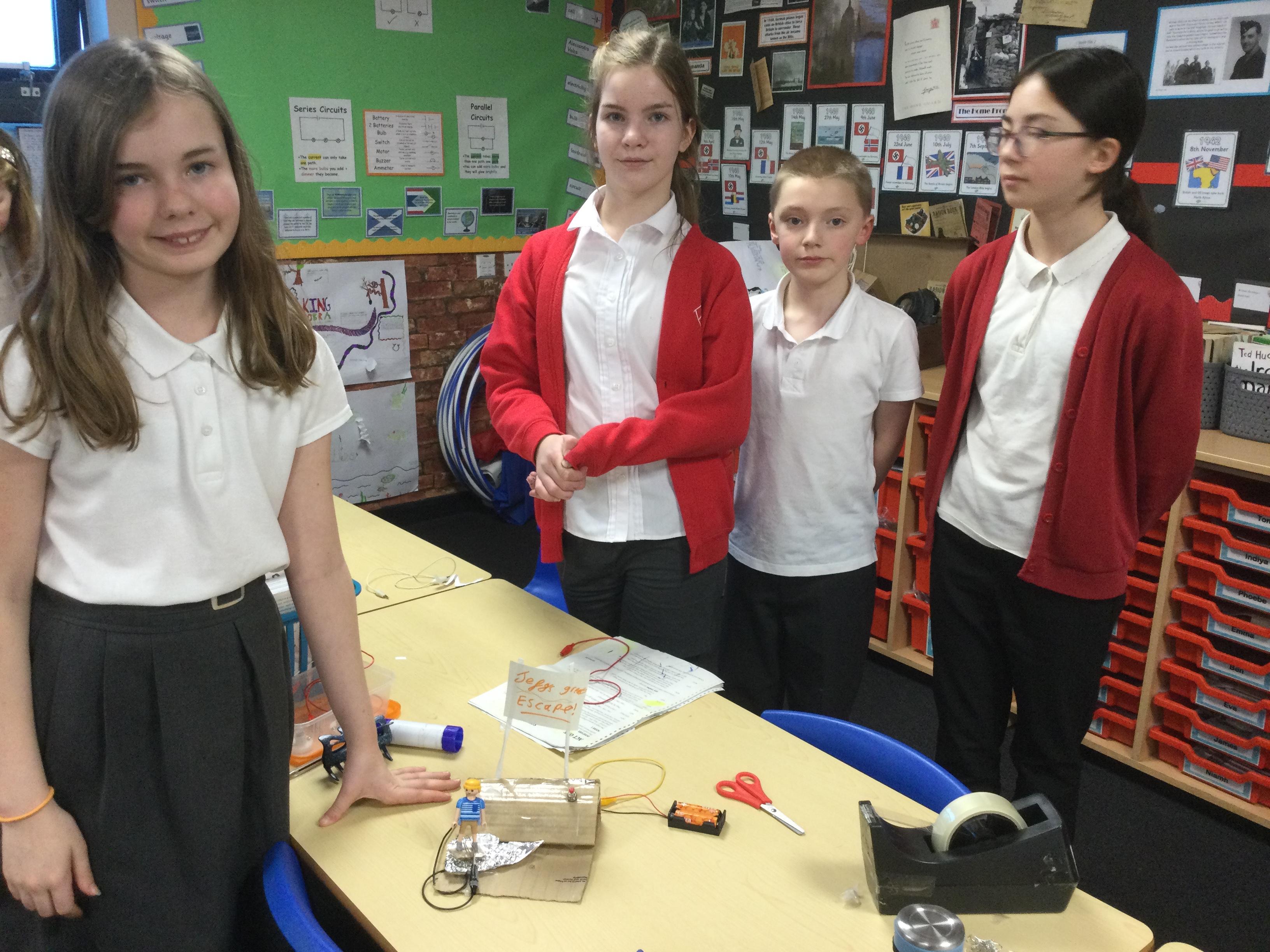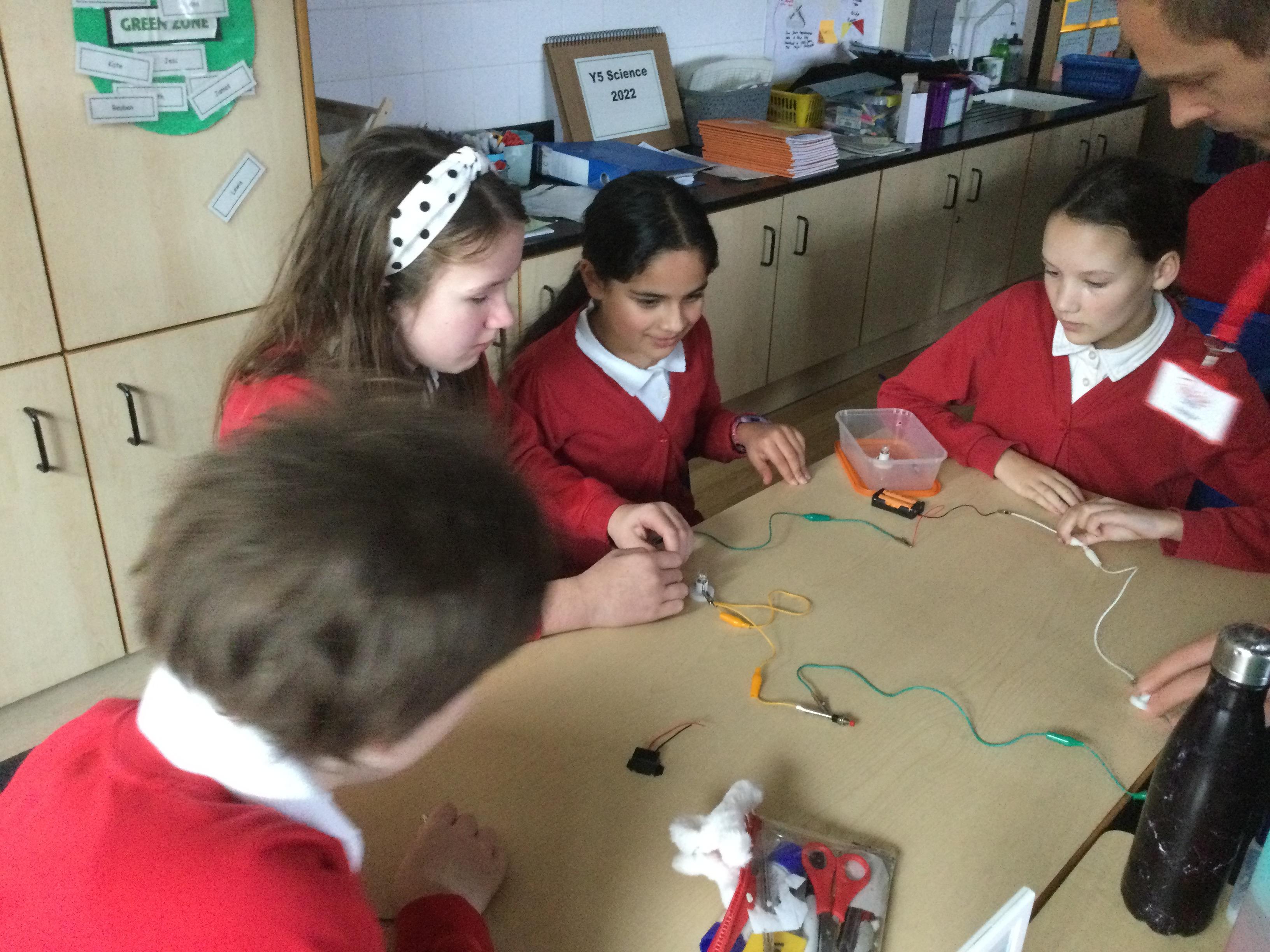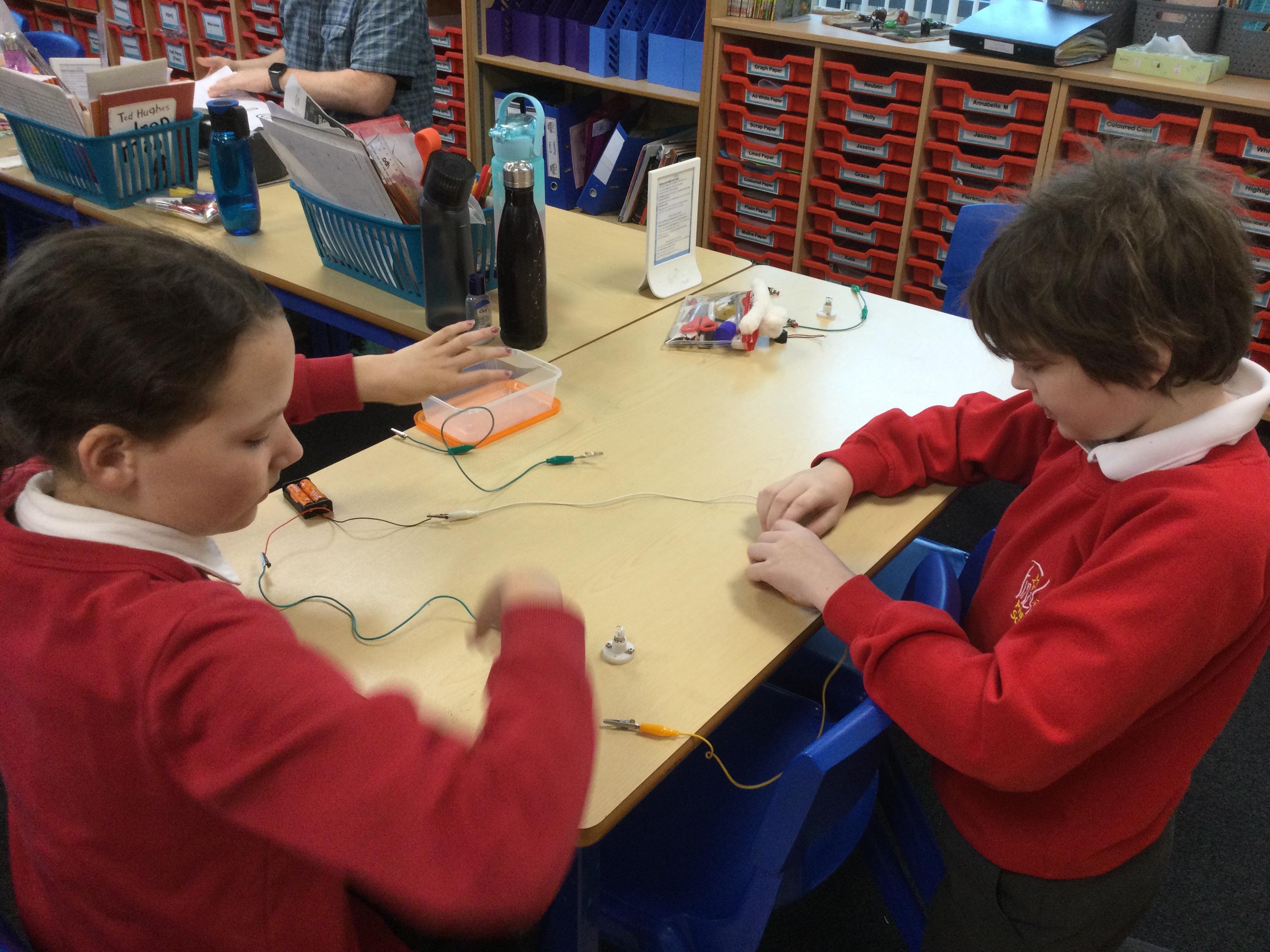 Captain Chemistry paid Year 6 a visit with electricity as a focus. We looked at static electricity, created a physical series circuit, investigated how adding components to a circuit affected the brightness of bulbs and made our own wind turbines. After this, we had a scenario of a statue in a museum that needed protecting by an alarm. We had to create a circuit so that when pressure was applied the buzzer (alarm) would not sound, but if someone tried to steal the sensor the buzzer would sound. We made some fantastic creations.