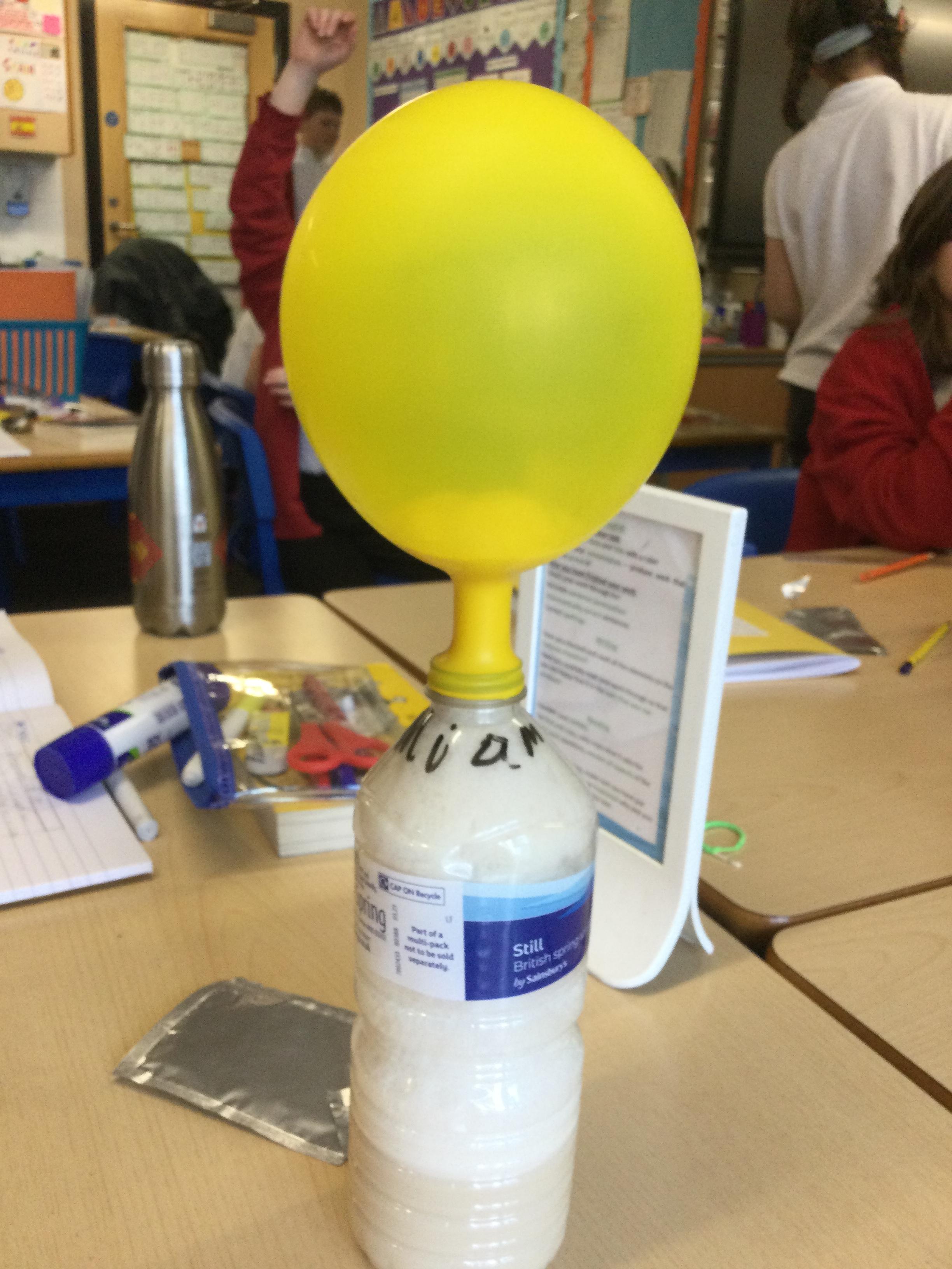 We carried out an investigation to see what effect yeast can have. We placed a teaspoon of yeast, a teaspoon of sugar and some warm water in to a bottle with a balloon placed over the top. Every ten minutes, we observed to see if anything had happened. Over time, we observed that the balloon was rising and this was due to the gas that had been produced due to the reaction of the yeast, sugar and warm water.