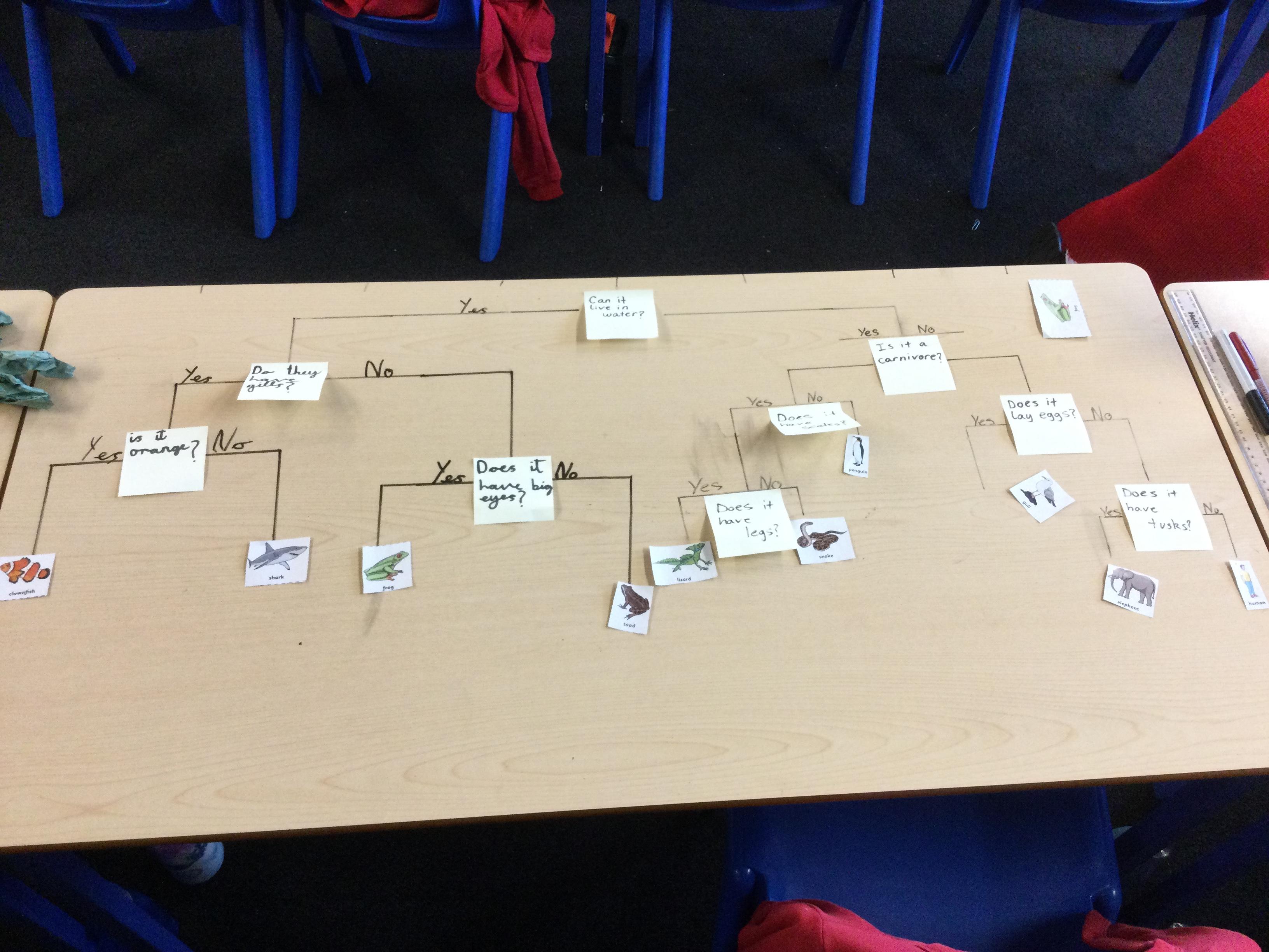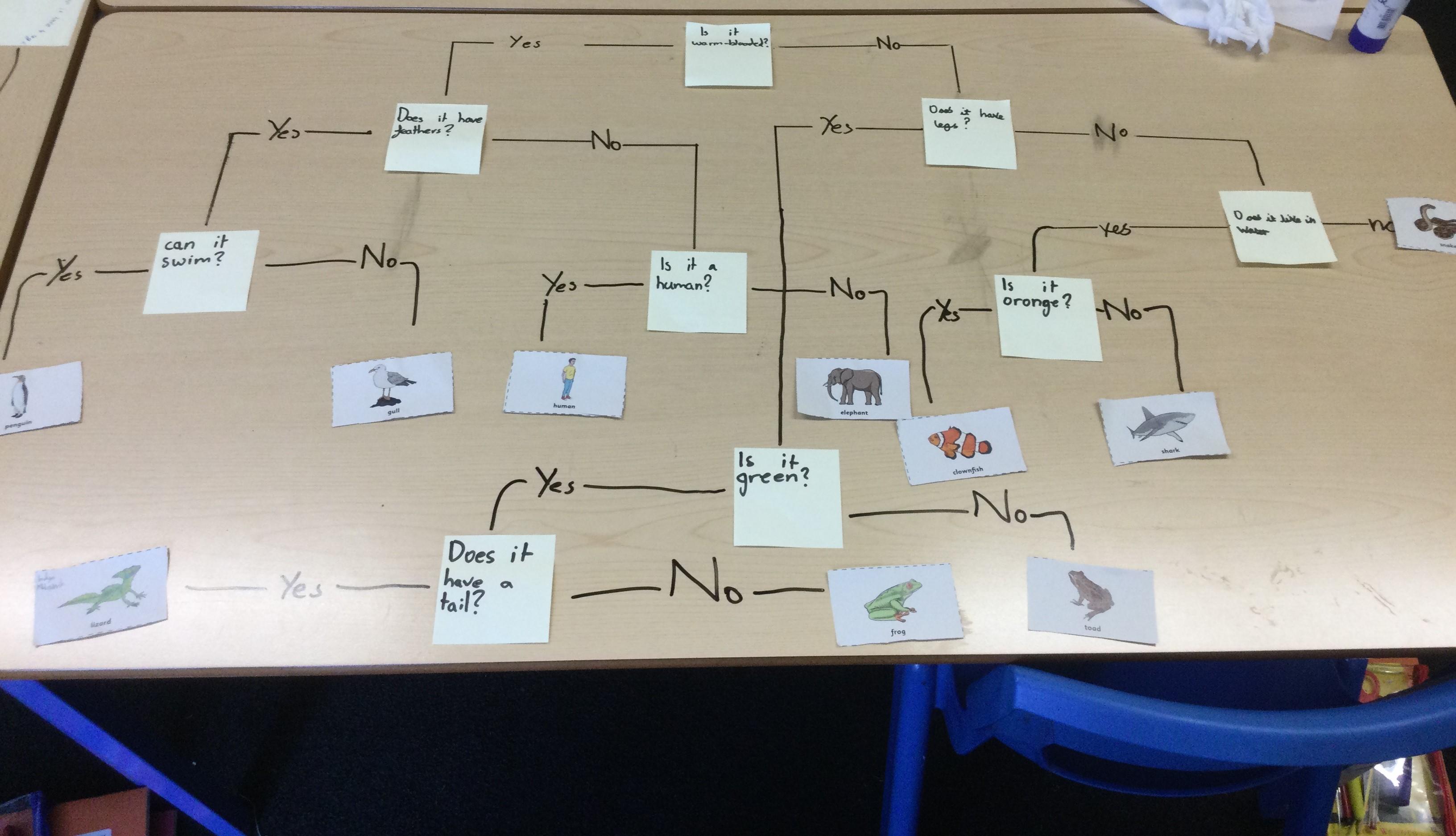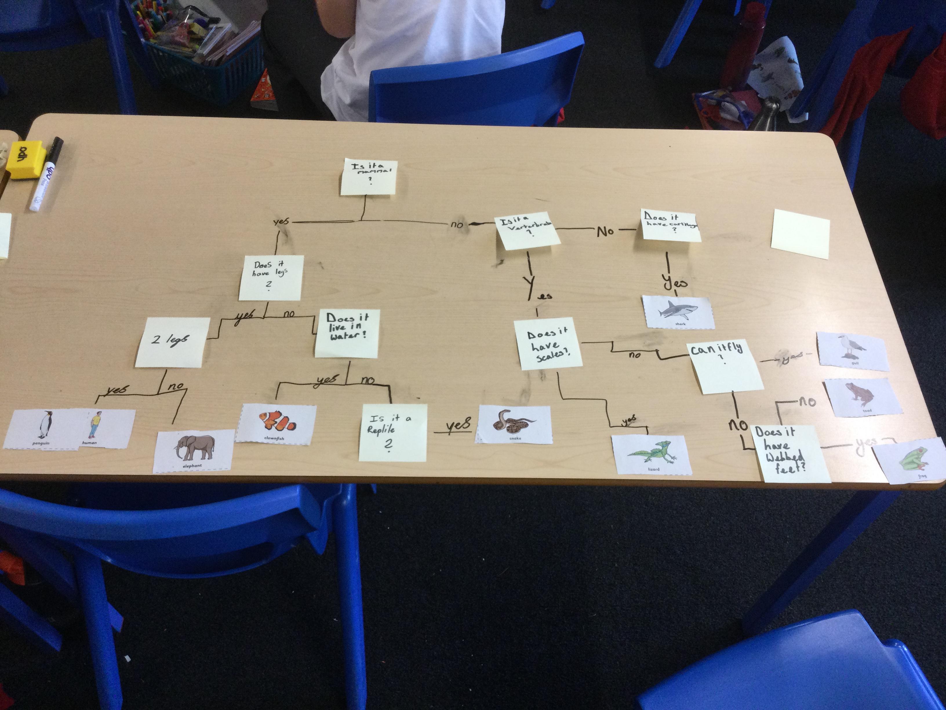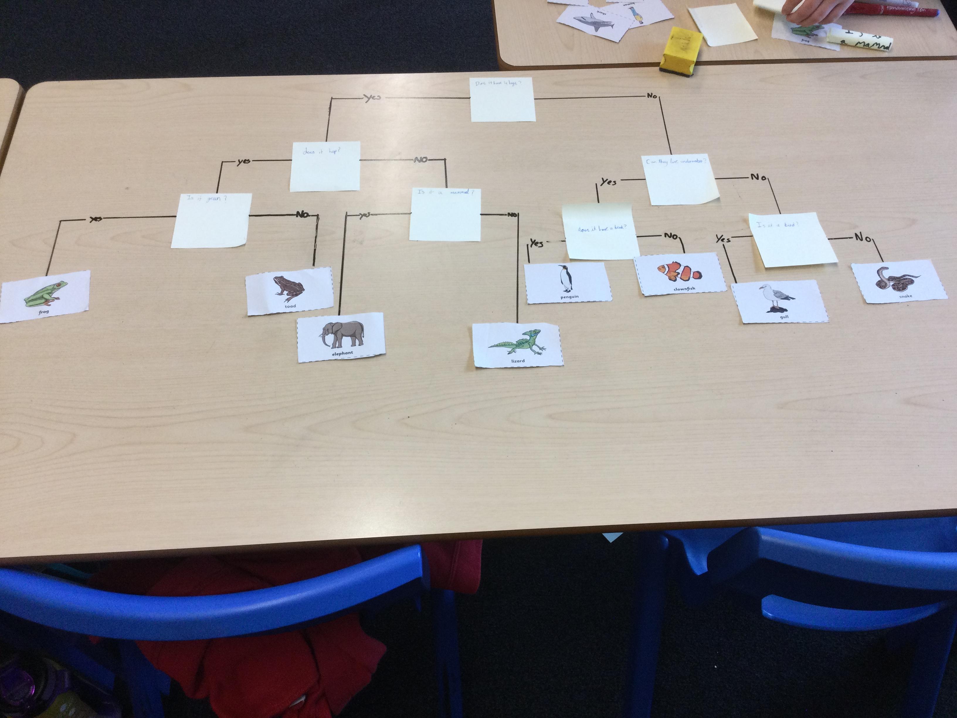 As part of our work on classifying animals, we created our own classification key. To do this, we created a set of scientific questions to group animals as to whether the answer to the question was yes or no. We set our work out on our tables so that we could see it clearly. After we had completed our classification keys, we then checked other groups to see if they were accurate. We really enjoyed carrying out this activity.