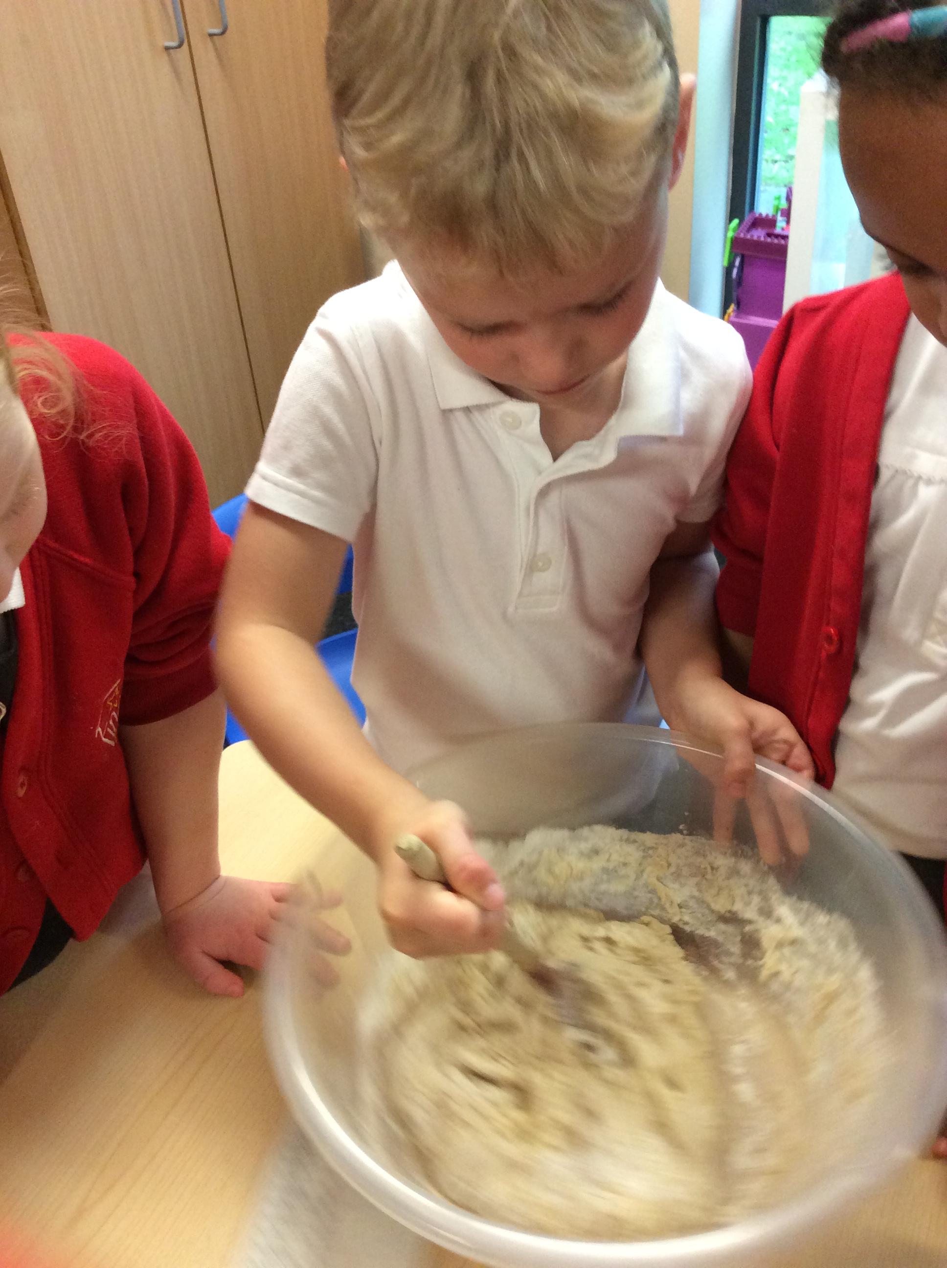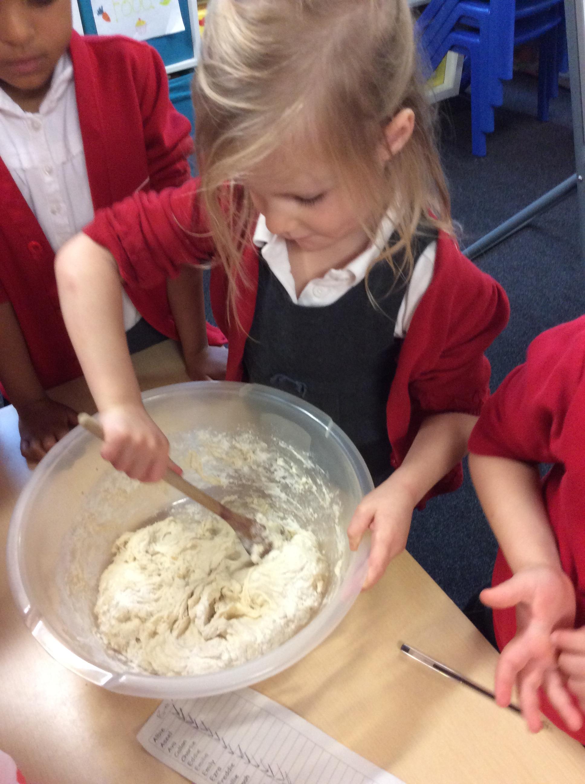 After listening to one of our favourite stories - The Little Red Hen, we decided to have a go at making our own bread.