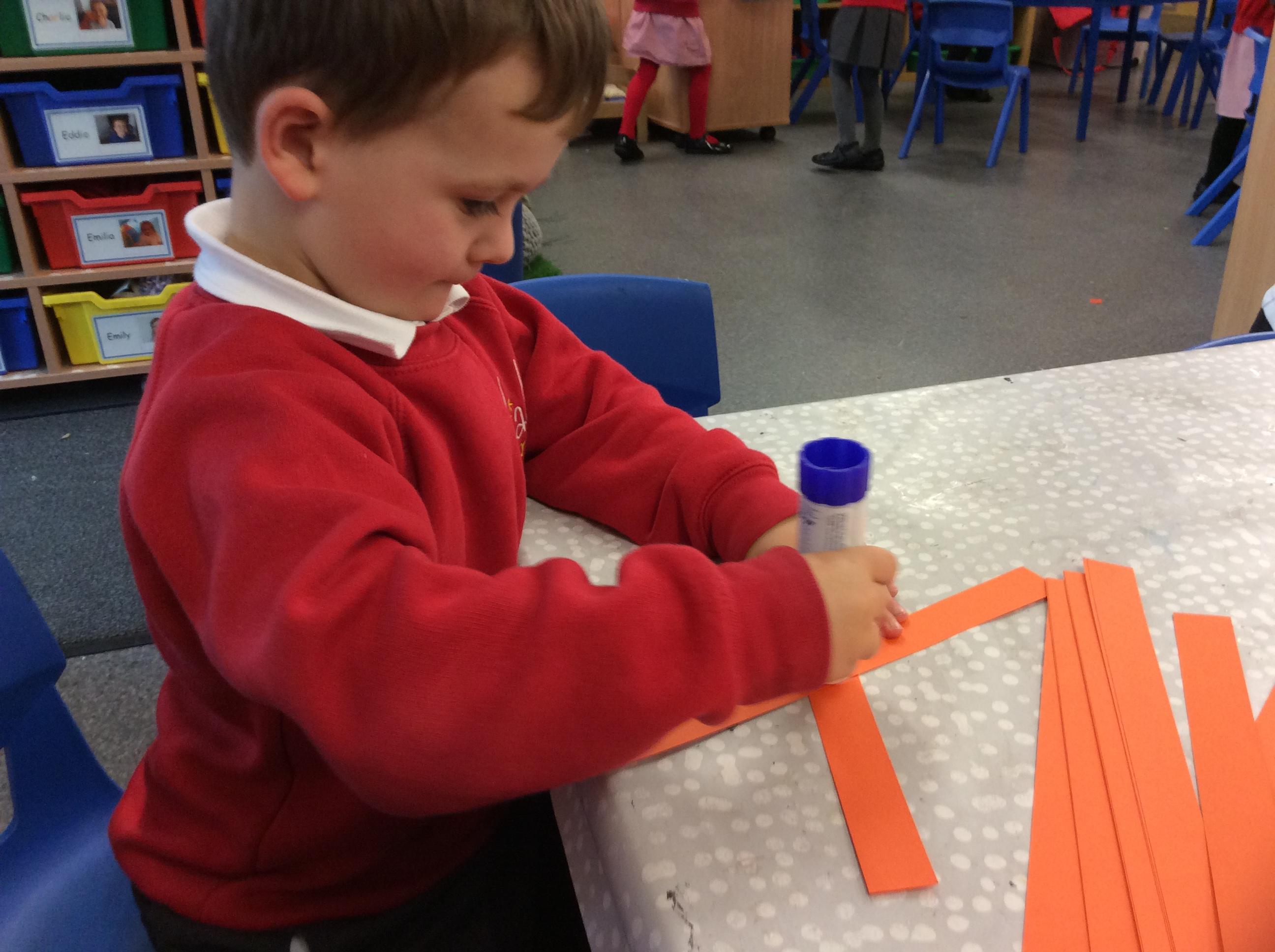 Christmas is a fun time to be in Reception. We practised our printing skills using our hands and feet and then turned our prints into snowmen and reindeers. We also developed our weaving skills when making our calendars and we created Christmas trees using strips of paper.