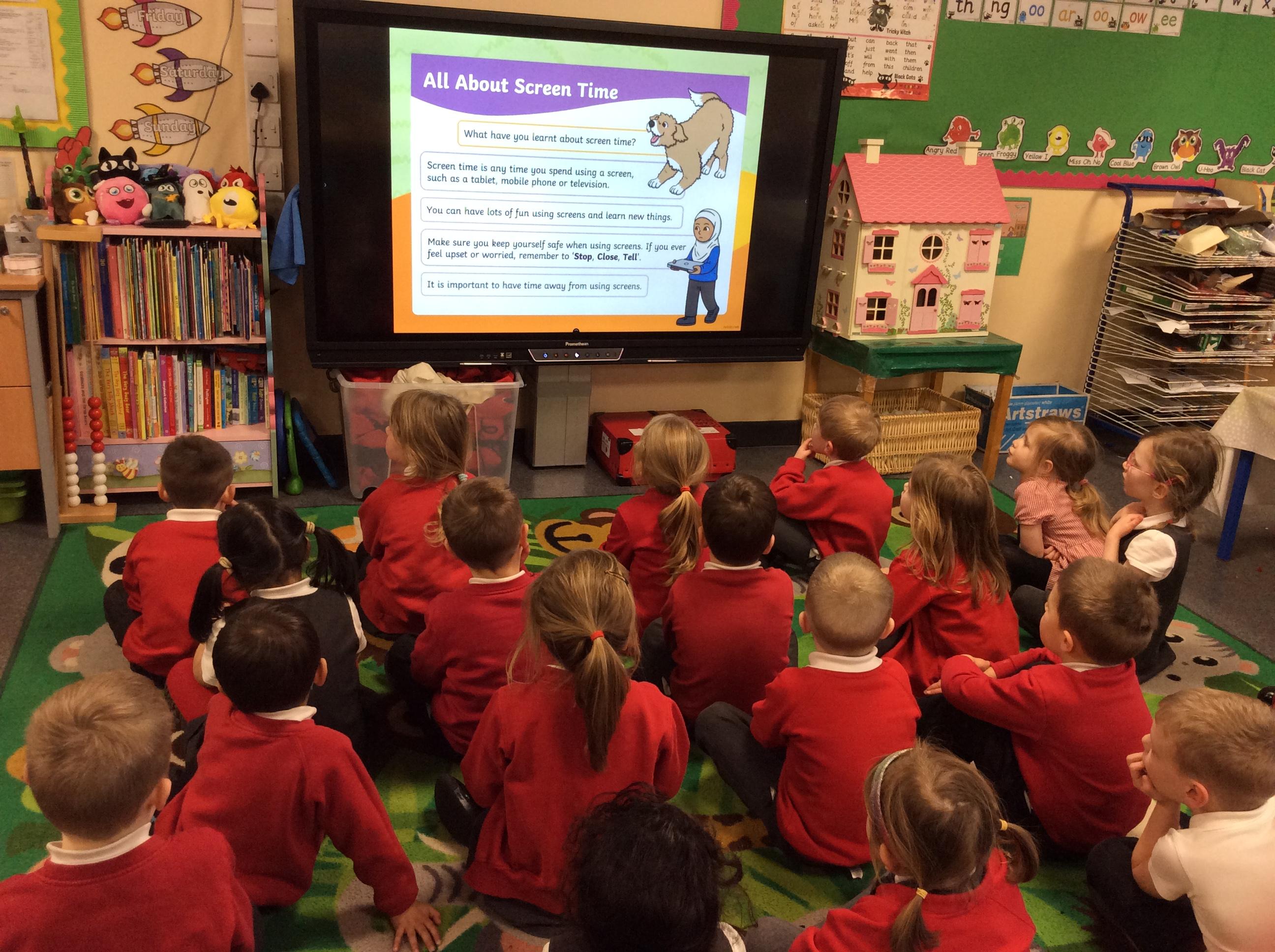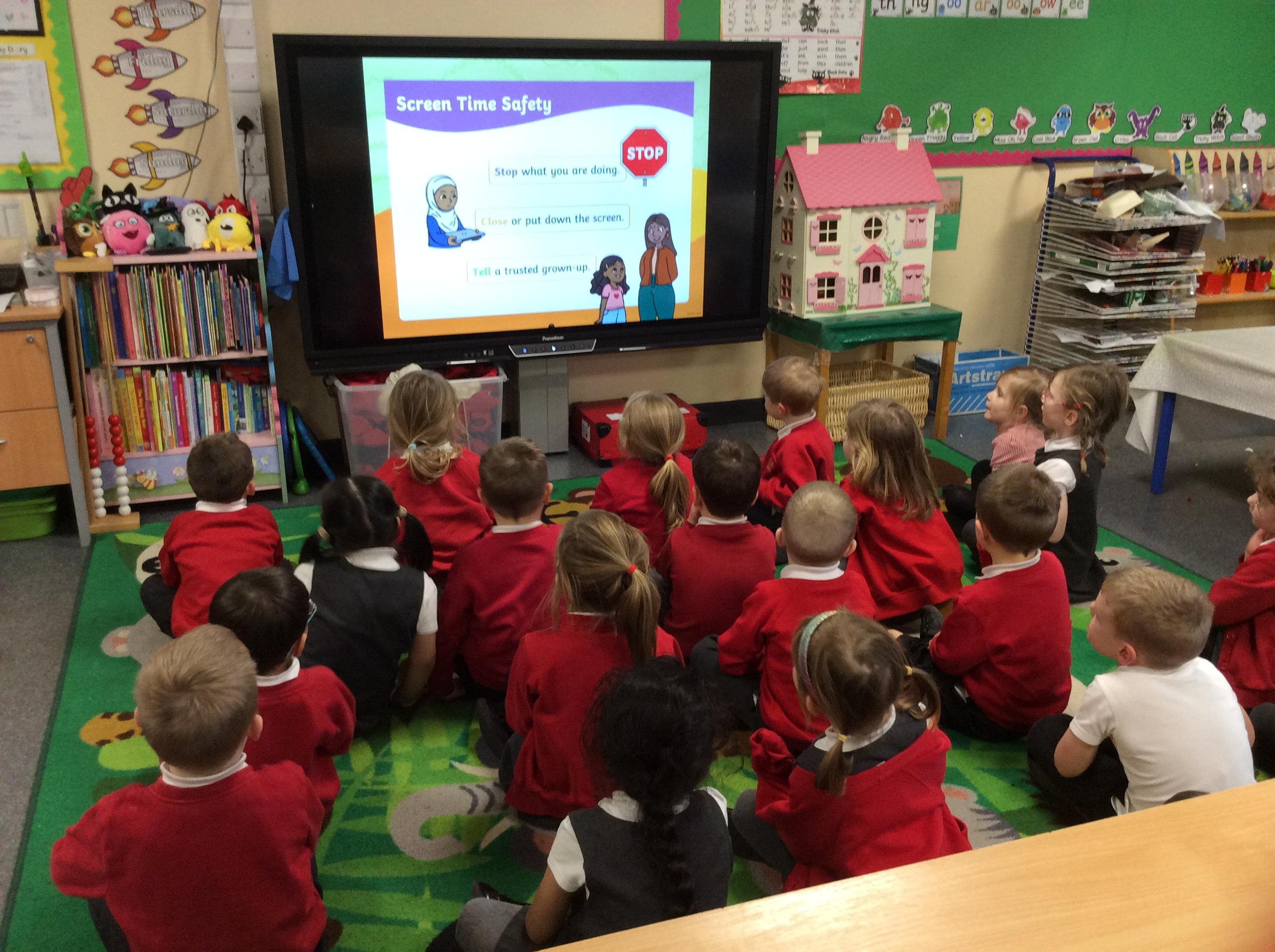 Buddy the dog helped us to learn all about keeping safe online. First of all we talked about the importance of not being on our screens too much, and what to do if we saw something on our screens that upset or worried us. Then Buddy taught us how to keep safe when using the internet and he showed us a great song to help us remember. Finally we listened to a story about Buddy and his friend Ben, who had just been given a new tablet from his Grandma and we helped him throughout the story to make good decisions and stay safe.