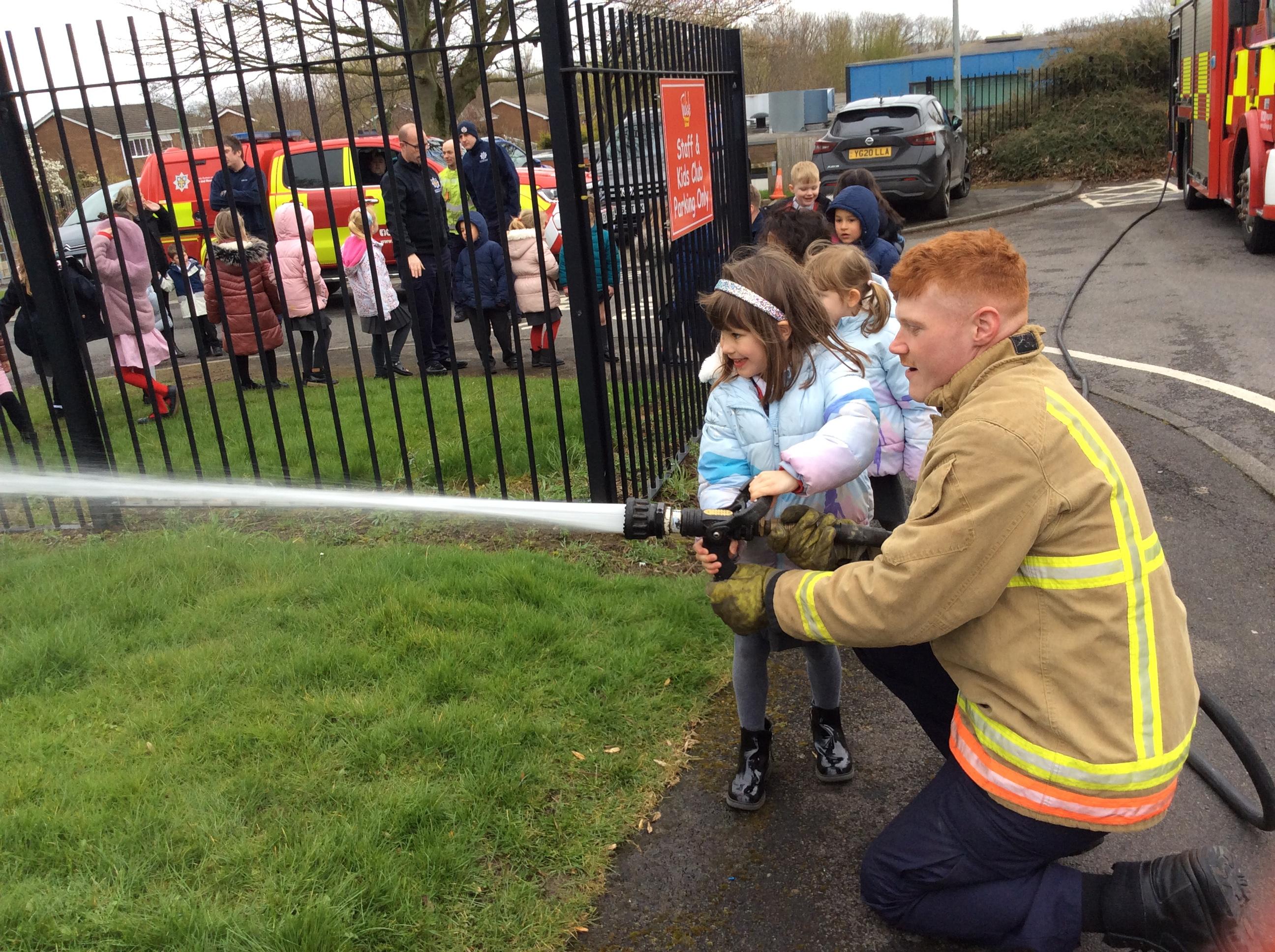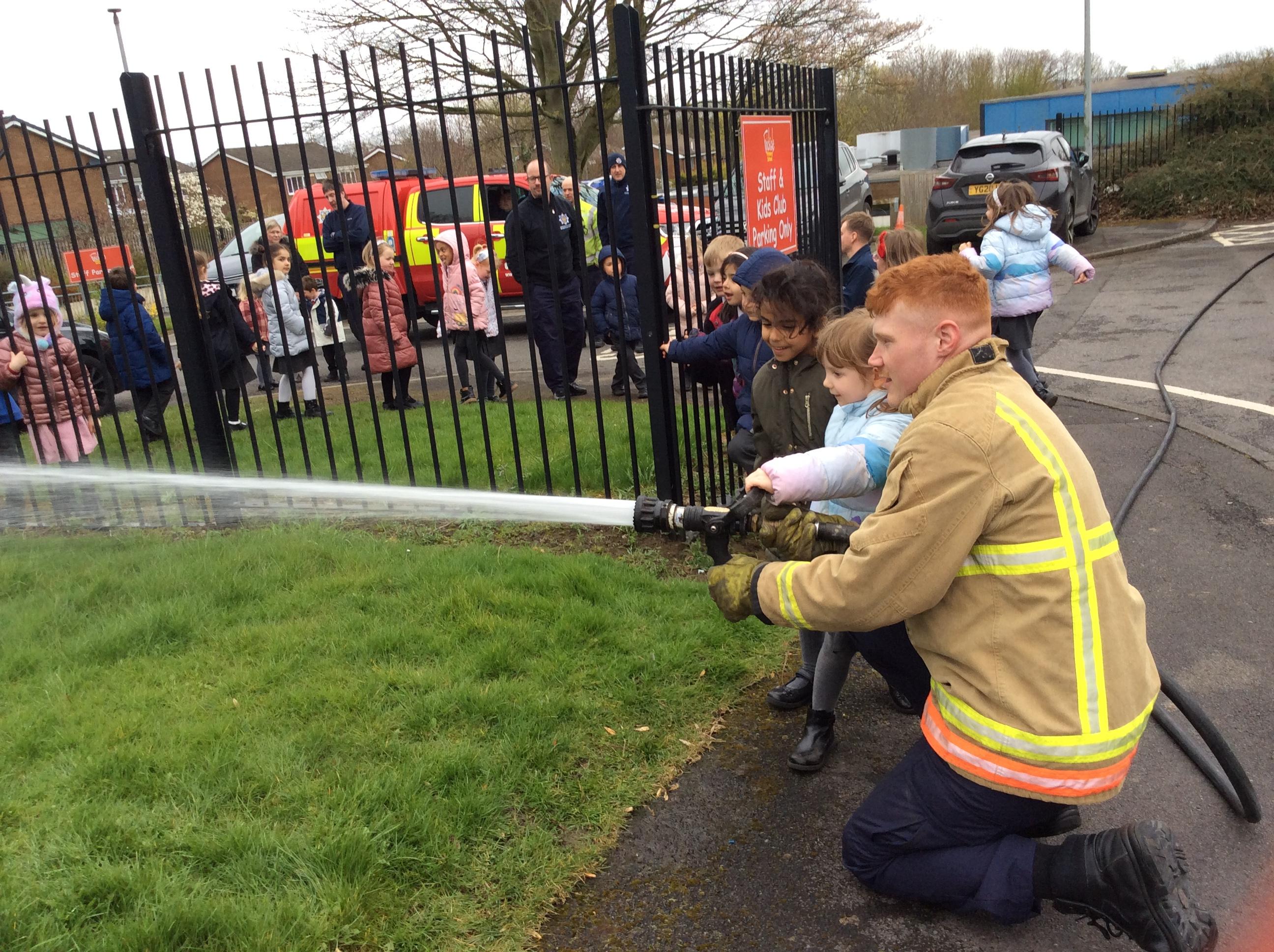 Reception had a visit from the Fire service linked to one of our previous topics about People Who Help Us. We met a group of firefighters who told us all about their job and the different uniforms and the equipment they have to use to keep themselves safe. We then went outside to see some of the vehicles they drive, including the fire engine. They even let us have a turn of the hose which was great fun.