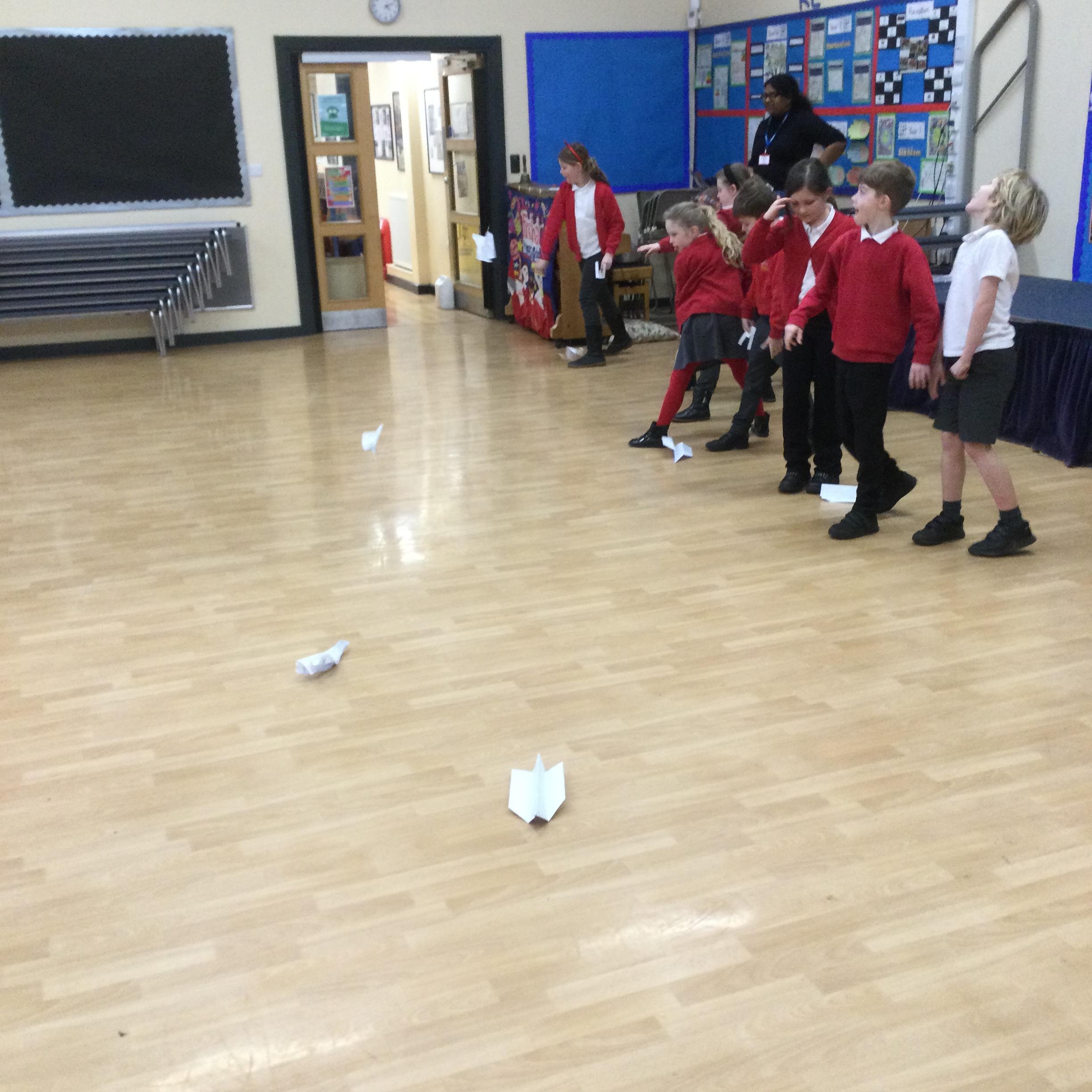 Year 3 and 4 Science Club- Making paper airplanes and thinking about the words streamline, air resistance and friction.
