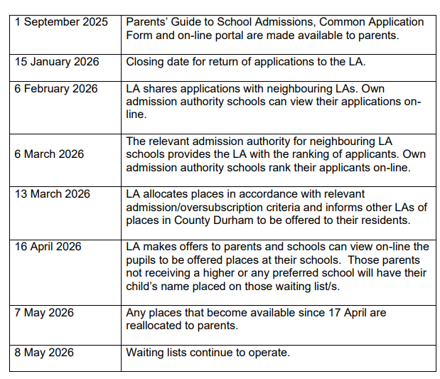 Applications for school places for children starting school in September 2026 will open on Monday September 1st 2025.