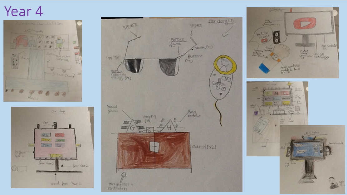 Y4- Took Y2's designs and improved them further. Y4 looked at futuristic technology in their designs including Smart watches that control the TV and TV glasses.