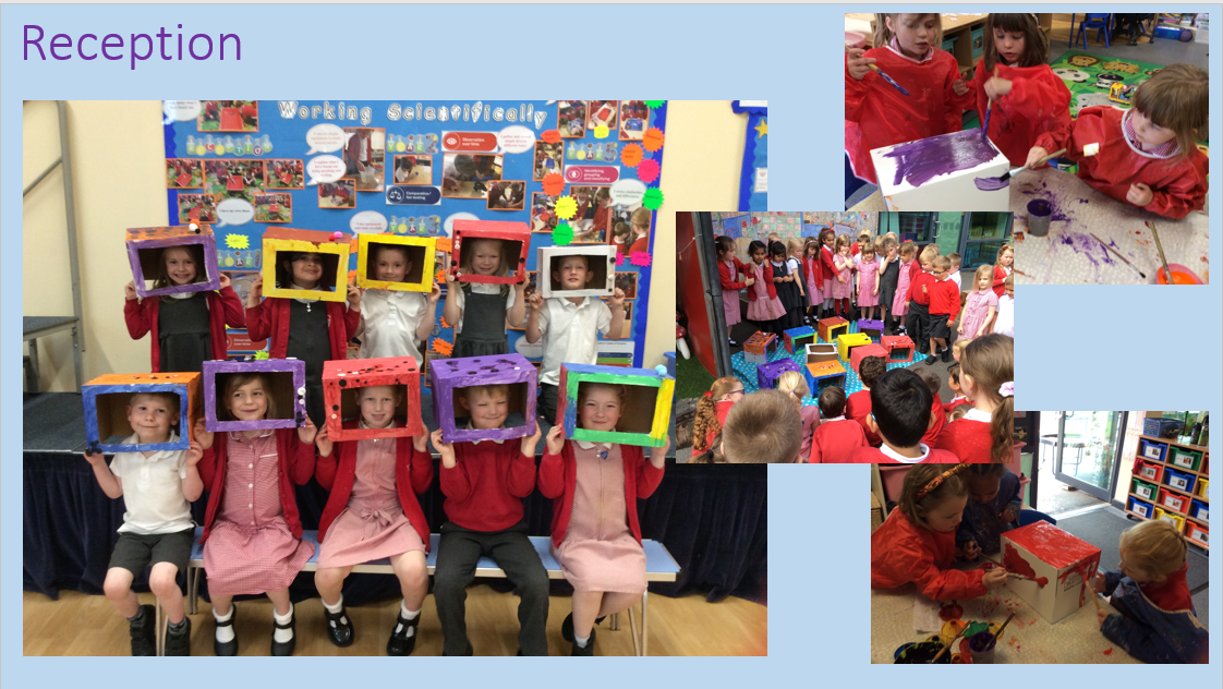 Y6- Then took Y4's designs, improved them and made them out of junk modelling. These models were very detailed and had some fantastic features. Y6 then took their models back to Reception and presented their finished projects.