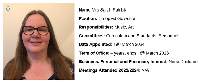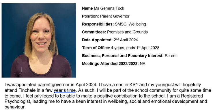 Meet our Governors.  If you would like to speak to any of them or if you are interested in becoming a school Governor, please enquire at the office.