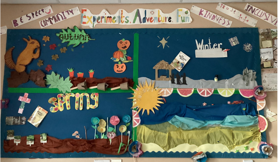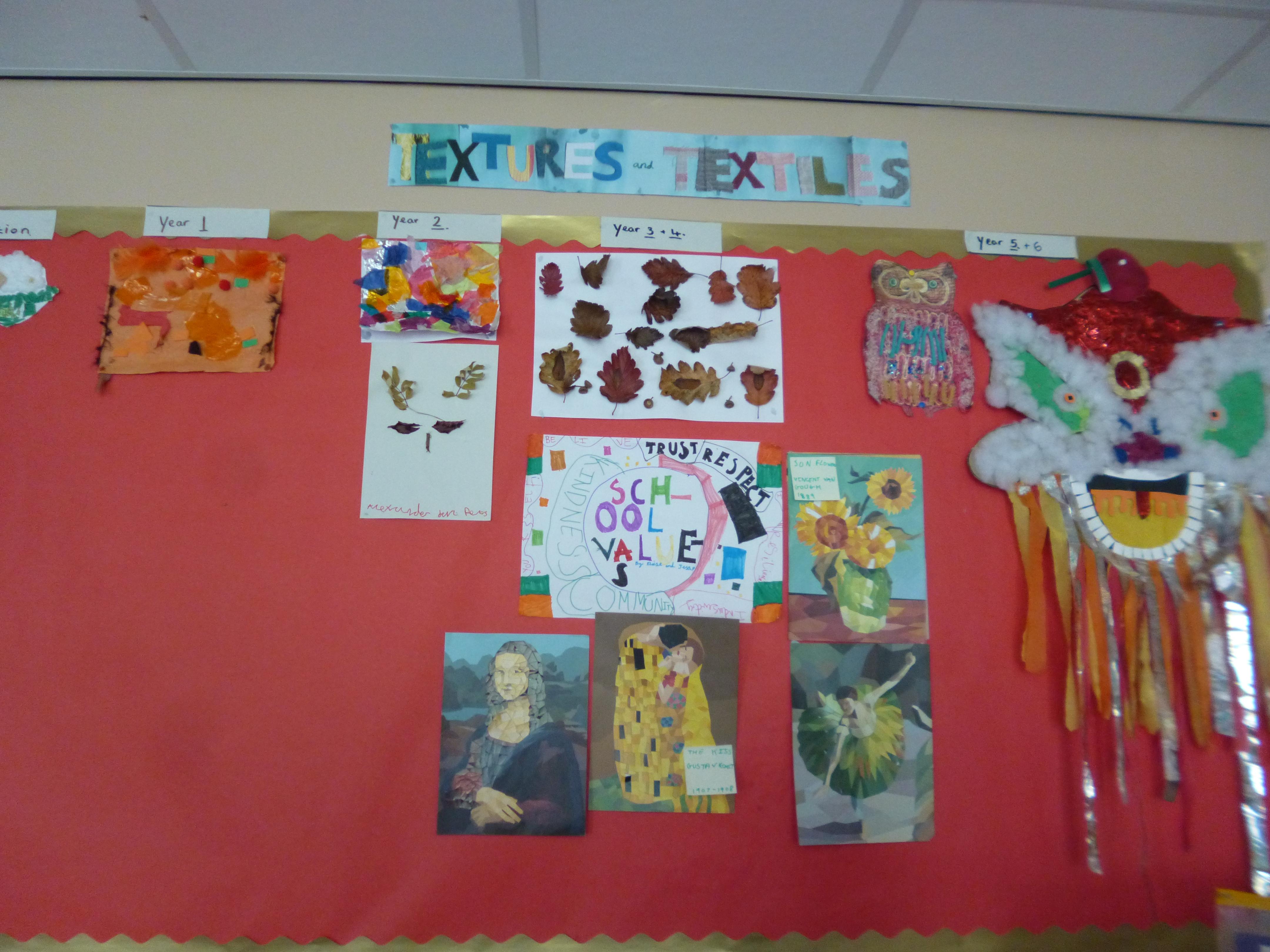 Children in kids club have been creating works of art, looking at different textures and textiles for their display.