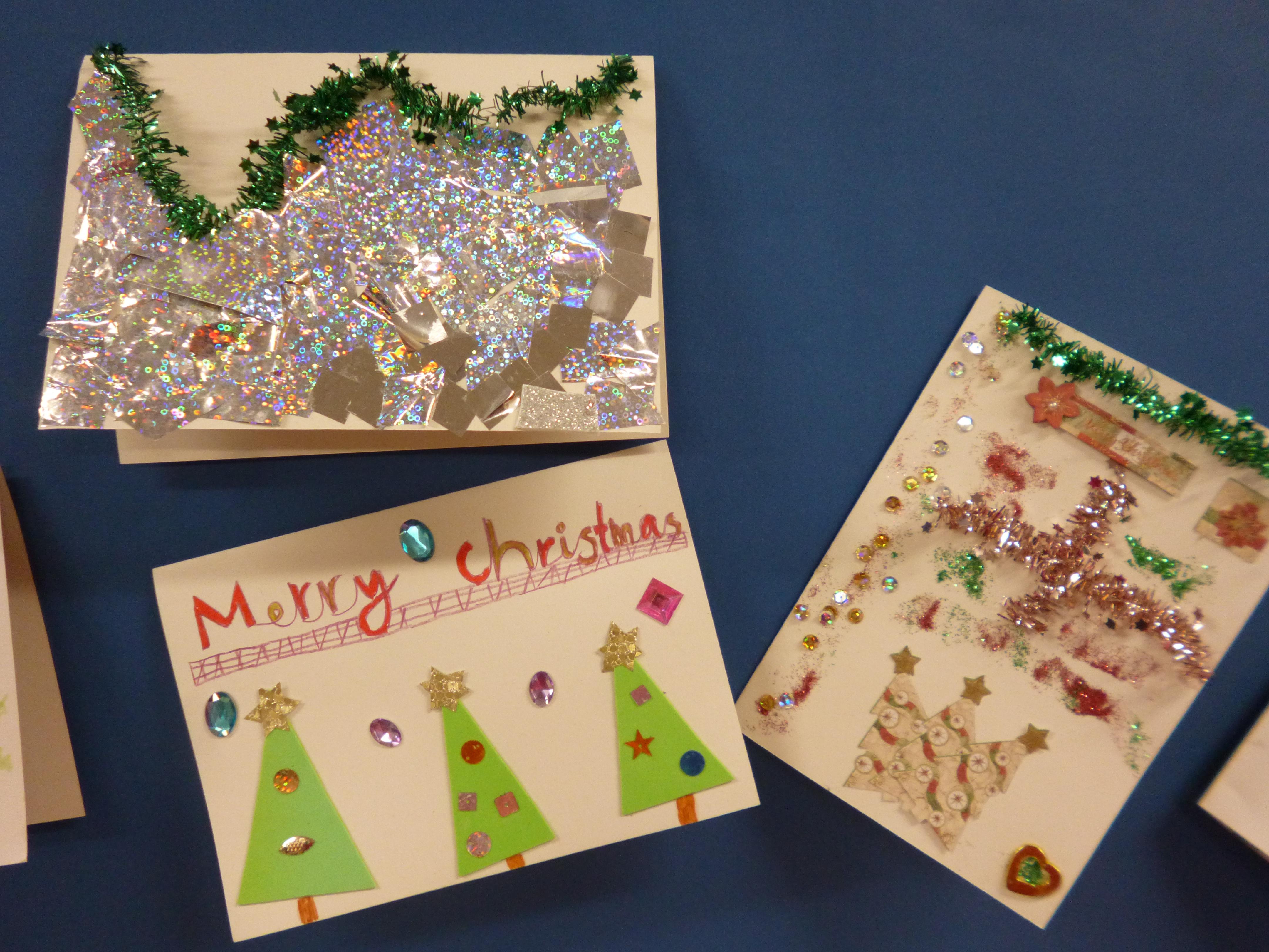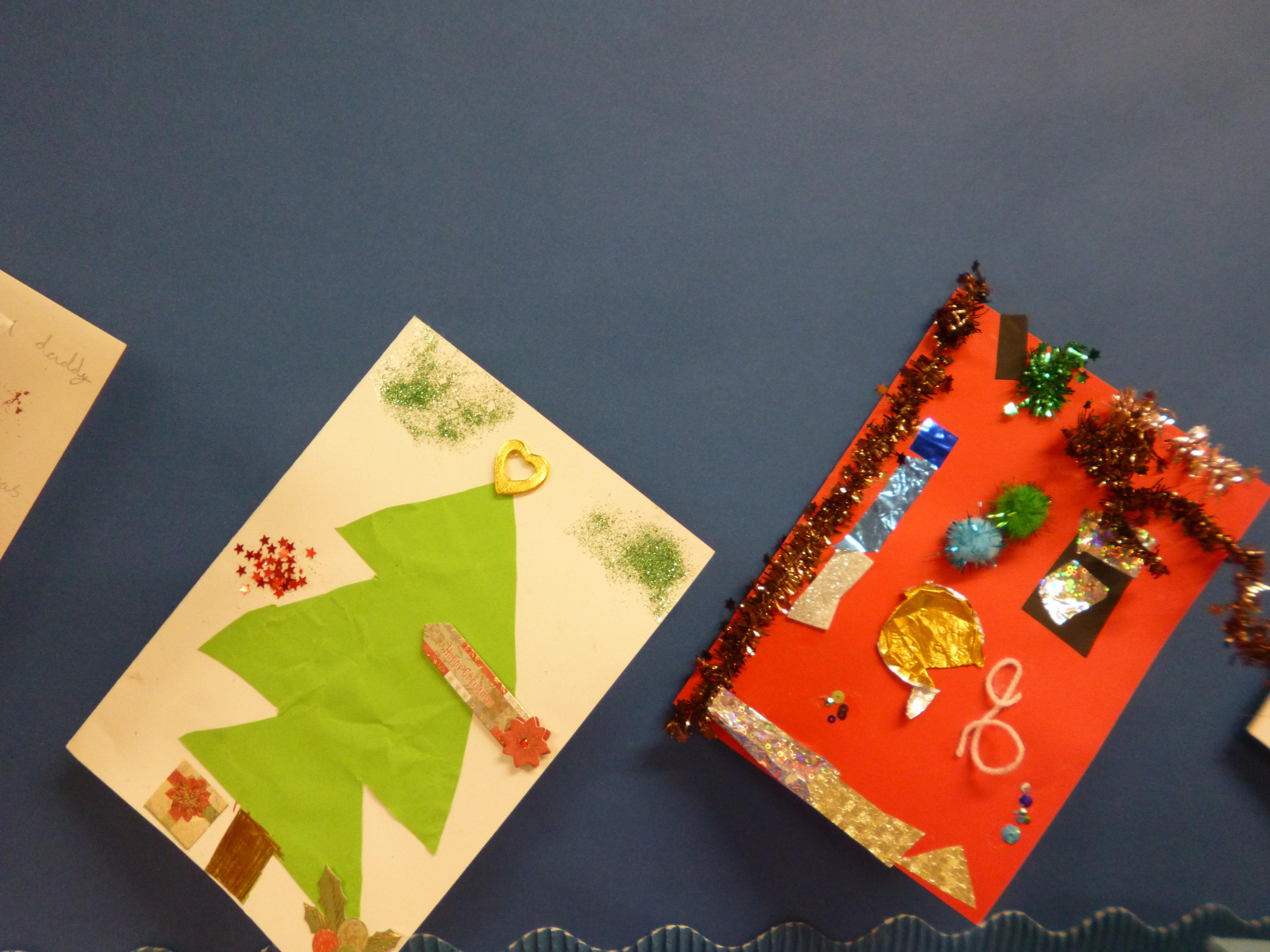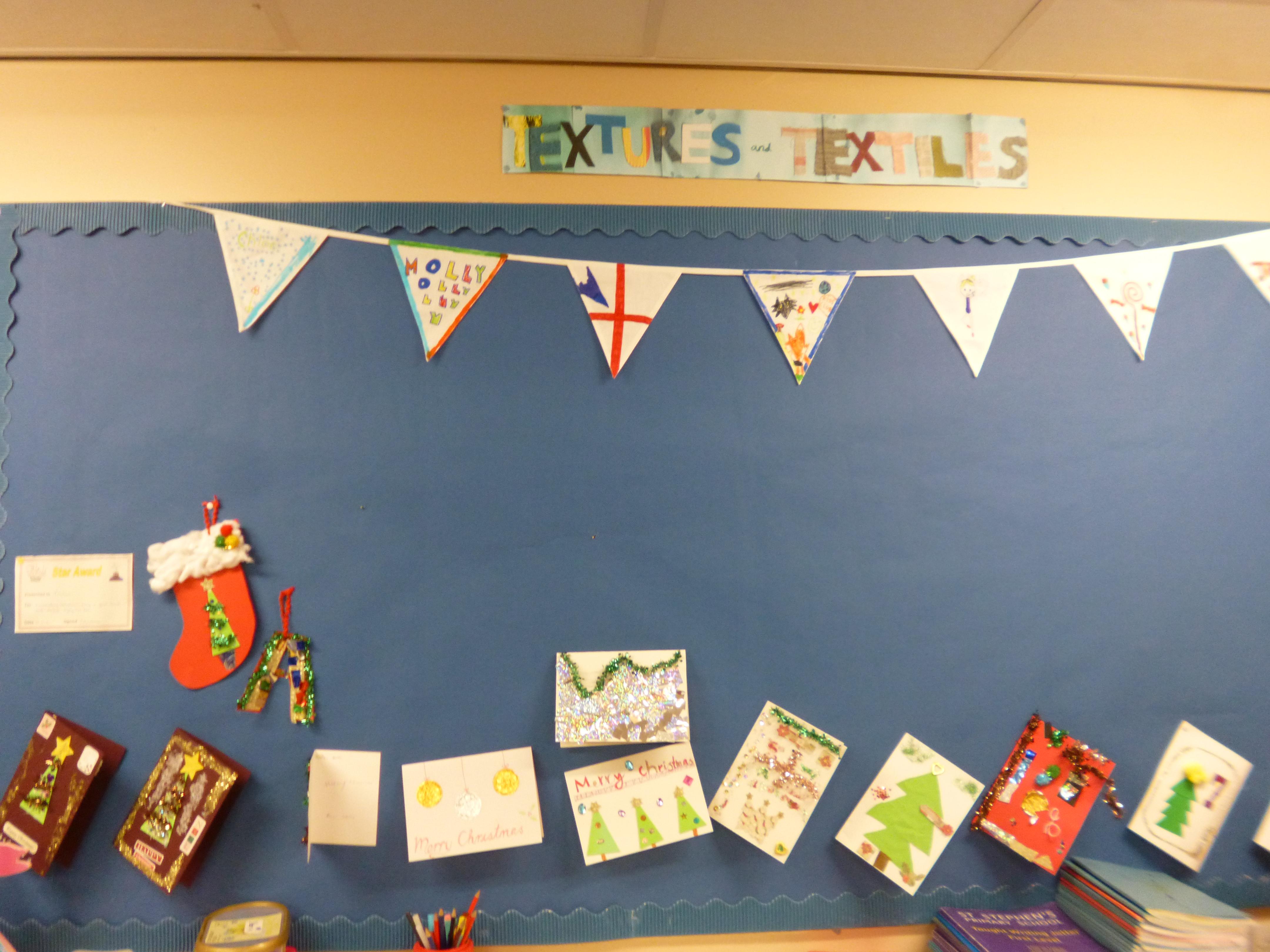 Again, using different textures and textiles, the children have made some lovely Christmas artwork.
