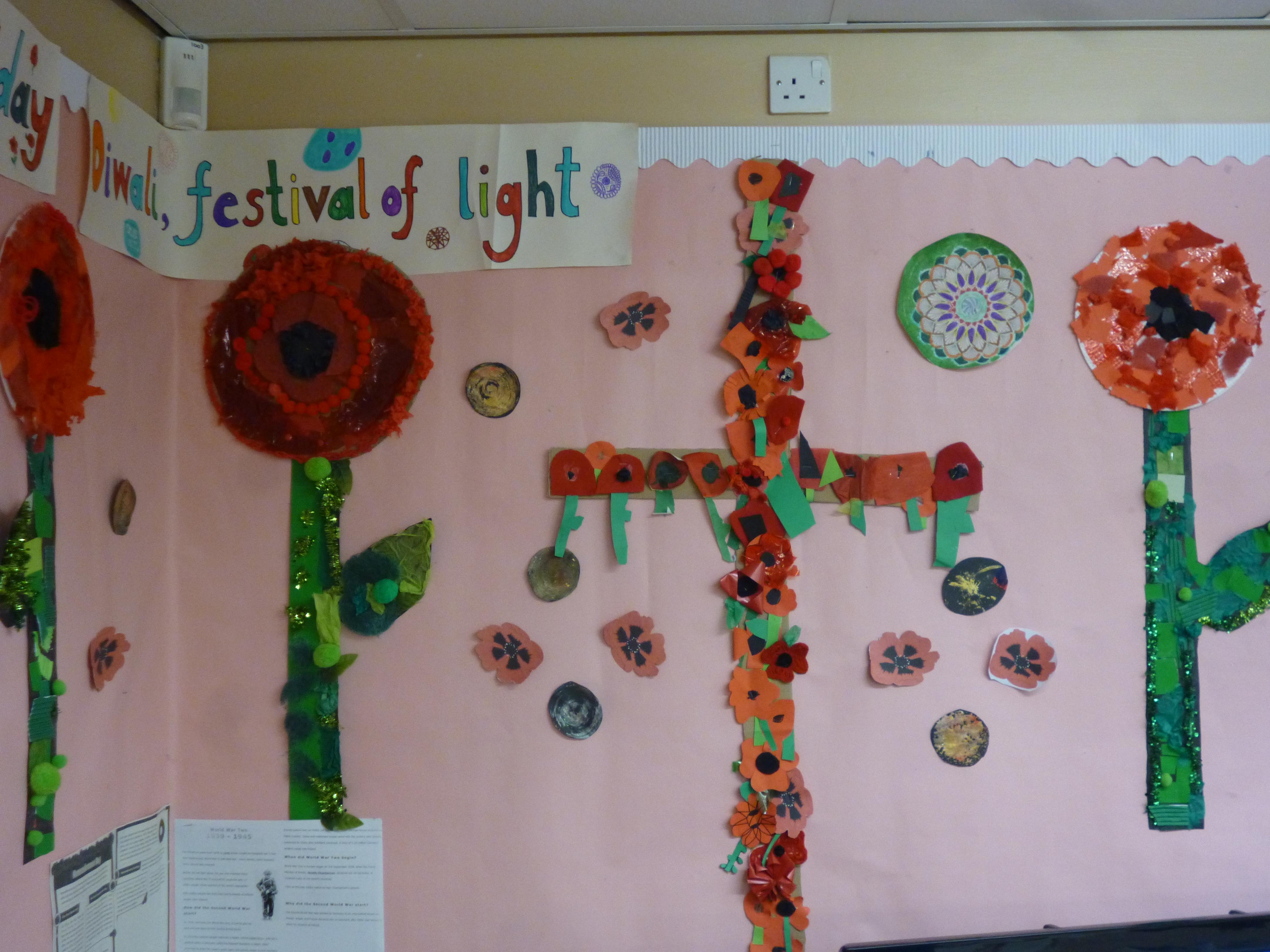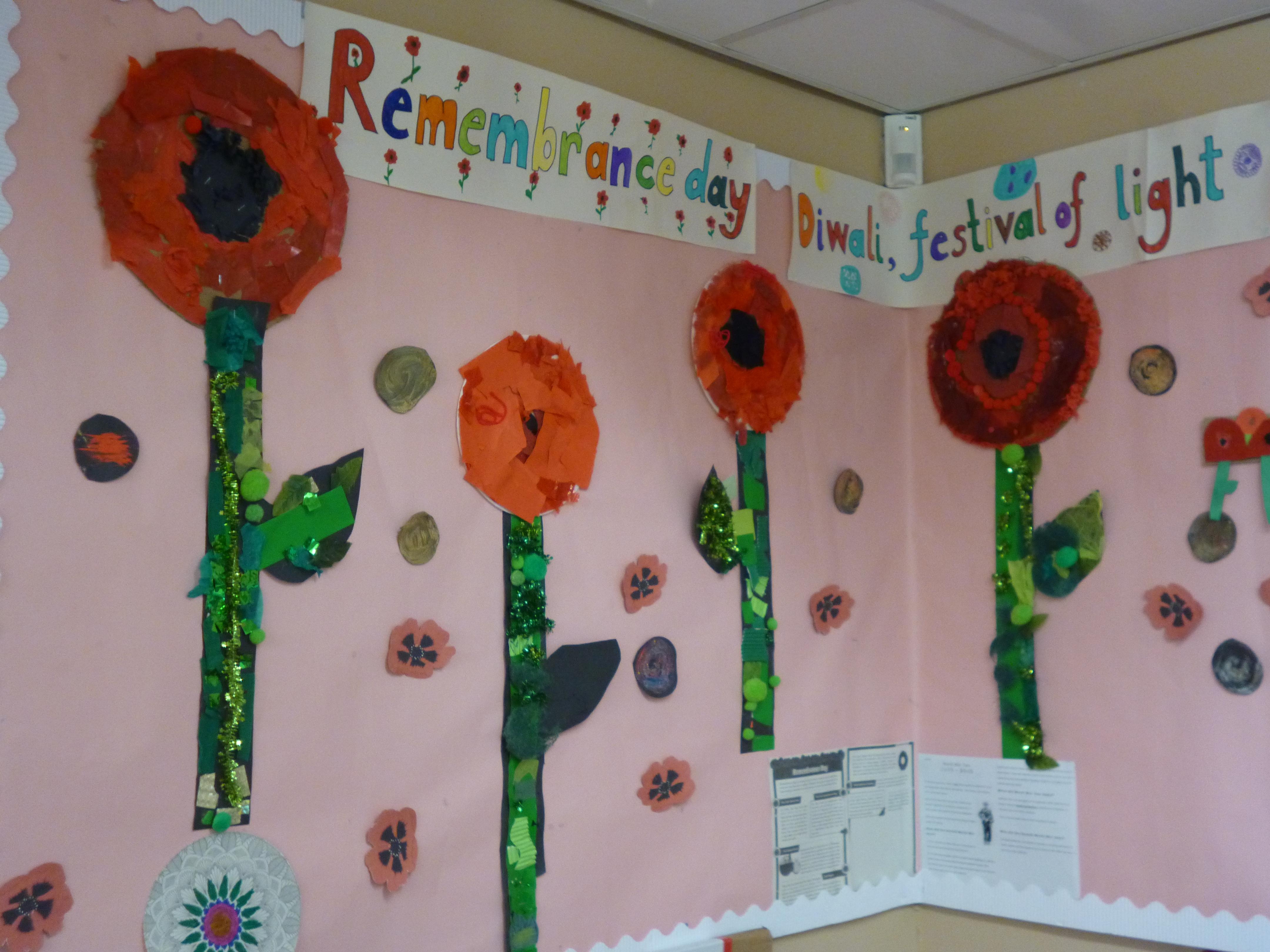 To think about Remembrance Day and Diwali, the children have made some beautiful poppies and colourful rangoli patterns.