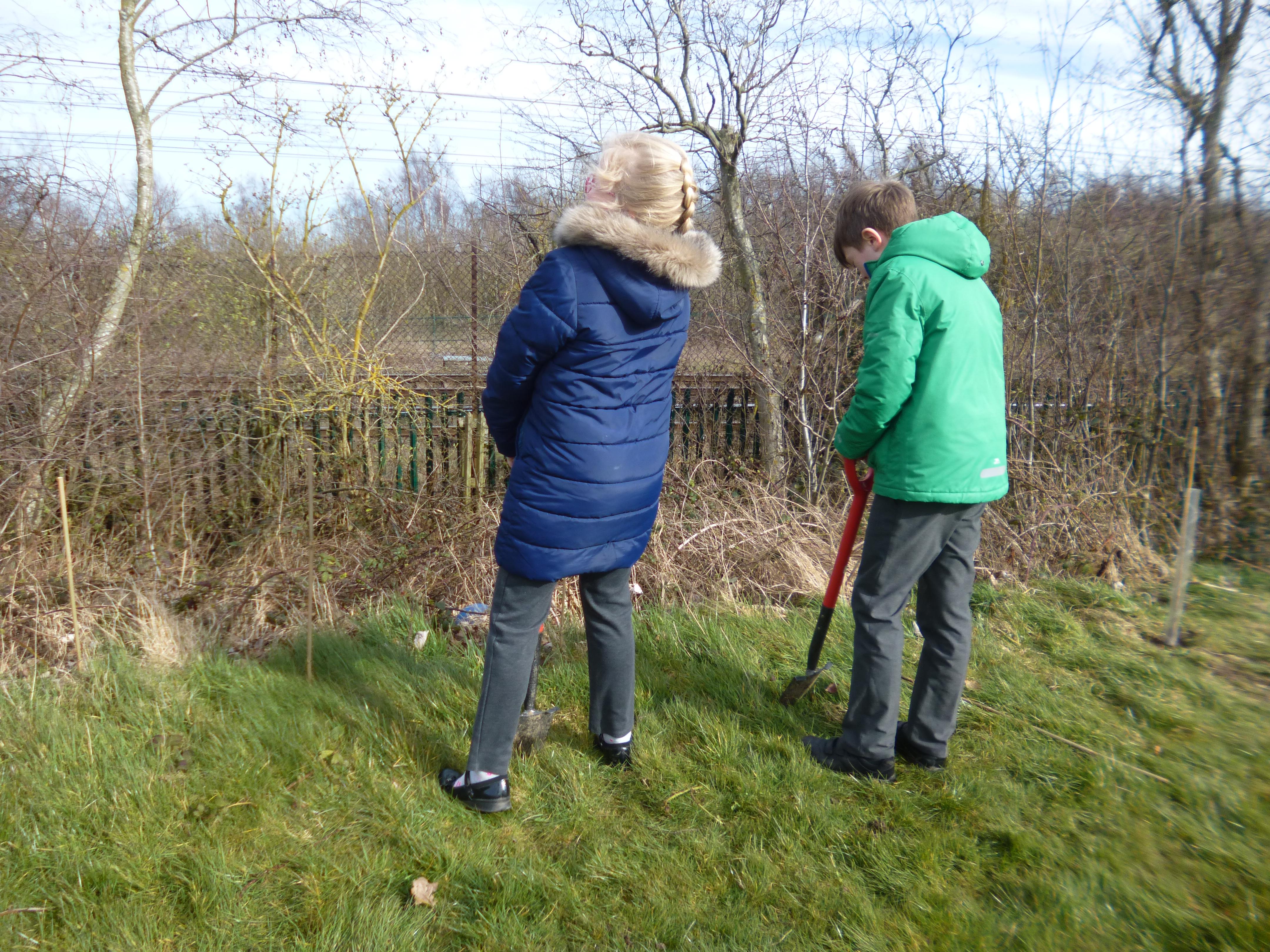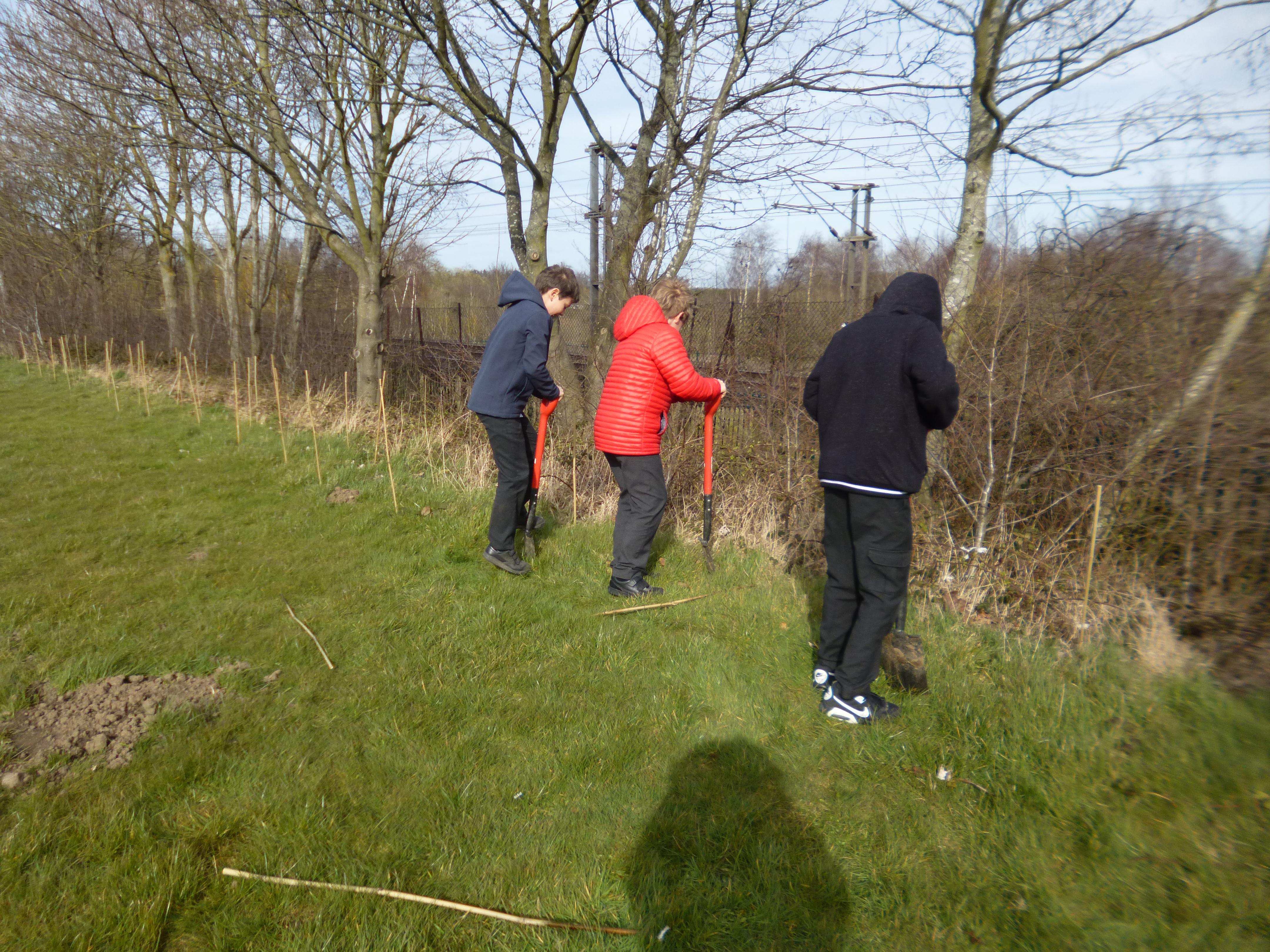 The gardening club kindly donated some trees to school. We worked together in family groups to plant them along the edge of our school field. We planted Holly, Willow, Hawthorn, Crab Apple and Birch.