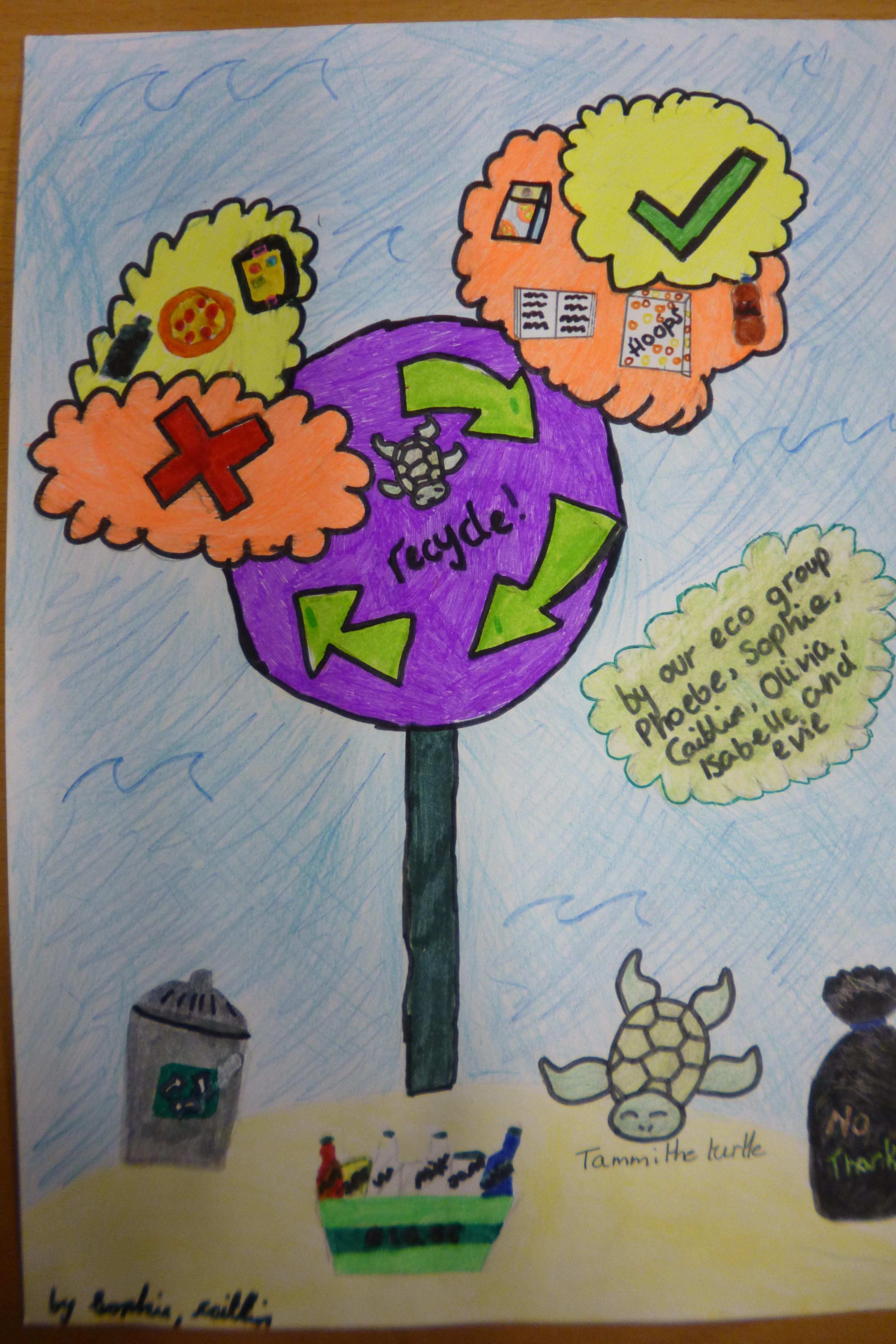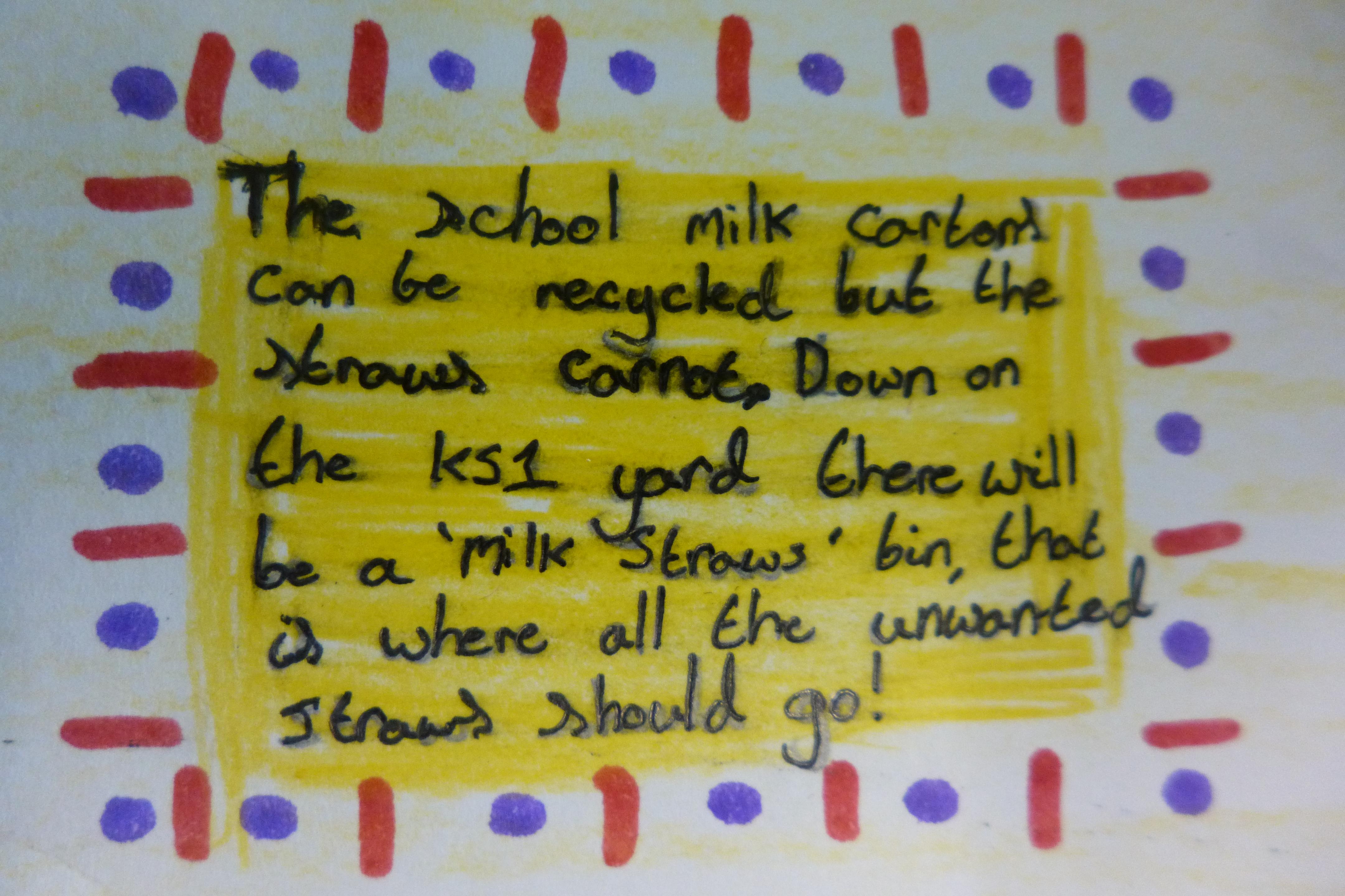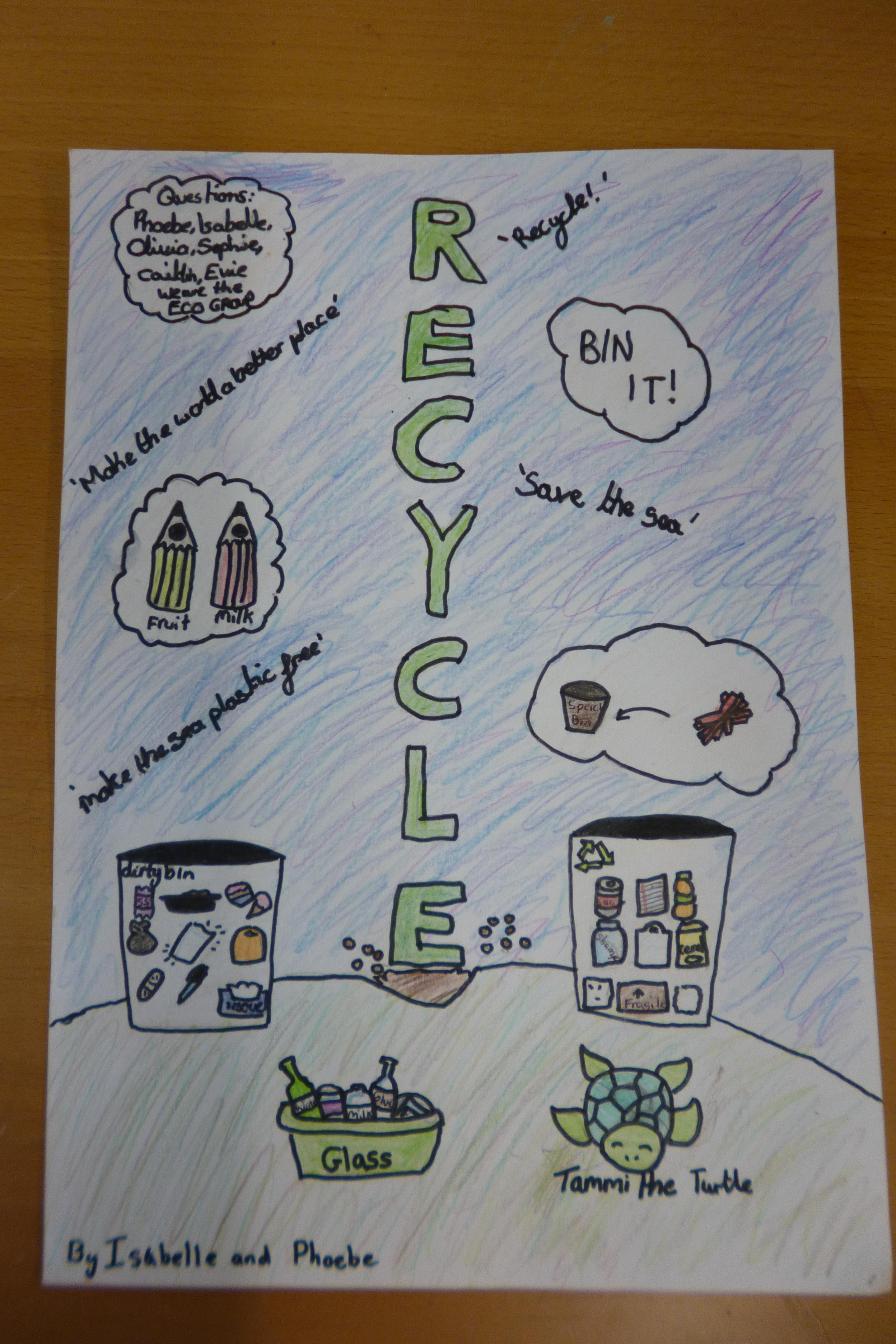 We also learnt some amazing facts – recycling one drinks can will provide enough energy to power a TV for 4 hours! We are improving our school practices to avoid as much single use plastic as we can, cutting down on our laminating too. Katie, Chris and Lez have labelled our bins to help us to remember. Pupils in our Eco Group, pictured above, are going to help classes with sorting items for recycling and they are also going to help our younger children recyle empty milk cartons.