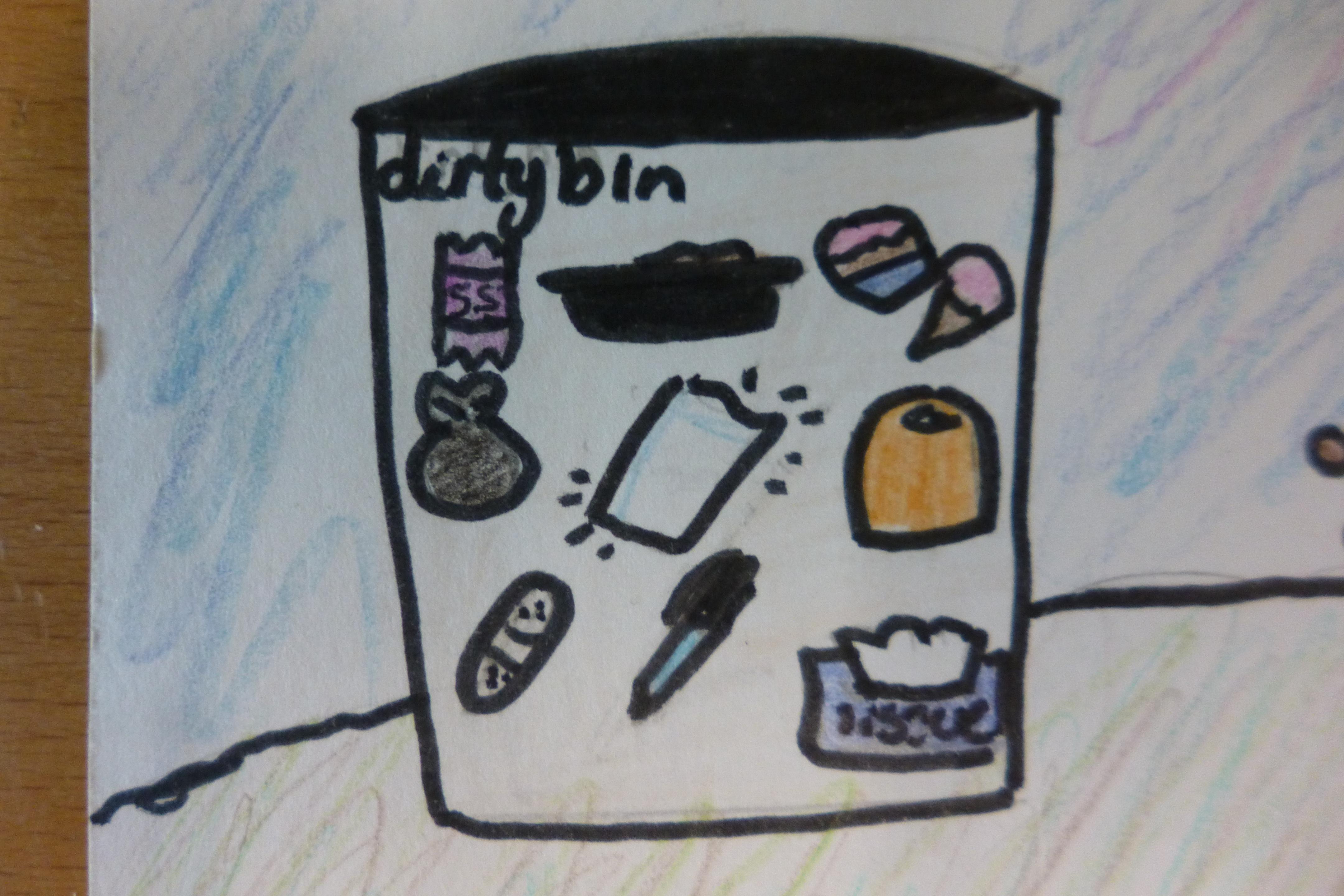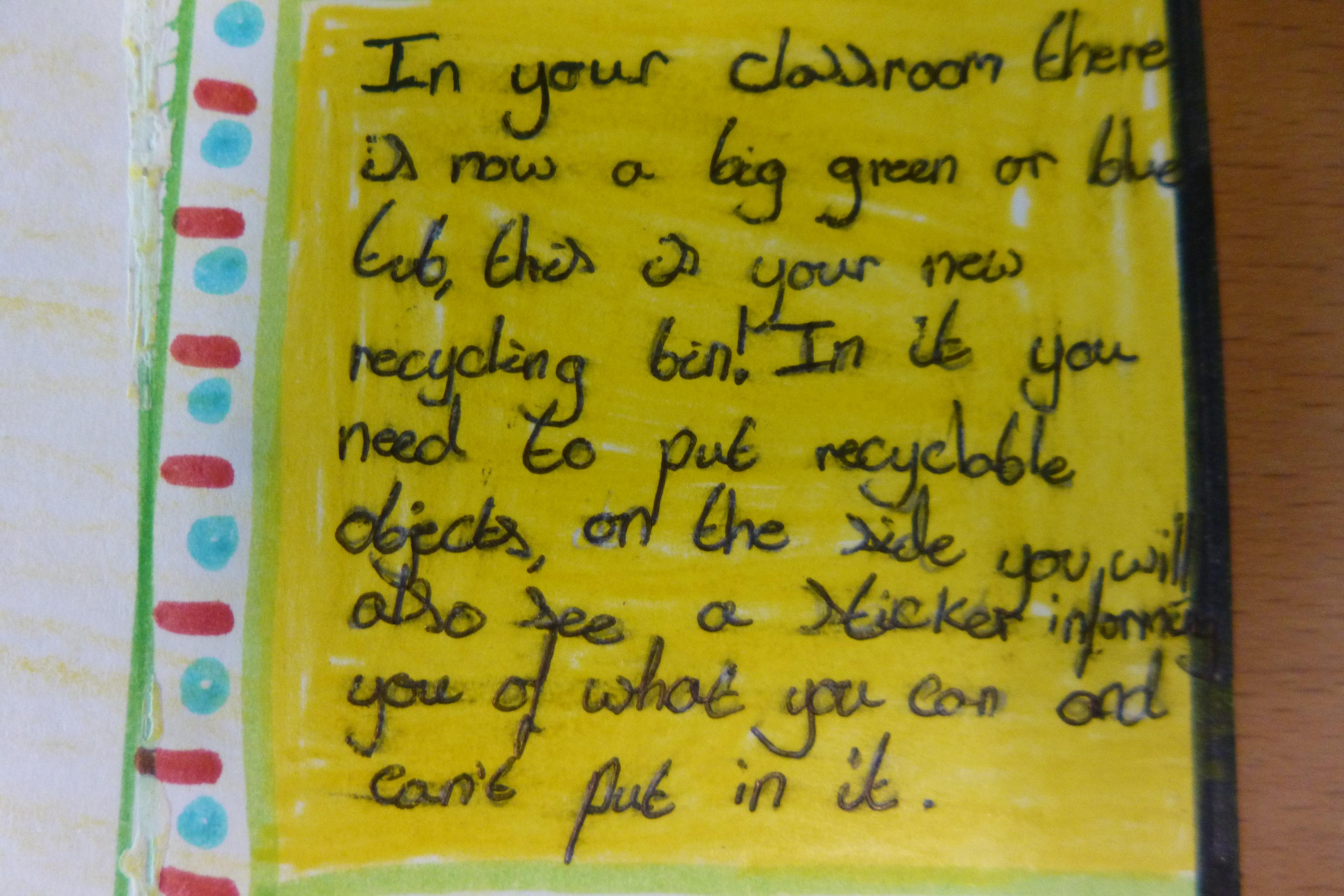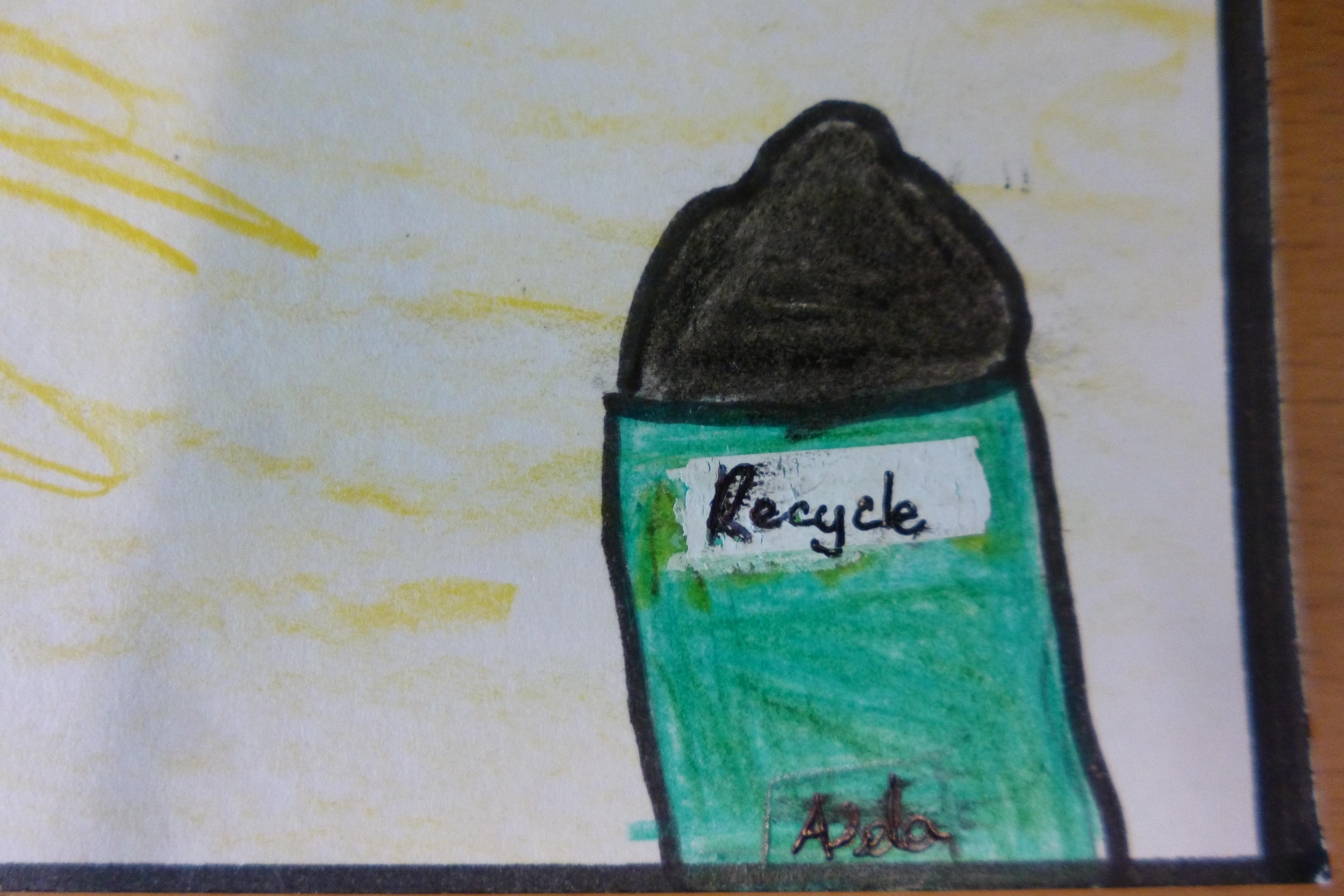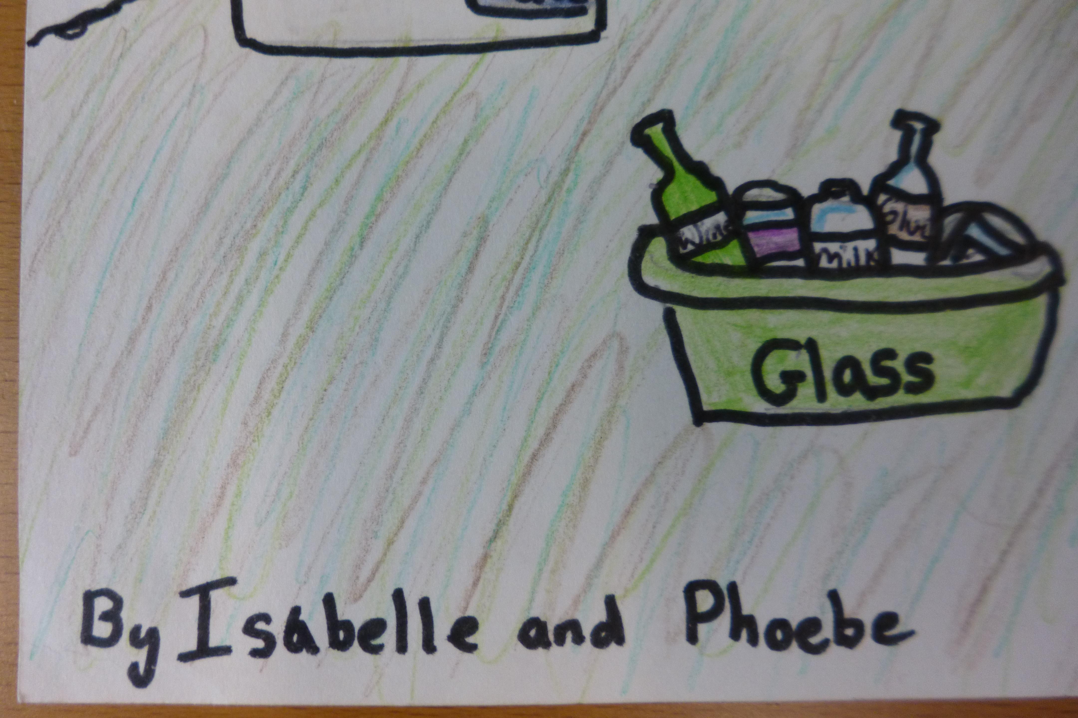We also learnt some amazing facts – recycling one drinks can will provide enough energy to power a TV for 4 hours! We are improving our school practices to avoid as much single use plastic as we can, cutting down on our laminating too. Katie, Chris and Lez have labelled our bins to help us to remember. Pupils in our Eco Group, pictured above, are going to help classes with sorting items for recycling and they are also going to help our younger children recyle empty milk cartons.
