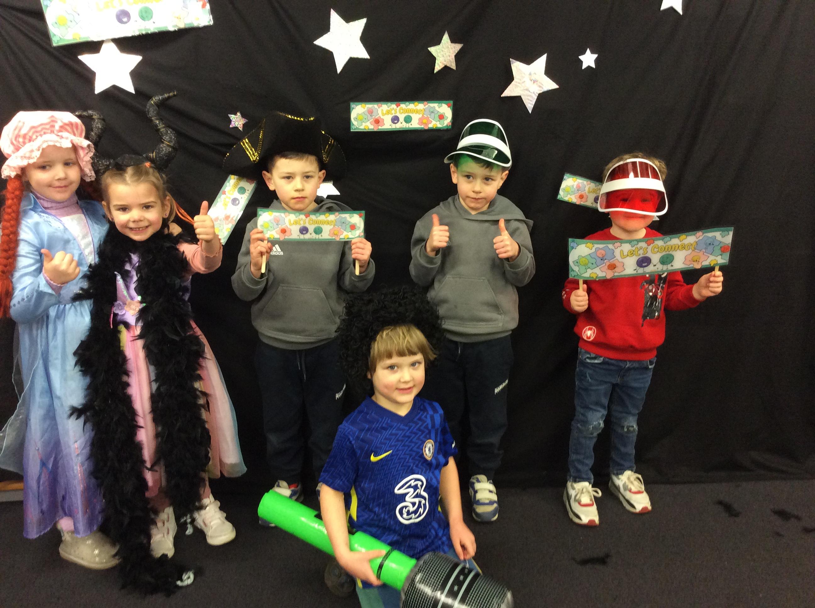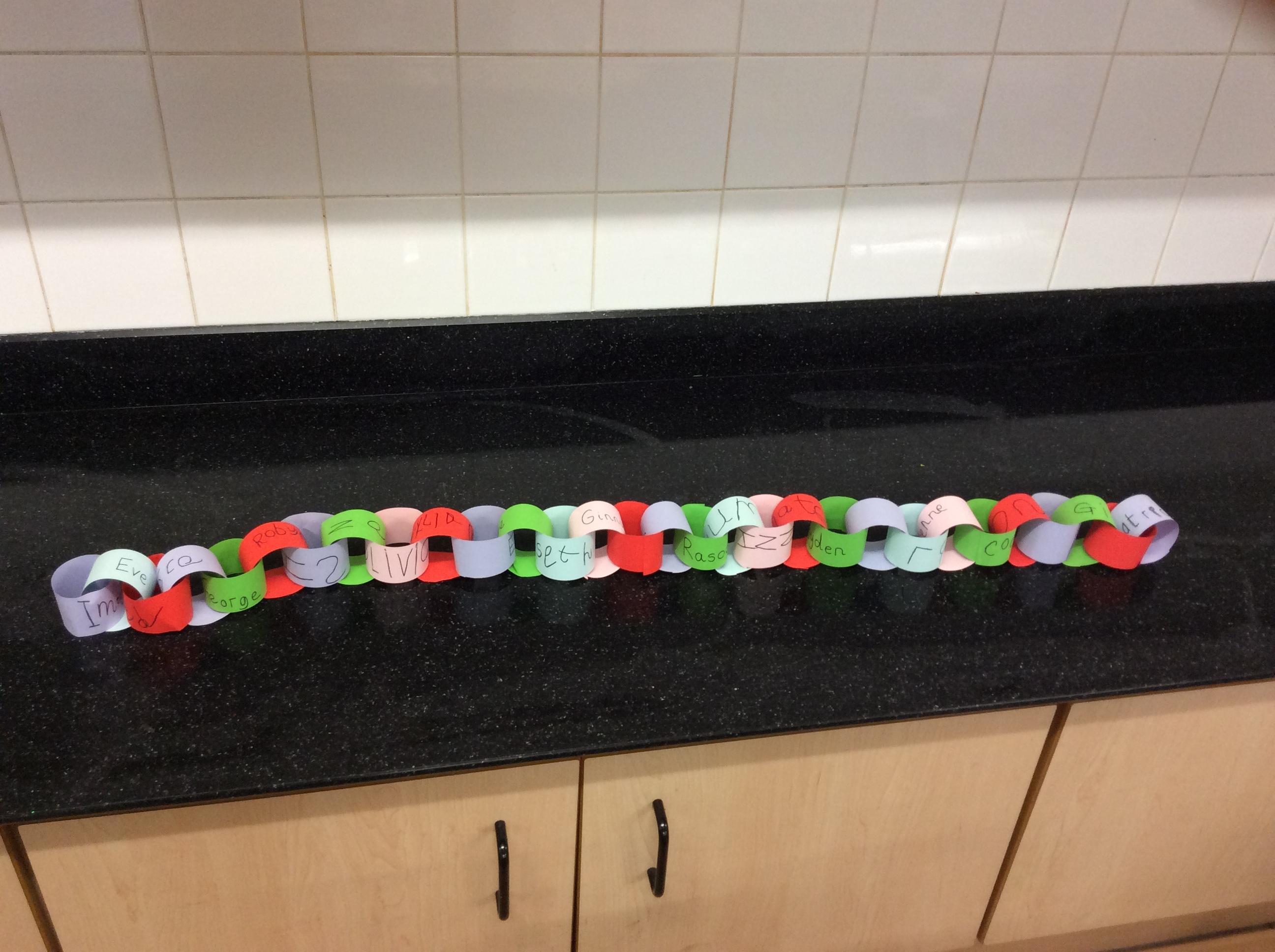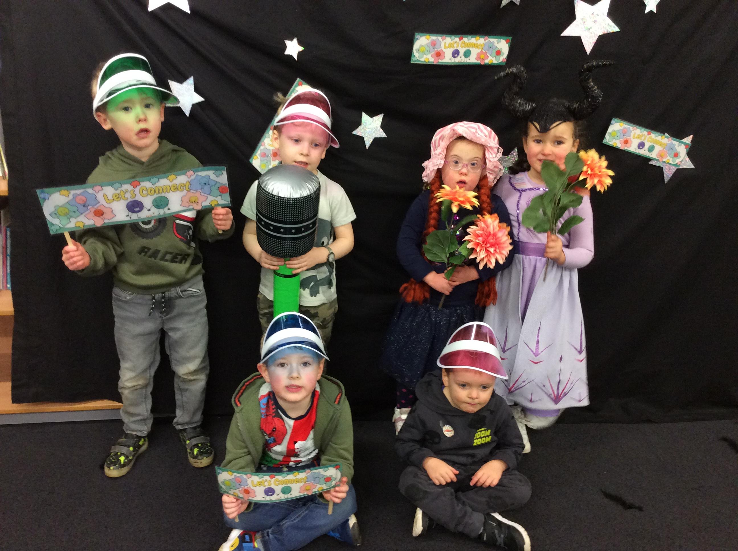 Reception enjoyed dressing up to express during Children's Mental Health week. We listened to a special story called The Invisible String and then decorated our own handprints. Then we joined them together to show how we are all connected in Reception. We also made our own paper chain with our names on, to show how our Finchale family is connected.