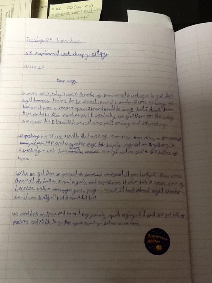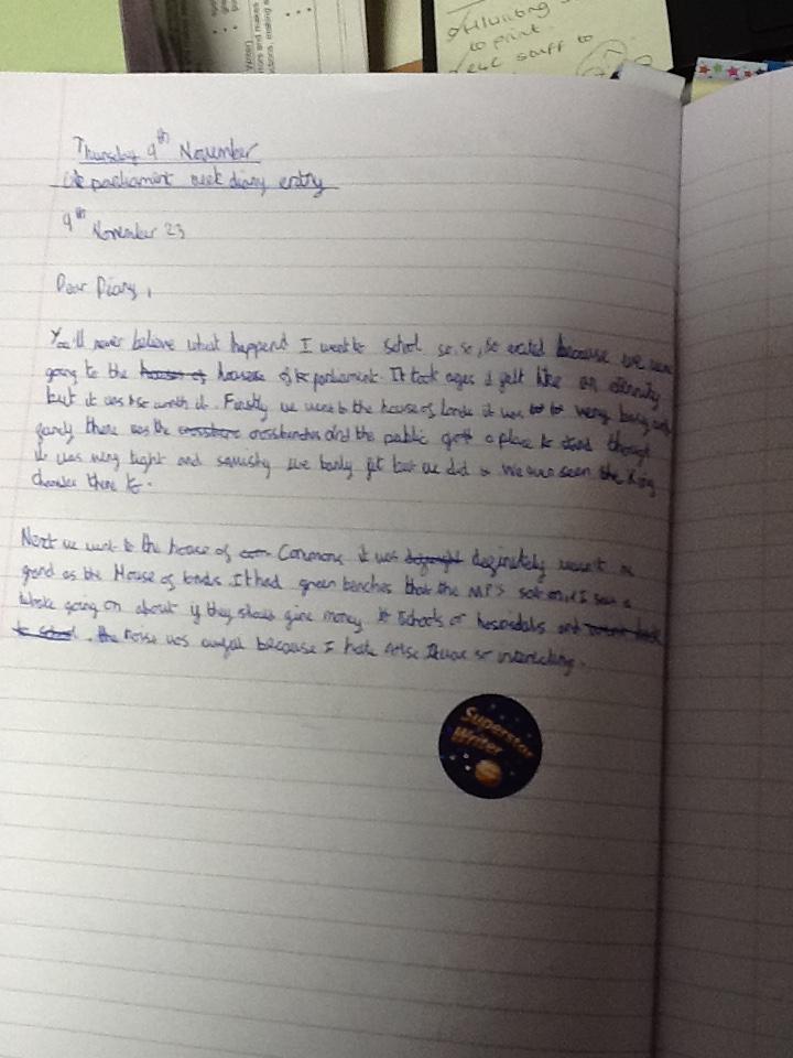 Year 4 carried out a virtual tour of the House of Lords and House of Commons and compared and contrasted these. They then wrote a diary entry about their "trip" to Parliament and described what they could see and how they felt about the experience.
