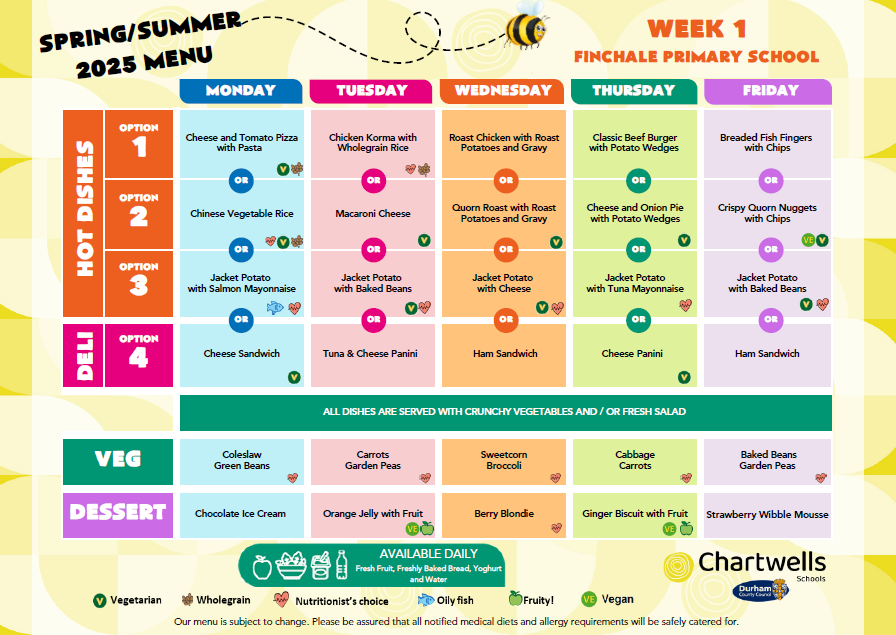 Call at the school office or telephone 0191 3865187 to order school lunches for your child. The current cost is £2.95 per day / £14.75 per week. This can be paid for on Arbor.
