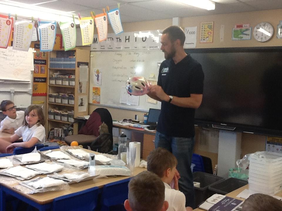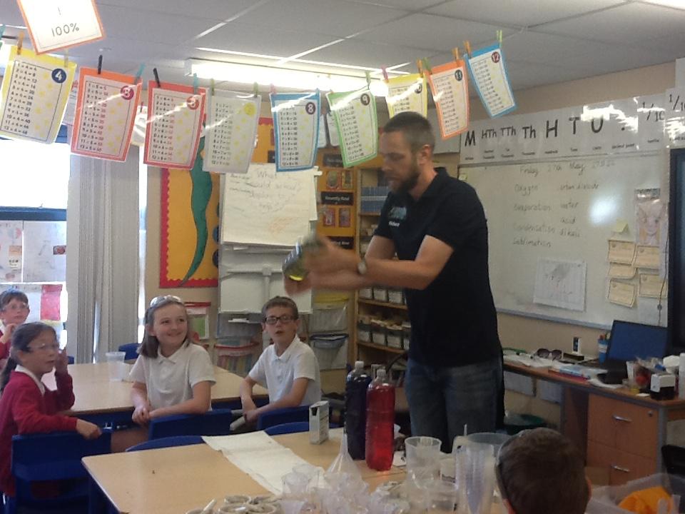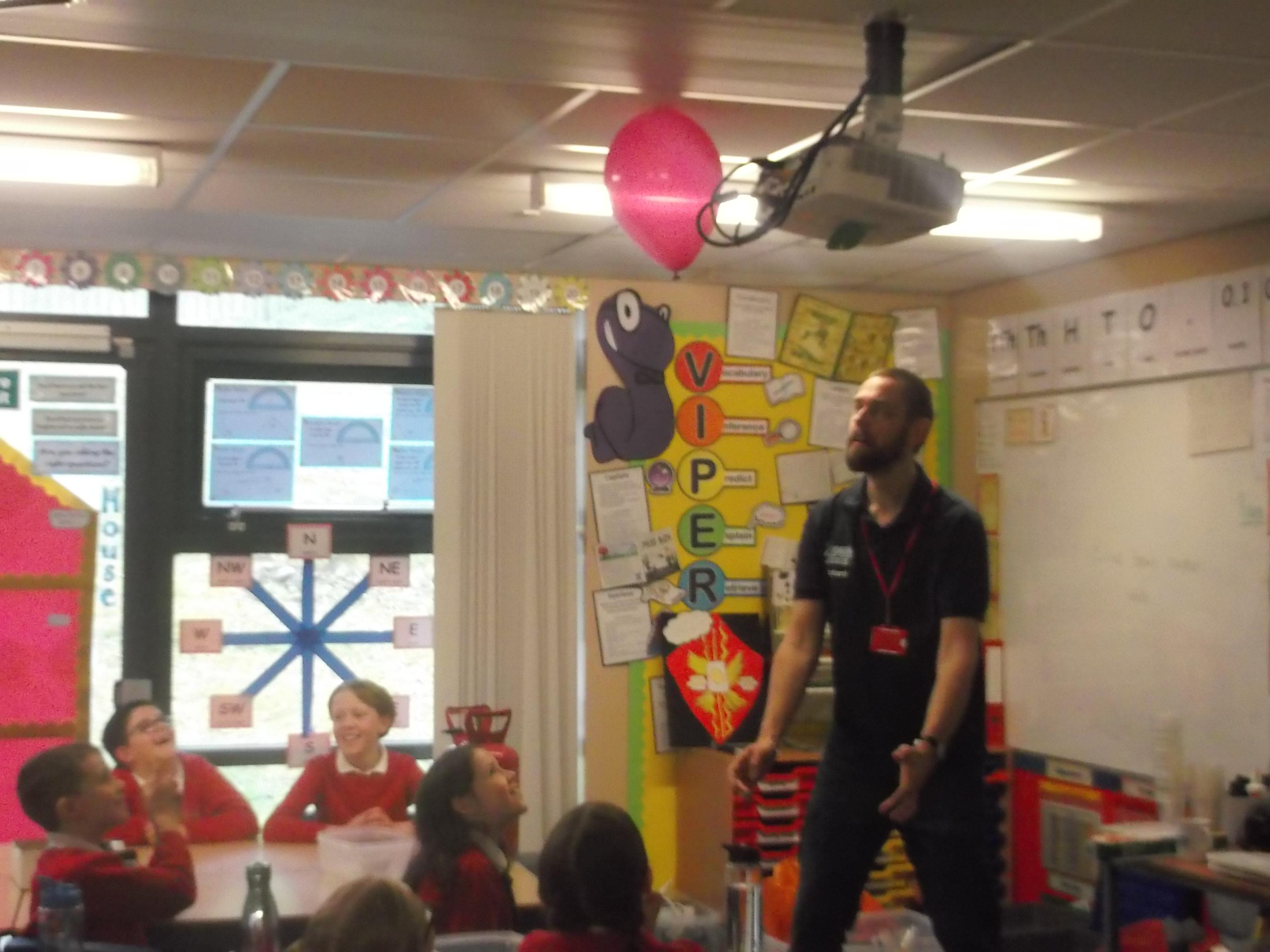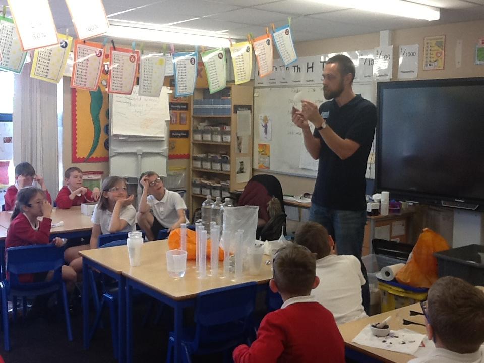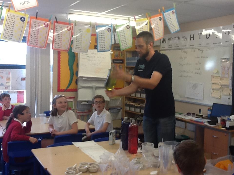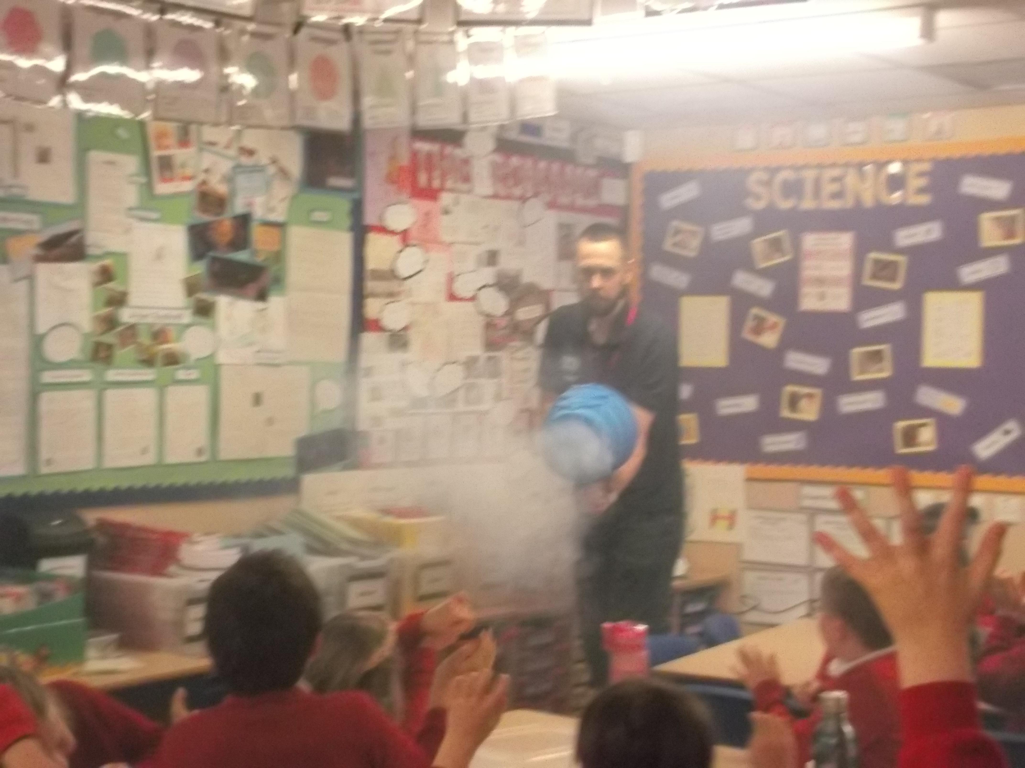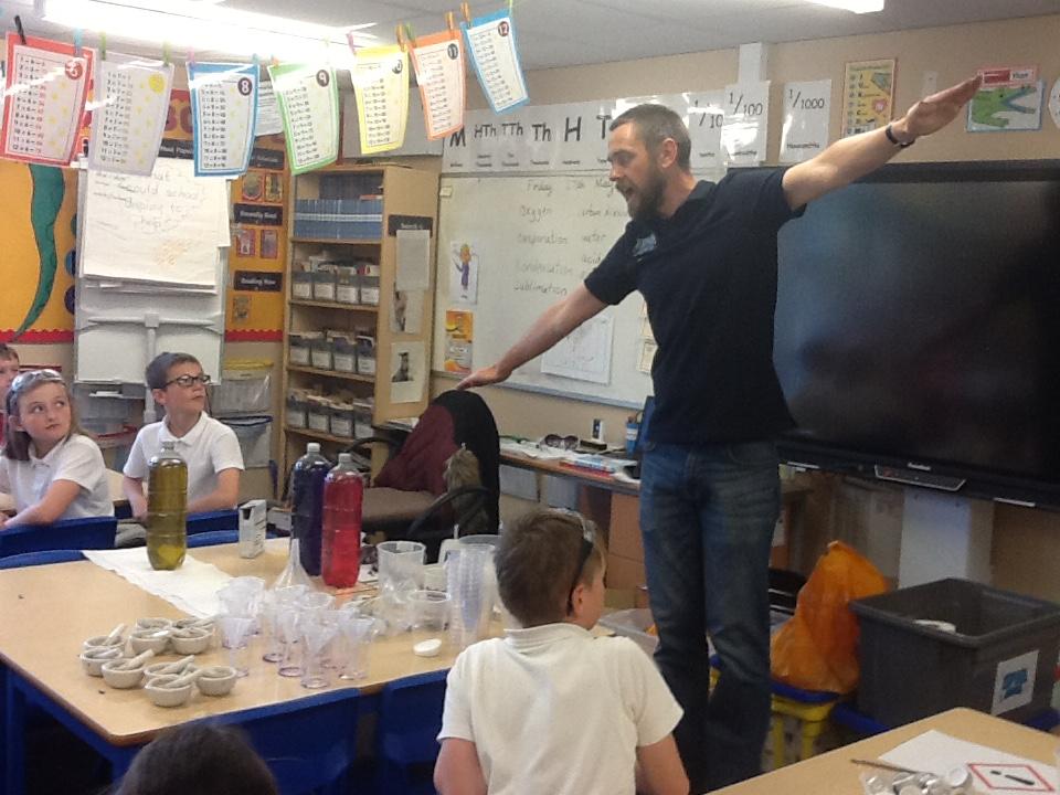 Year 4 had lots of fun exploring States of Matter with Captain Chemistry. We conducted many experiments including, creating our own water cycle, investigating which material is the best for insulating ice, extinguishing a candle with gas, creating a filtration system and making slime! Captain Chemistry also showed us some interesting things including, moving gas around the room and creating a rocket. We had so much fun - thank you for visiting us Captain Chemistry!