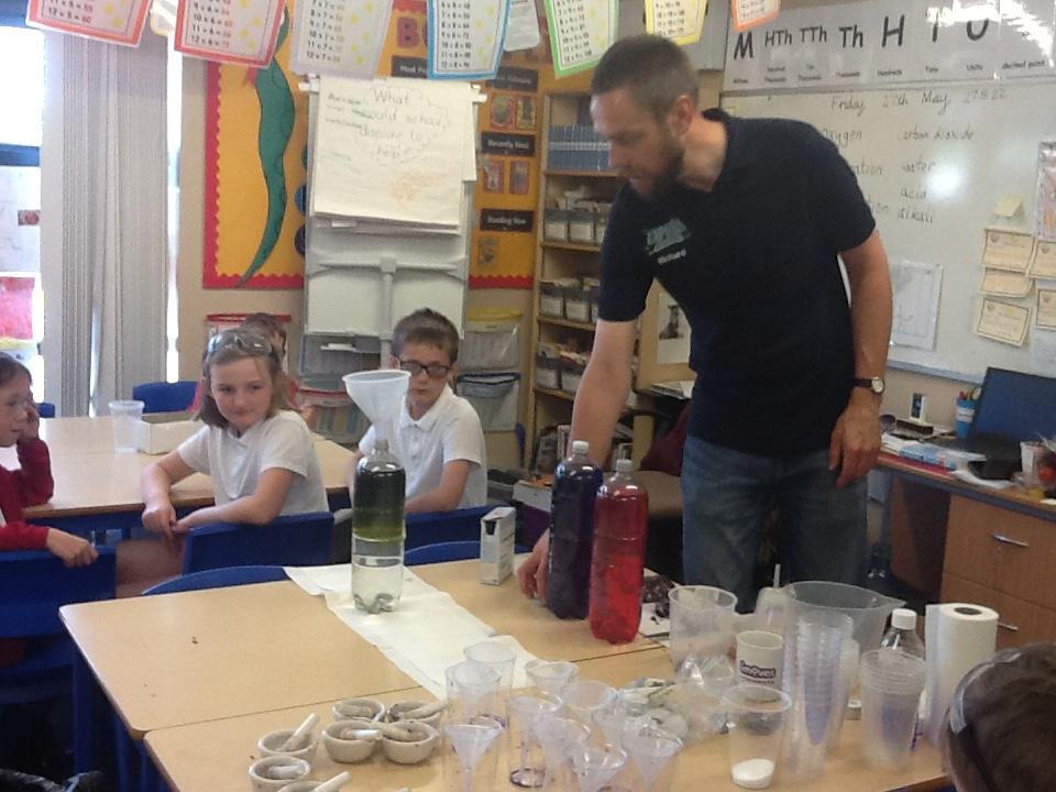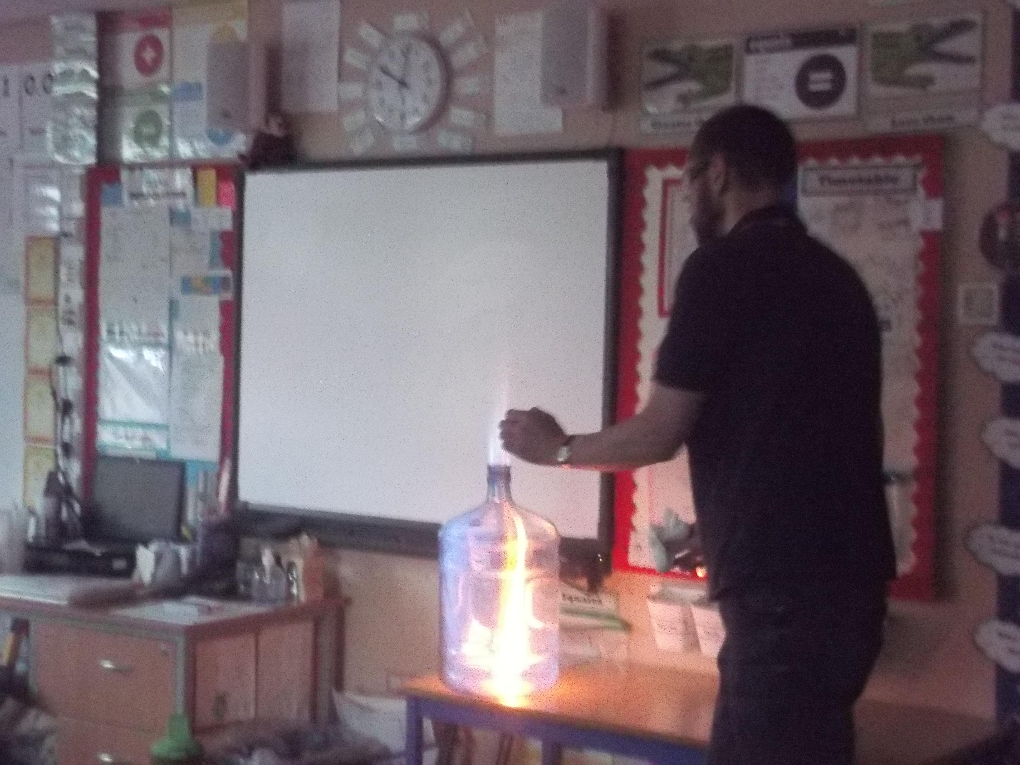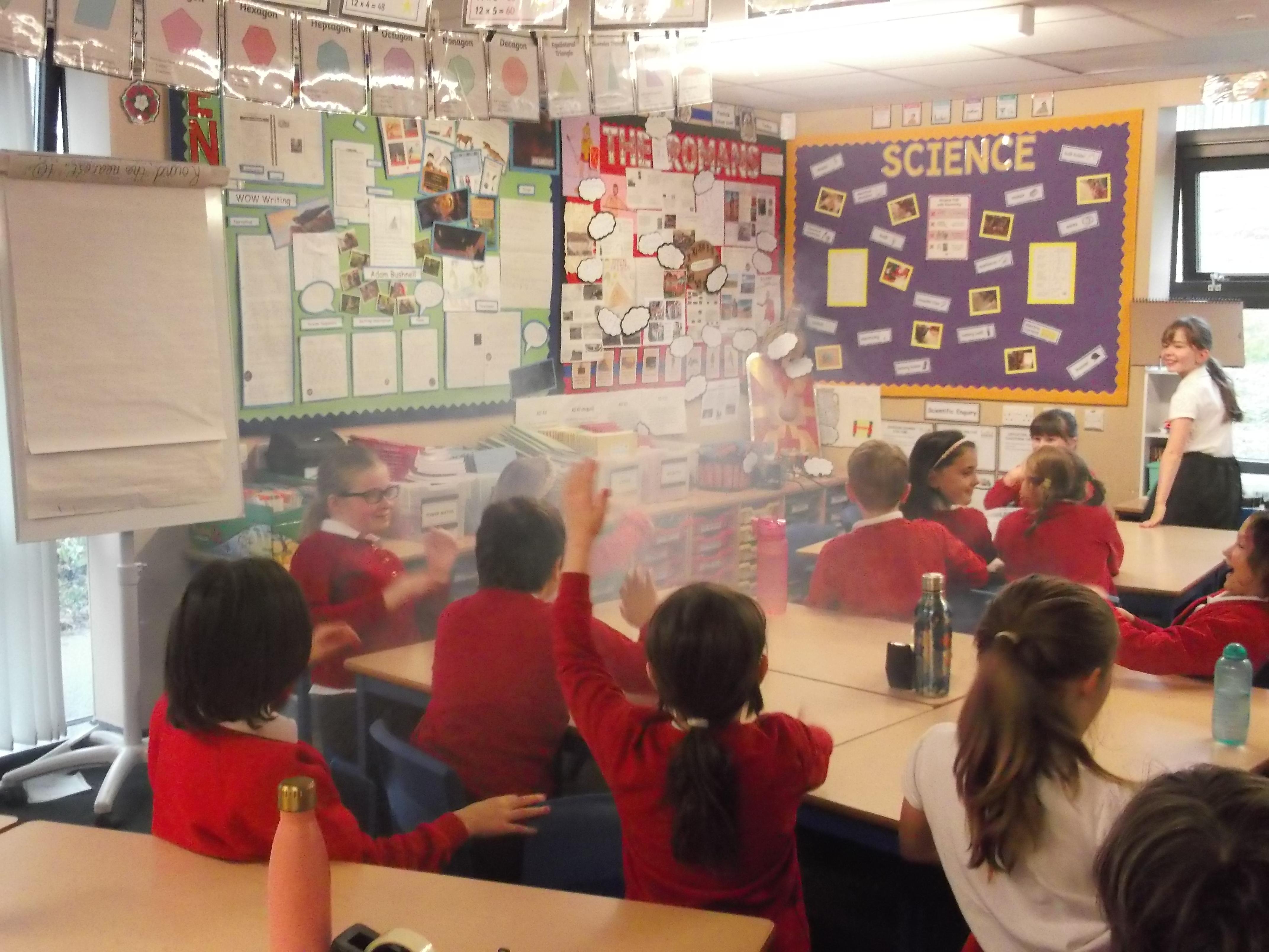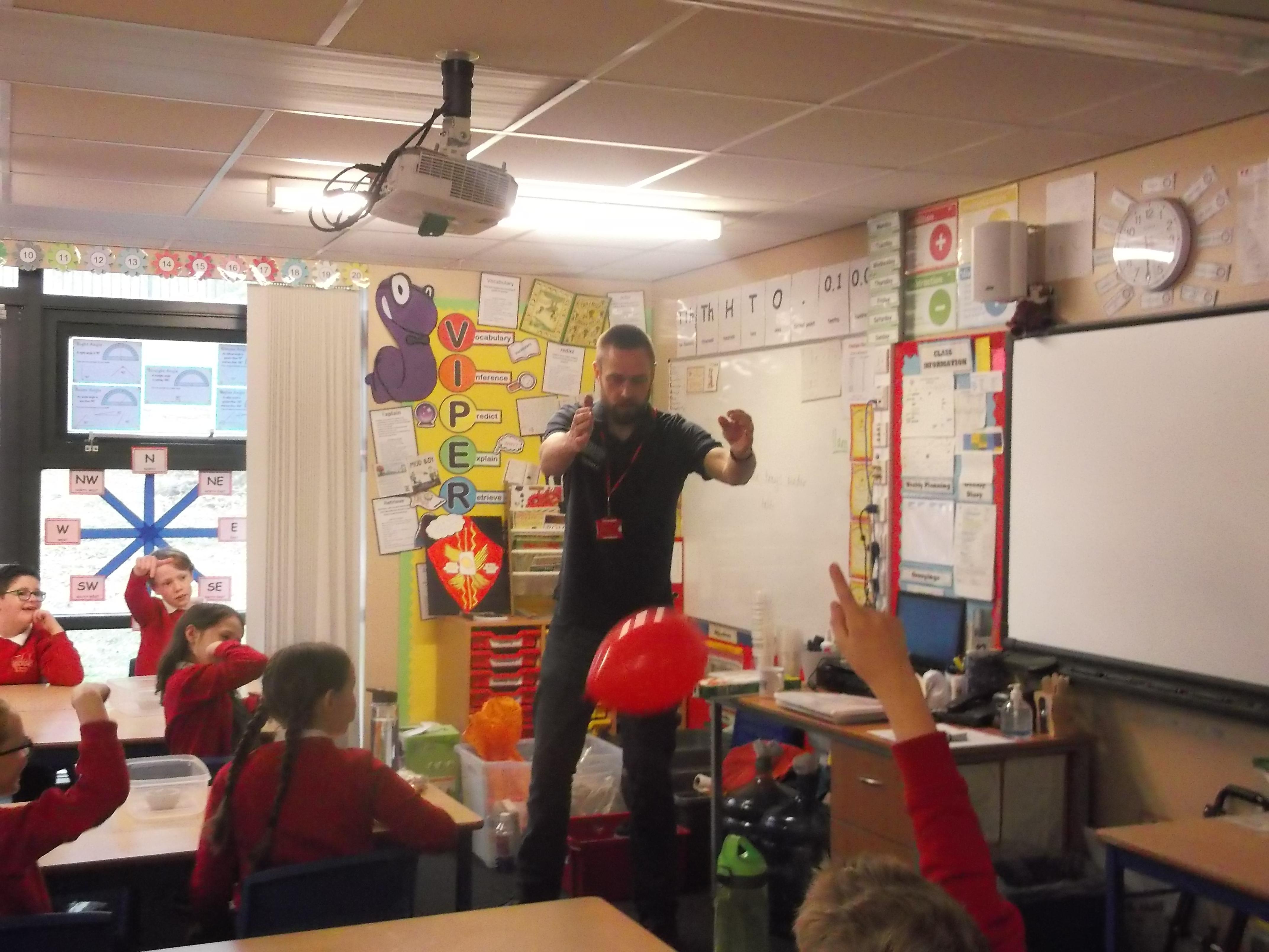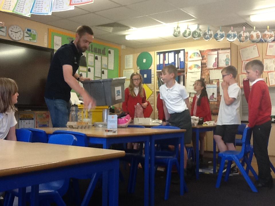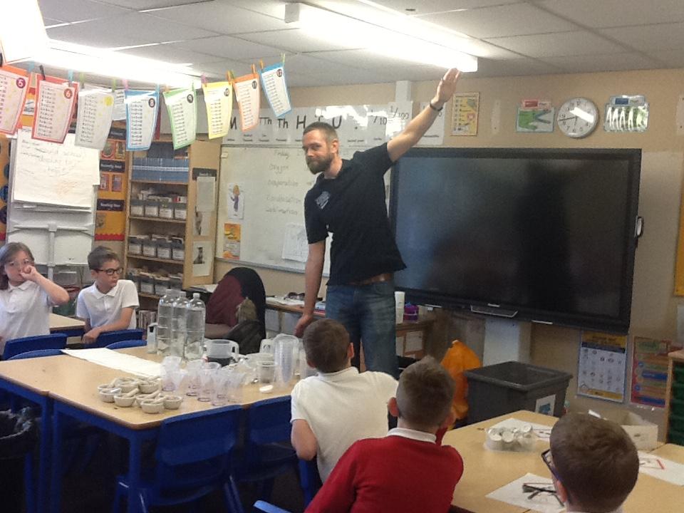 Year 4 had lots of fun exploring States of Matter with Captain Chemistry. We conducted many experiments including, creating our own water cycle, investigating which material is the best for insulating ice, extinguishing a candle with gas, creating a filtration system and making slime! Captain Chemistry also showed us some interesting things including, moving gas around the room and creating a rocket. We had so much fun - thank you for visiting us Captain Chemistry!