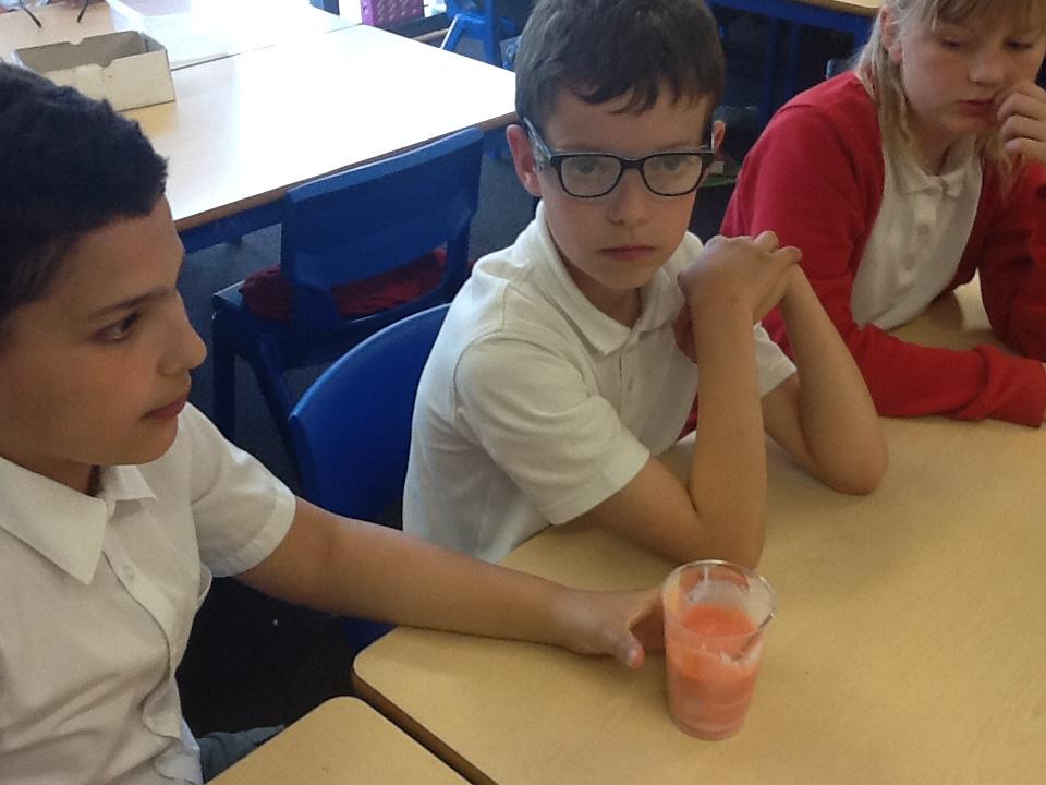 Year 6 were looking at the circulatory system as part of their science work and one of the activities was to look at what was in blood. They thoroughly enjoyed the activity of making blood, using everyday items to represent different parts.