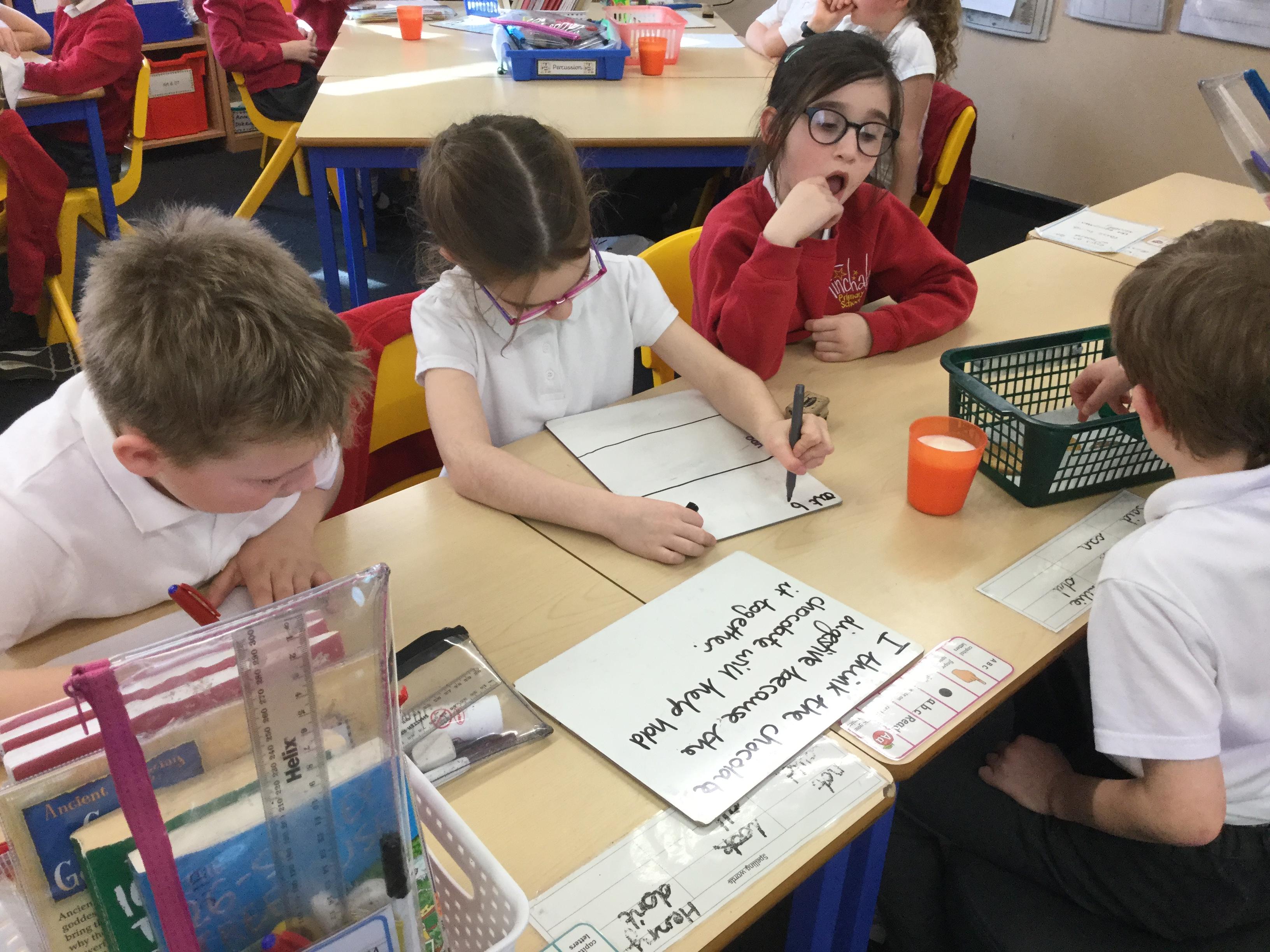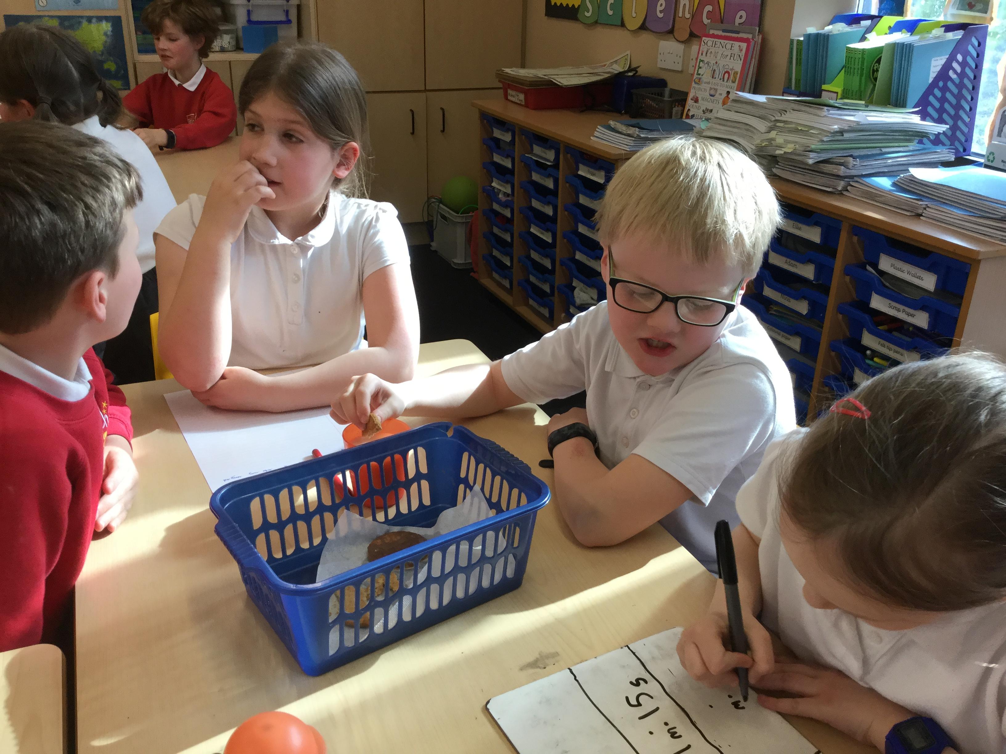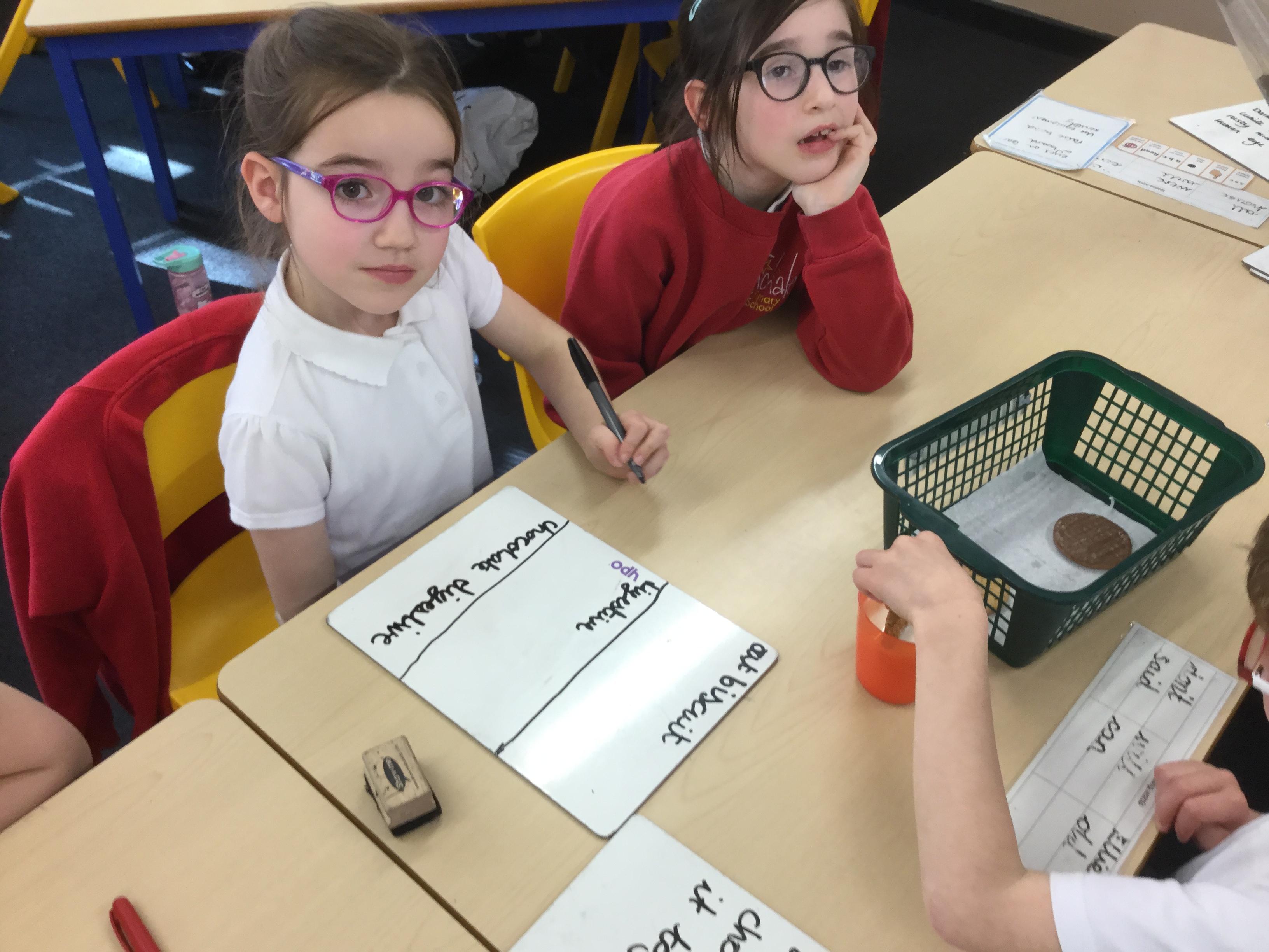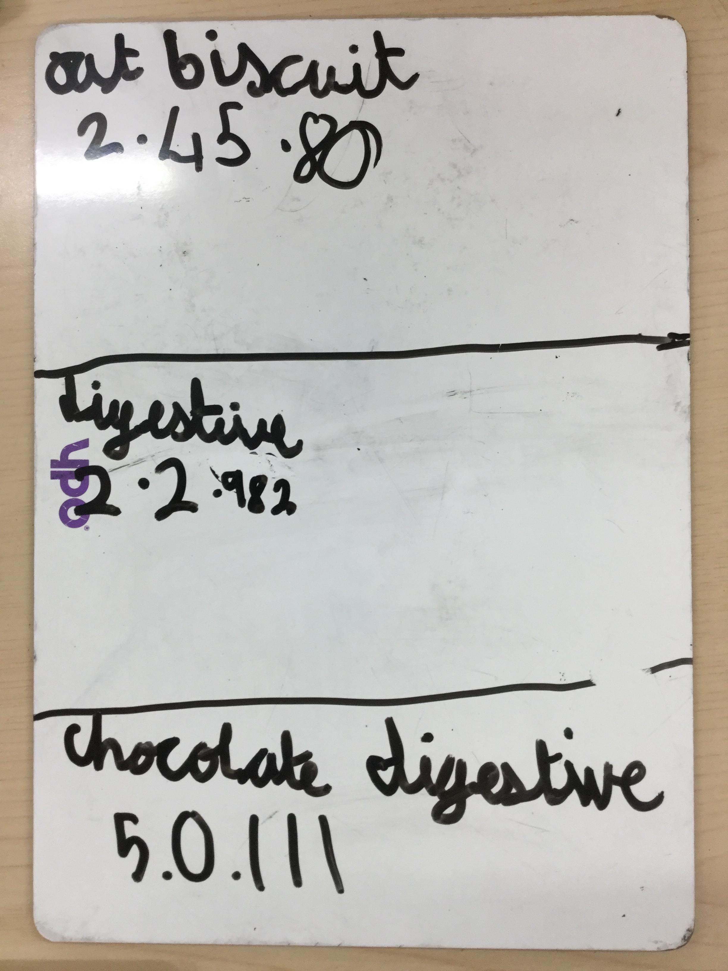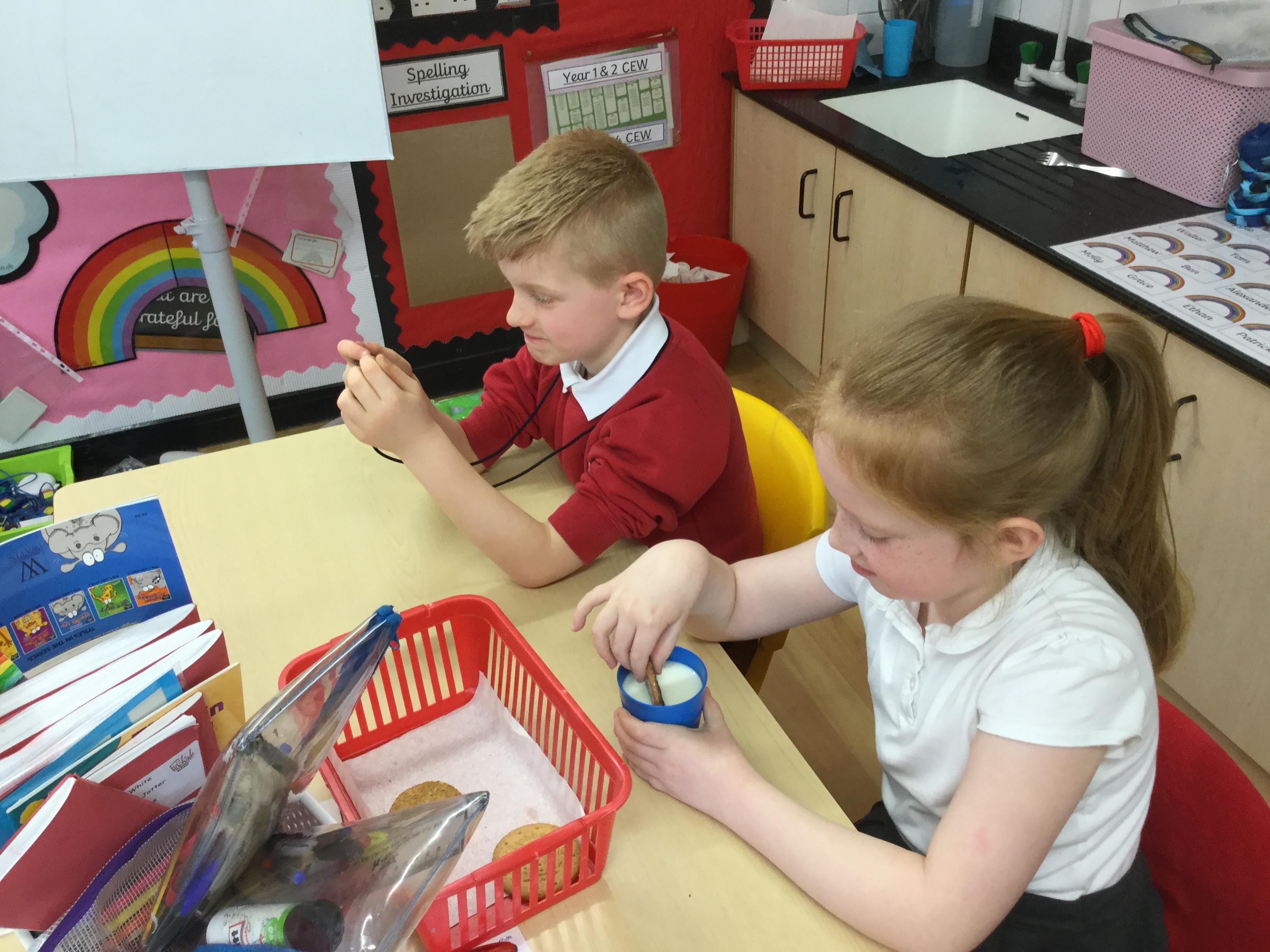 In Year 3, we investigated which biscuits would be best for dunking in cold milk. We discussed how we could measure if a biscuit was ‘good for dunking’ and decided that we would time to see how long a biscuit could stay half submerged in a glass of milk before it broke. We had 3 different biscuits to investigate – digestive, oat and chocolate digestive. Before we did the experiment, each group made a prediction to see which biscuit would last the longest and why. In our groups we each had a role: timer, dunker and recorder of results. After completing the experiment, we came to the conclusion that the chocolate digestive biscuit was the best biscuit for dunking, as it still hadn’t disintegrated after 5 minutes. We realised that the chocolate worked as a protective shield, helping to hold the biscuit crumbs together.