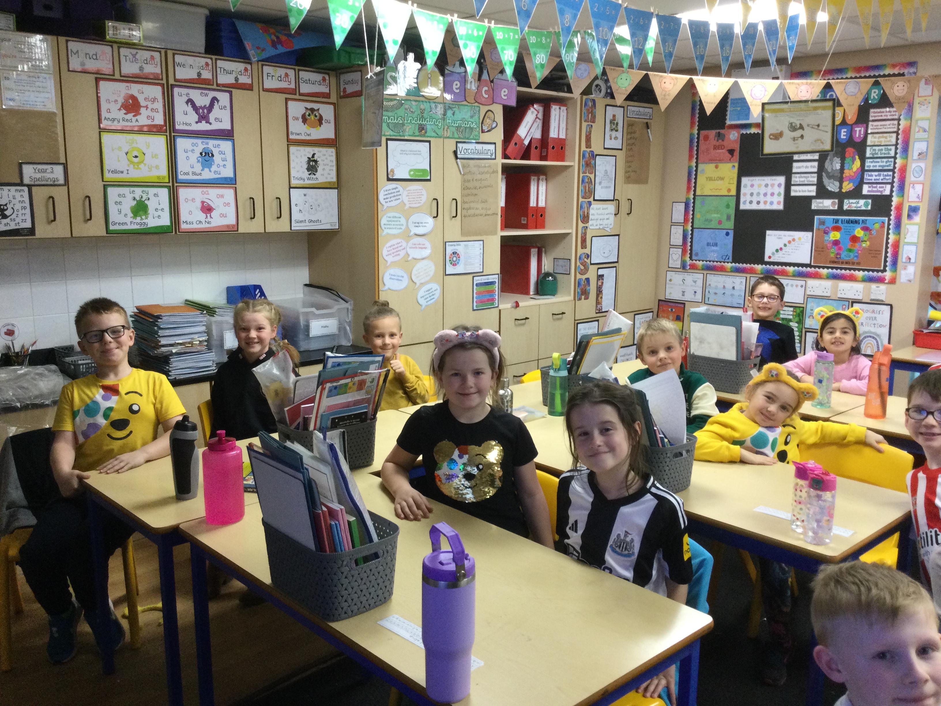 Today the children dressed as Rockstars, Number Blocks, Numbots or other number inspired themes, to raise money for the NSPCC. The children took part in various activities and challenges, related to number, throughout the day. They even tried to guess how many Jellybeans were in the jar!