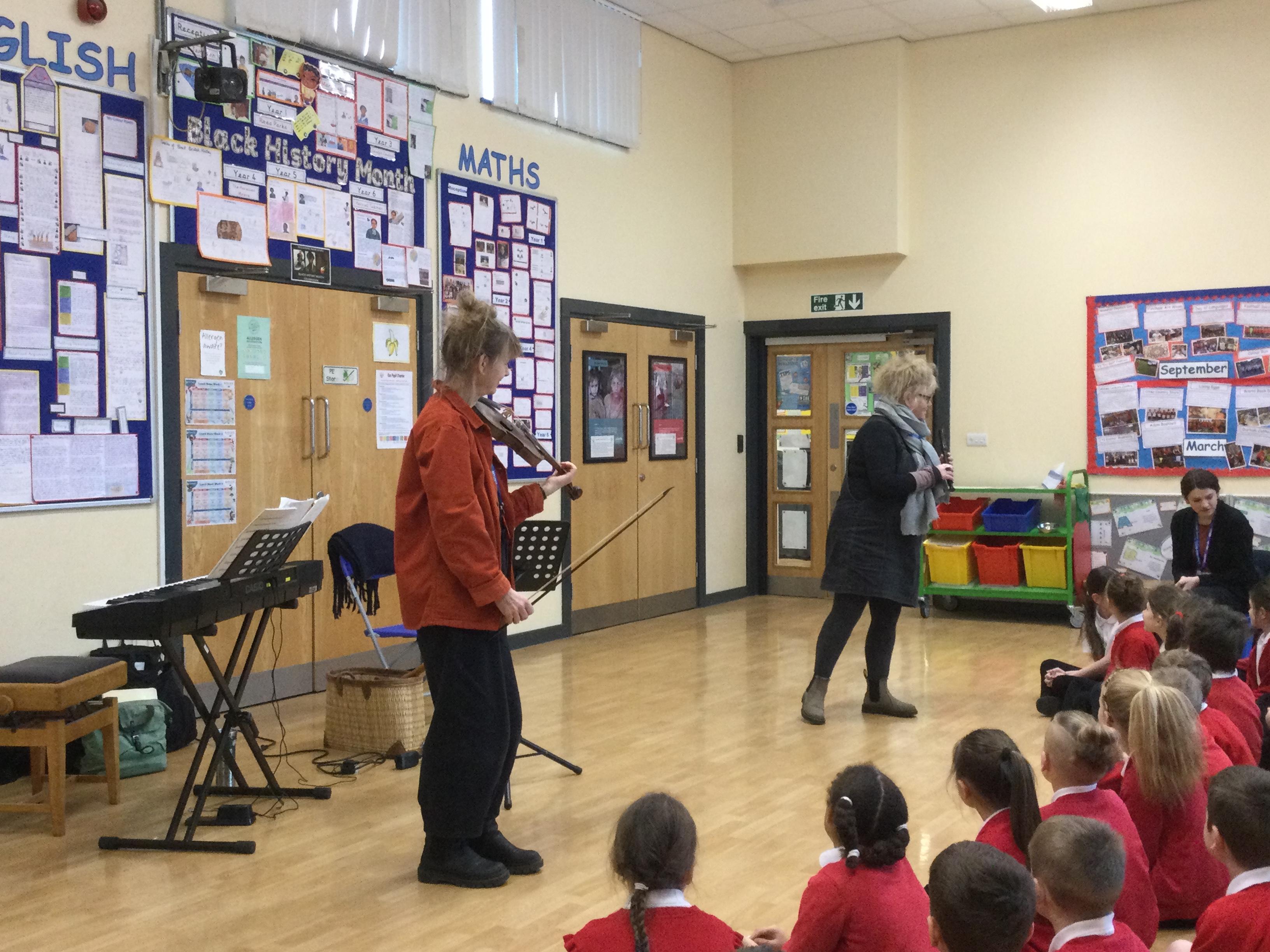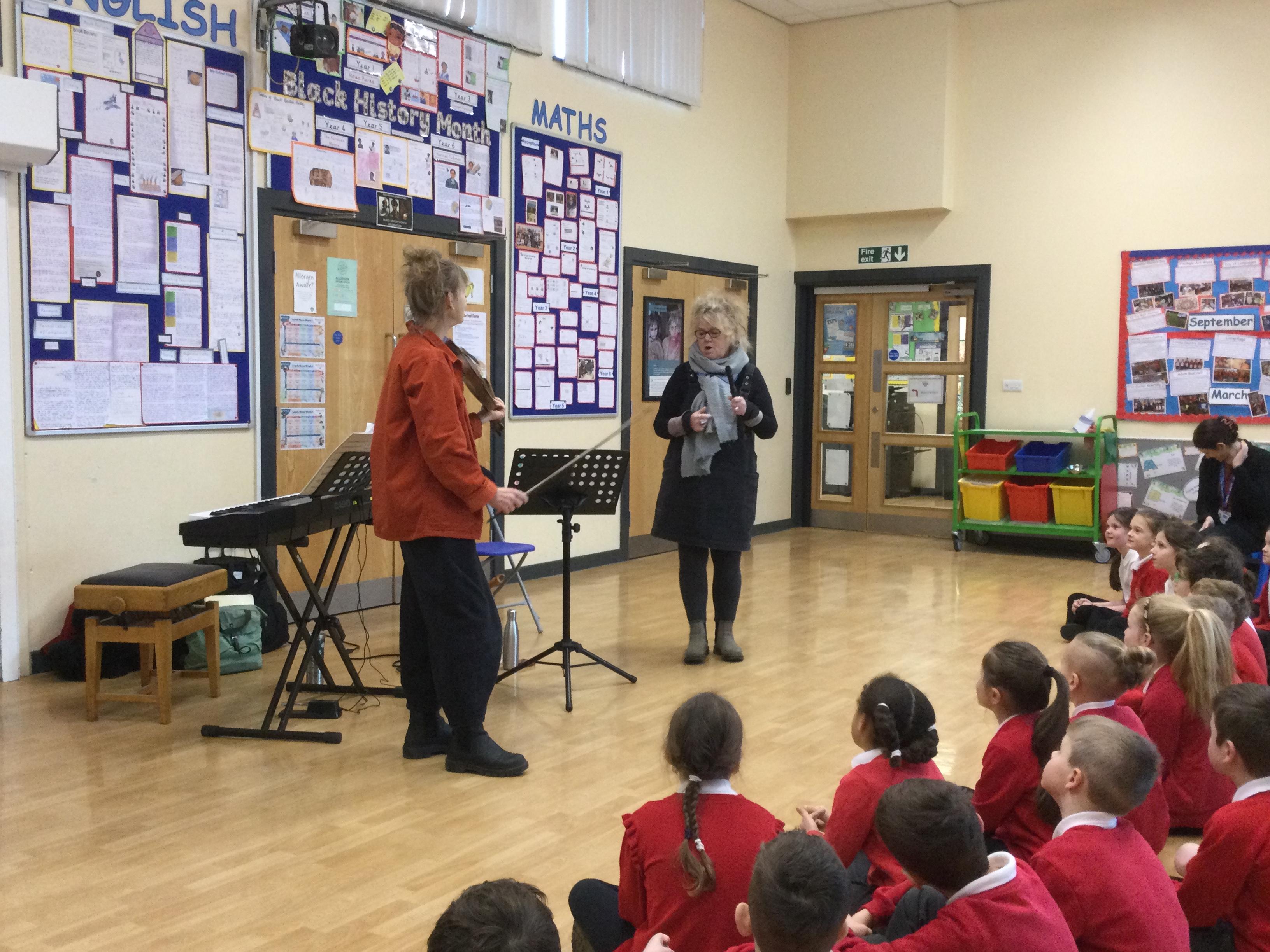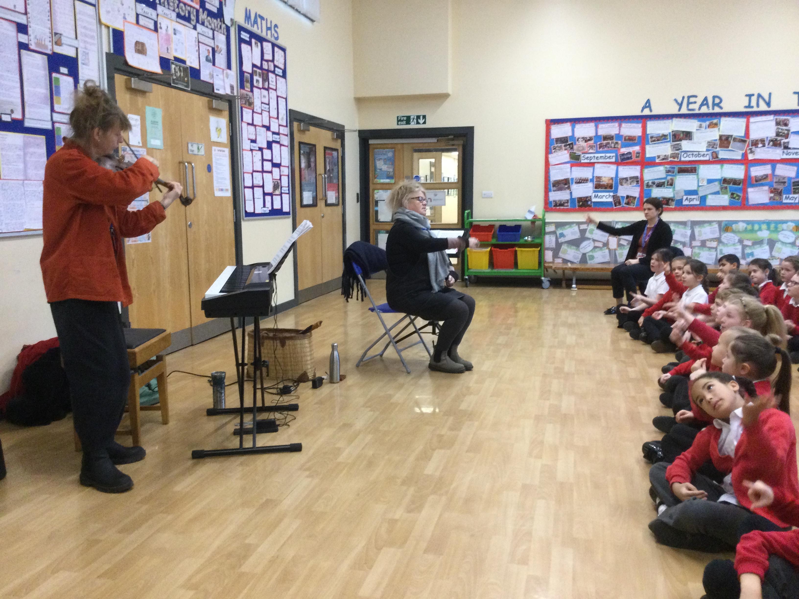 Year 3 and 4 had a fantastic opportunity to work with The Orchestra of the Age of Enlightenment on the opera The Fairy Queen. Members from the orchestra, including the composer, came into school to work with the children in two workshops. They then got to rehearse and perform with the orchestra, professional singers and other school choirs and musicians at the Empire theatre in Consett.