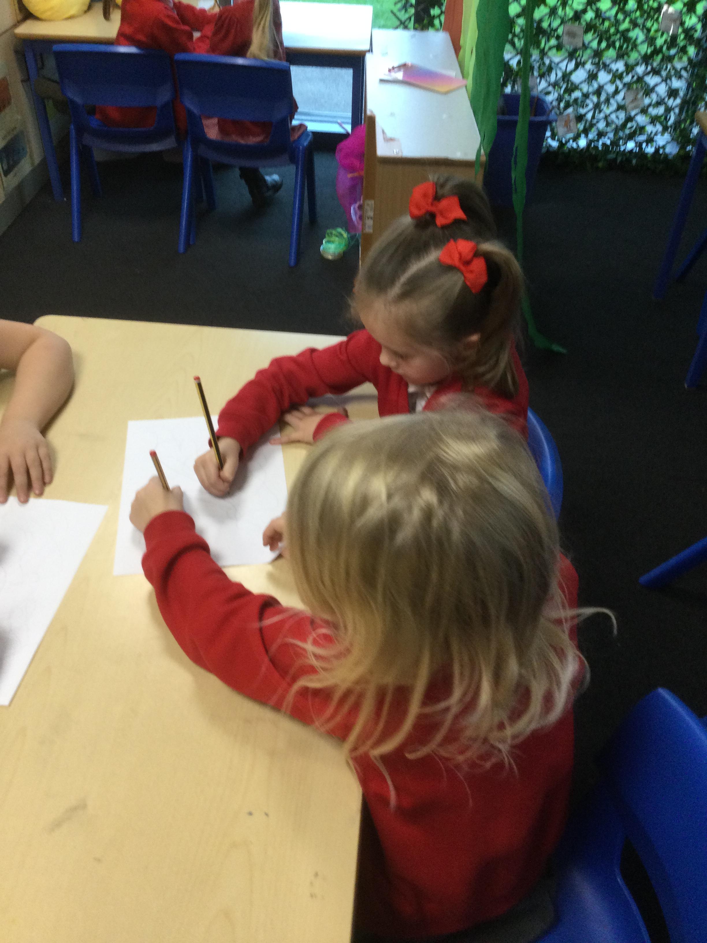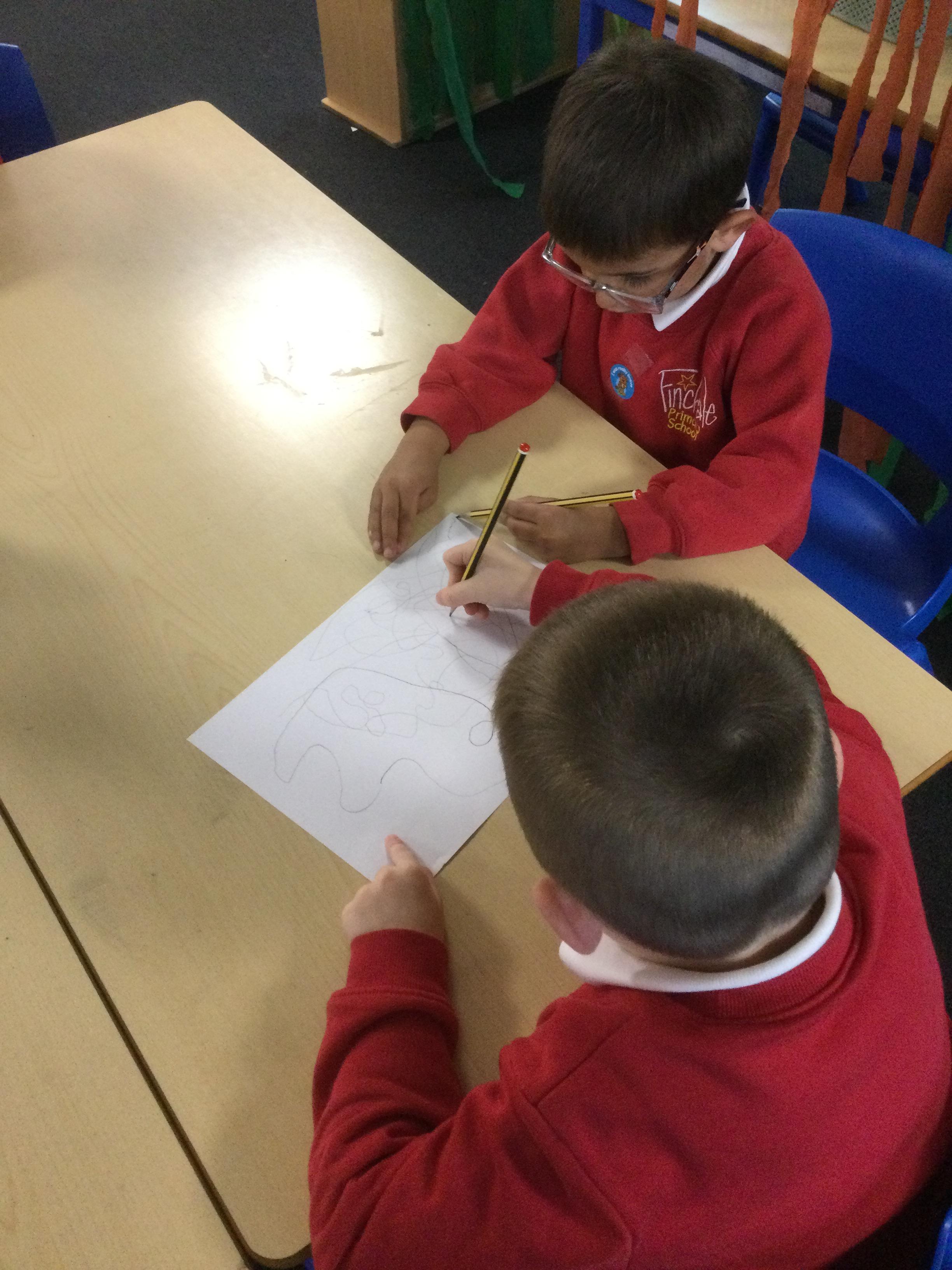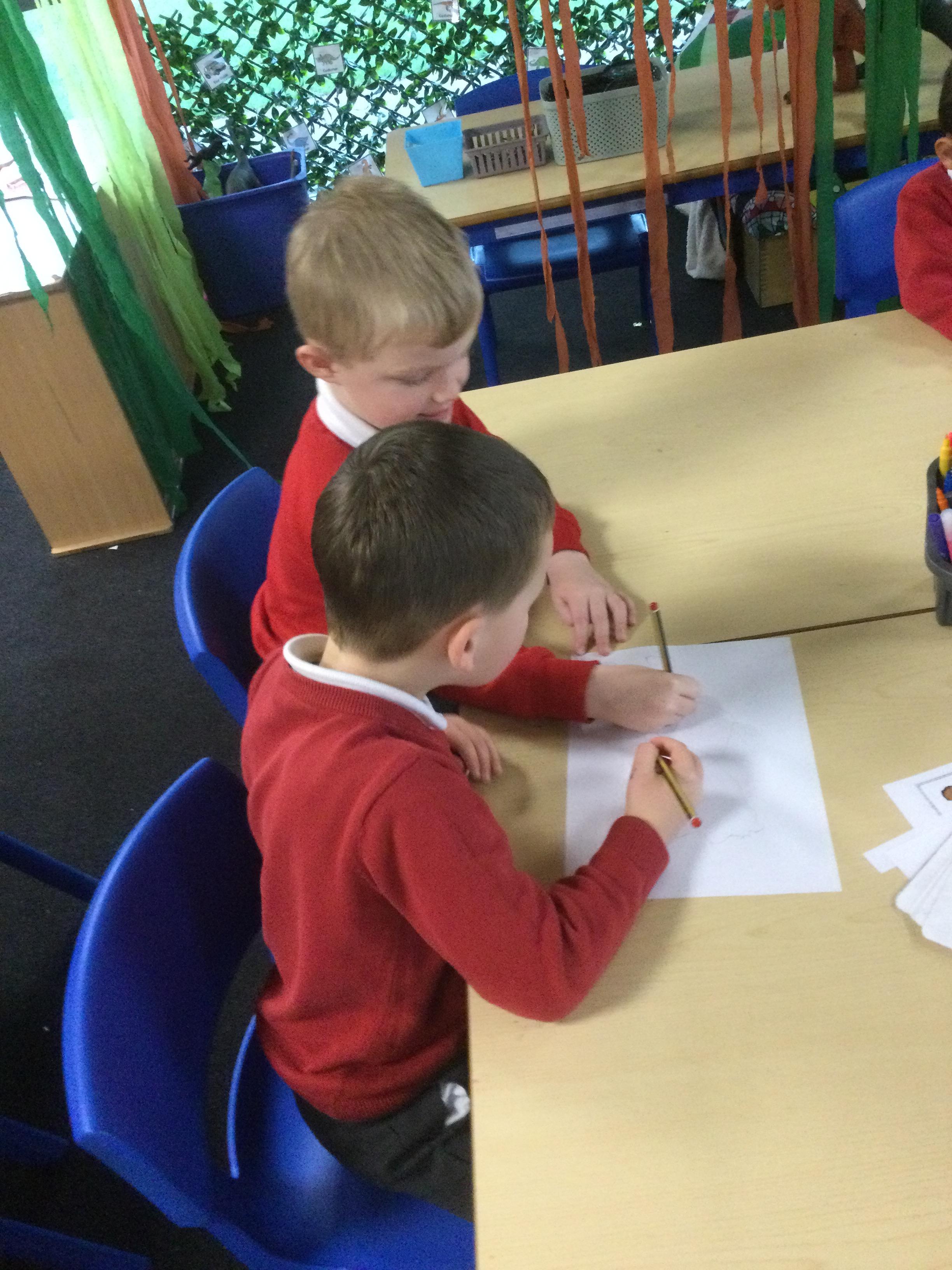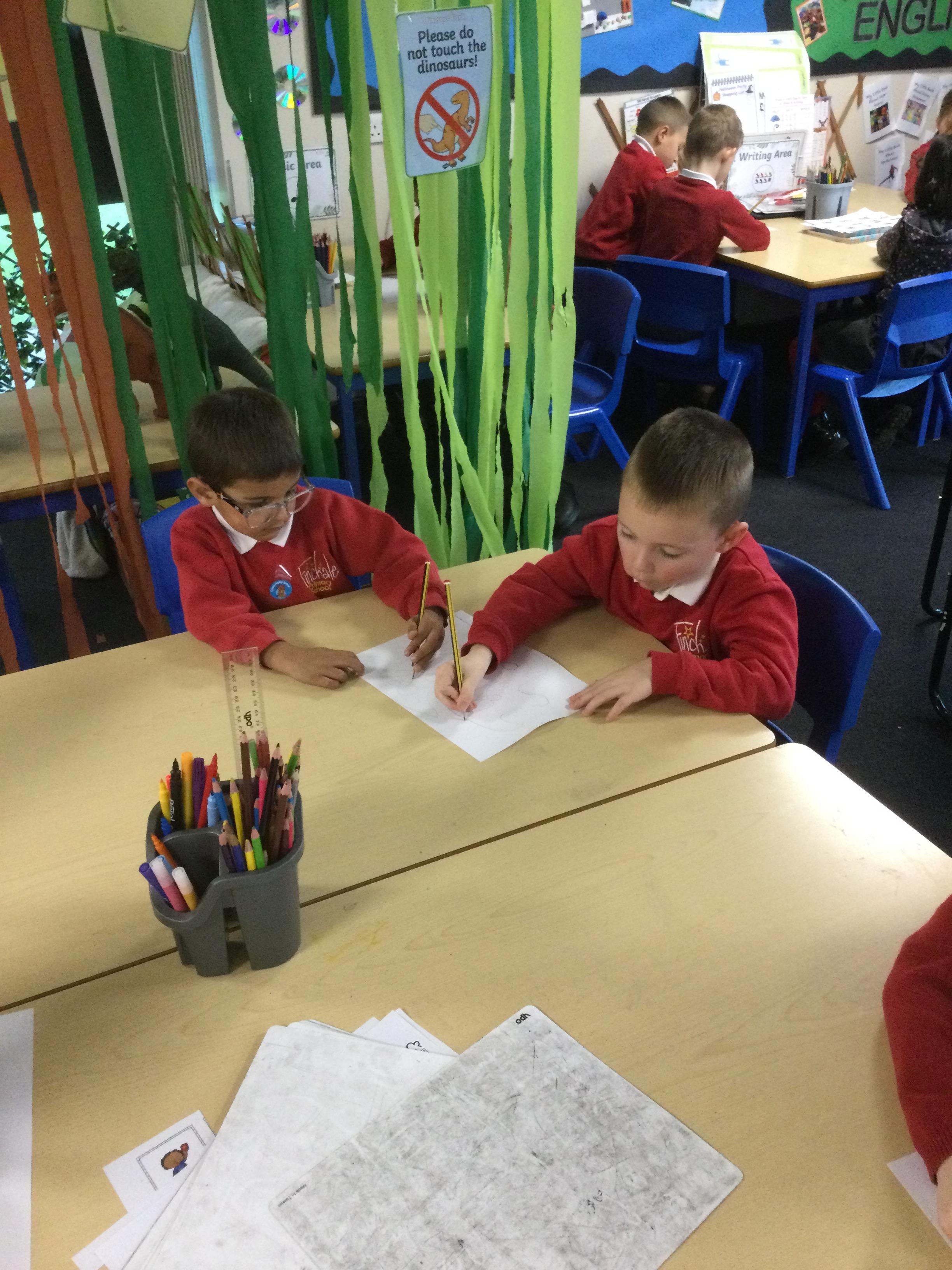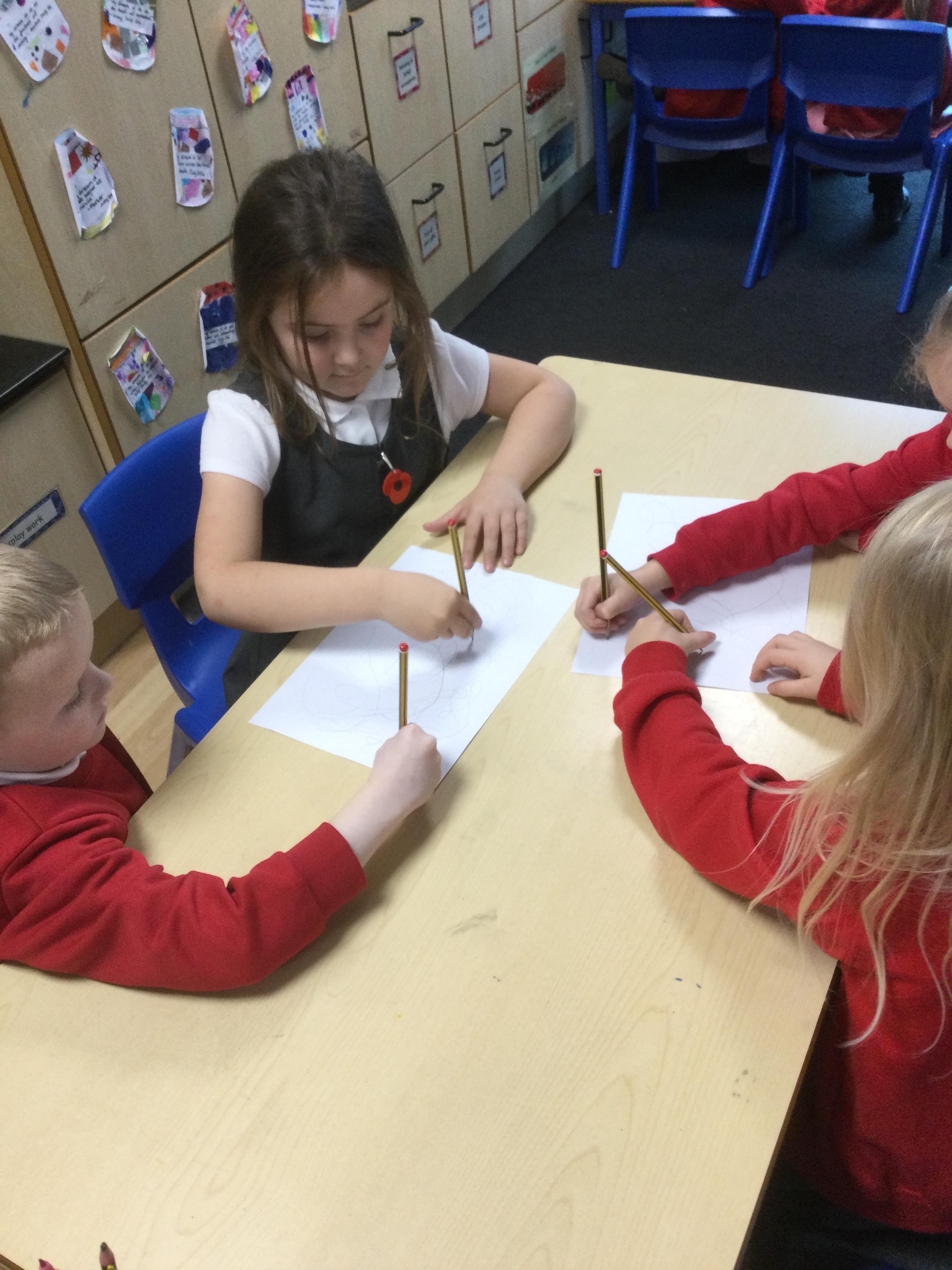 Our work will soon be displayed around school but here are a few photos of us doing this work.