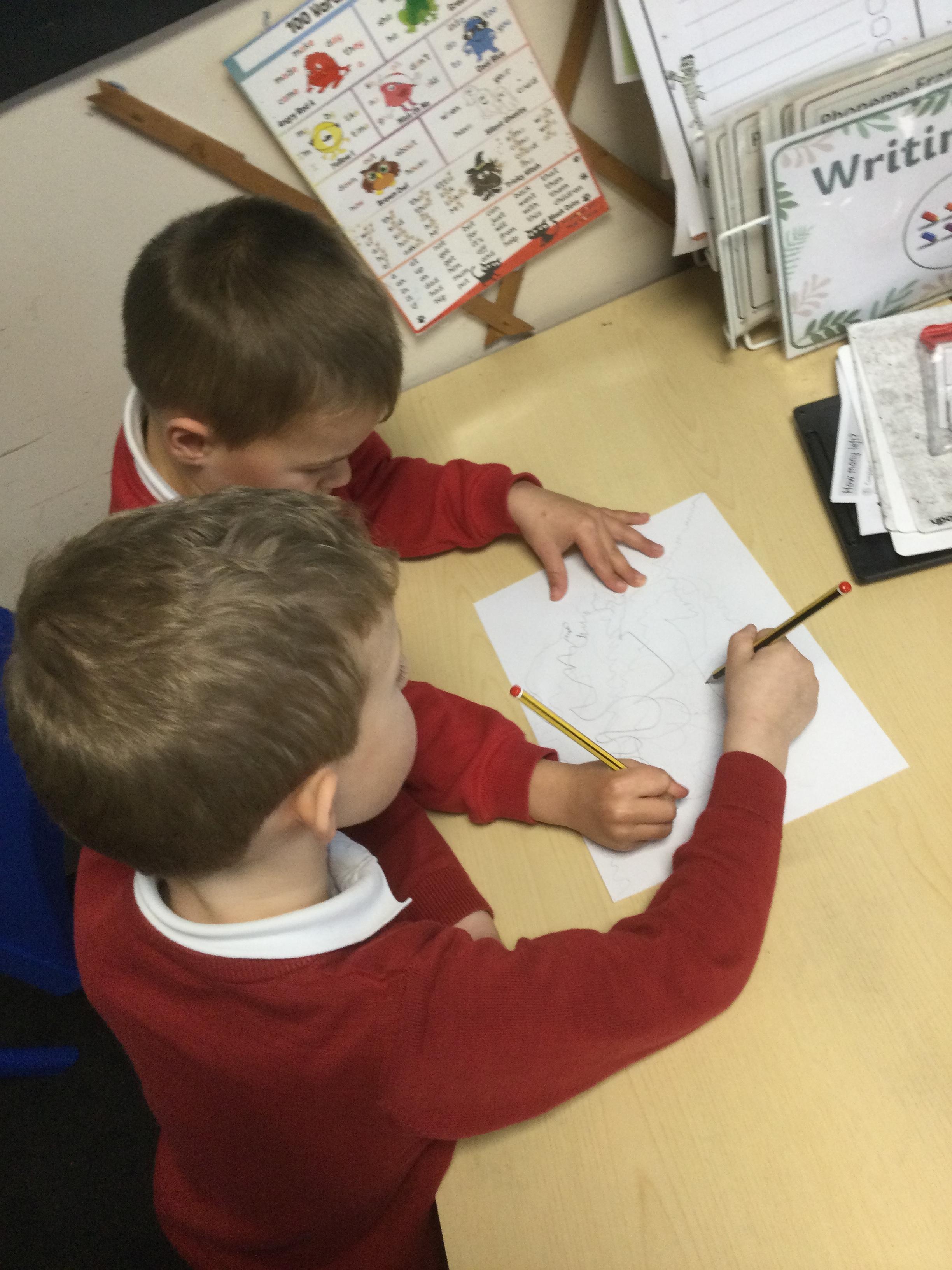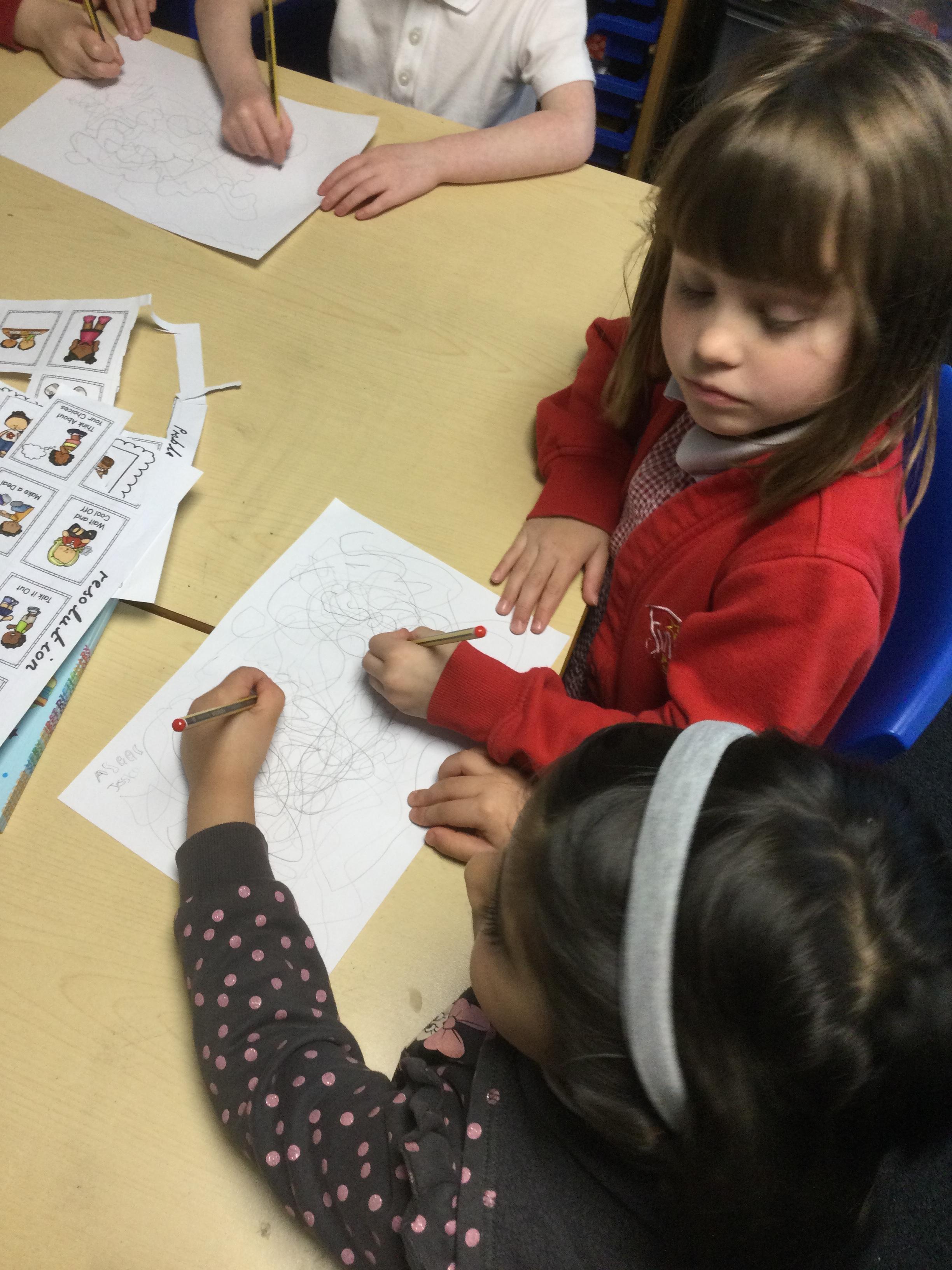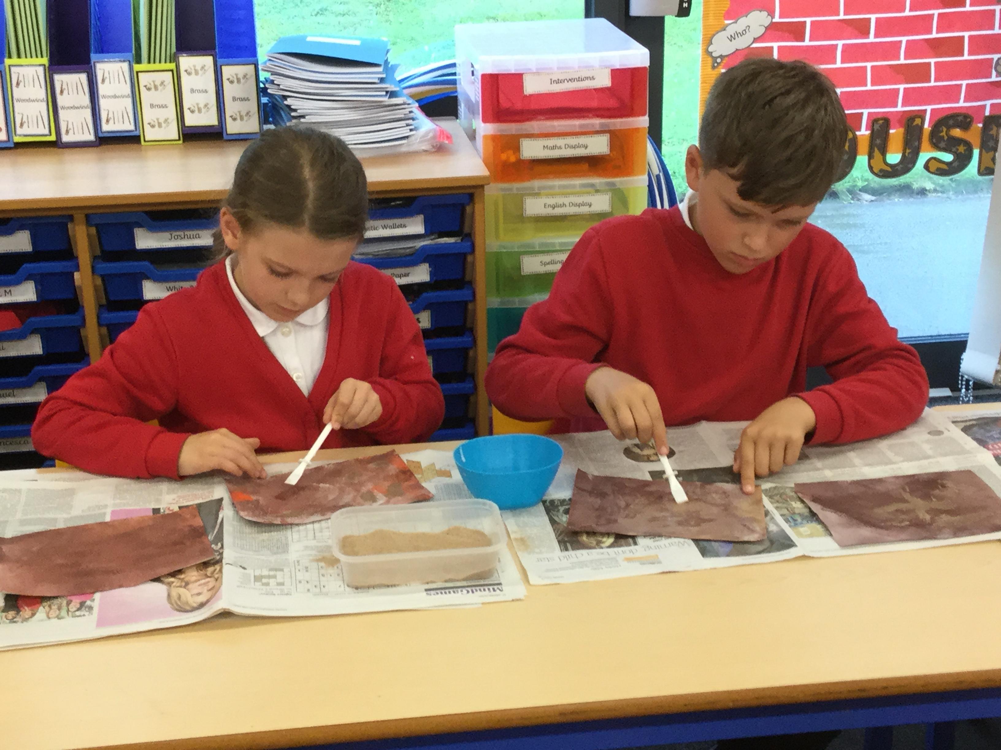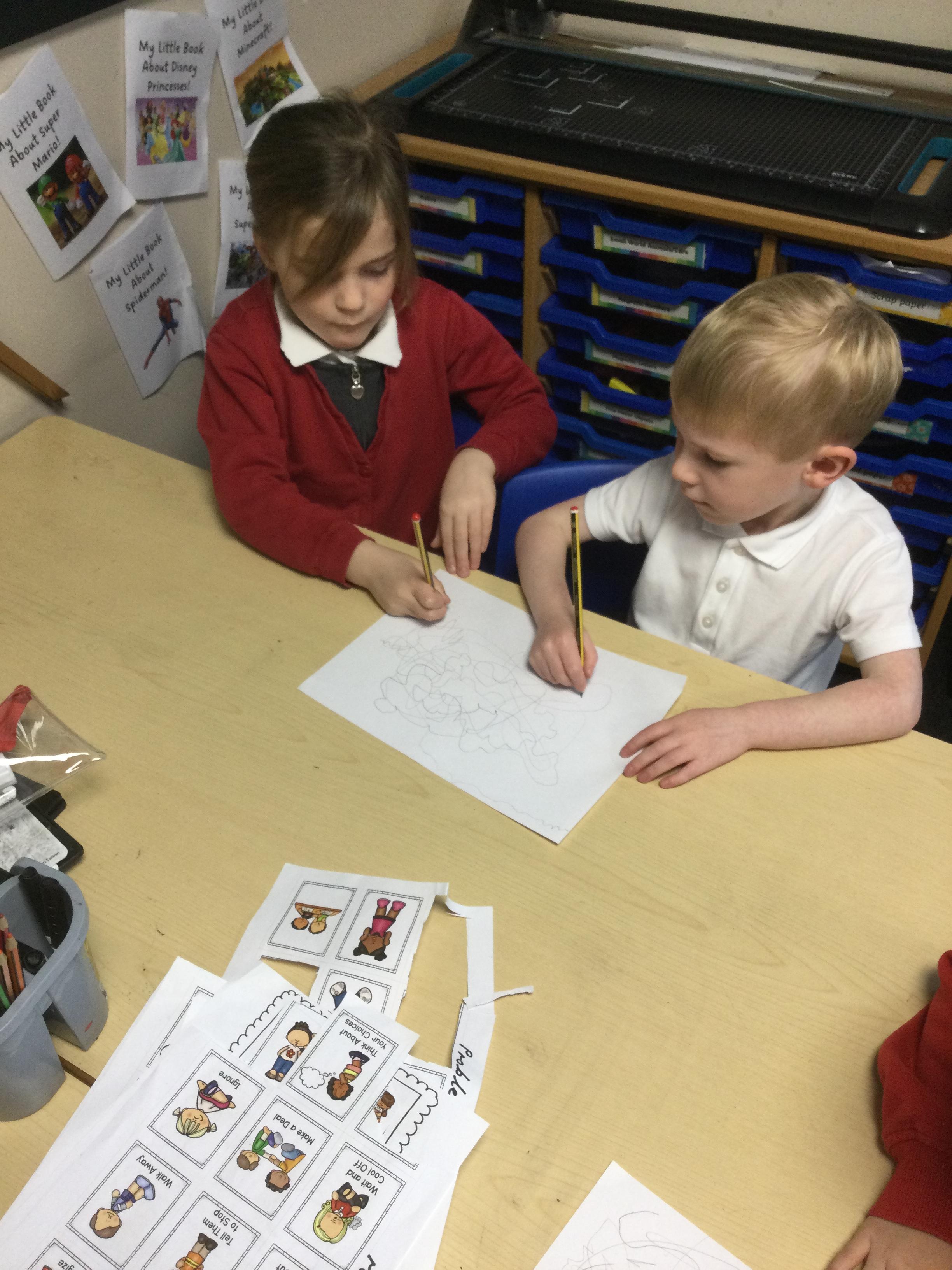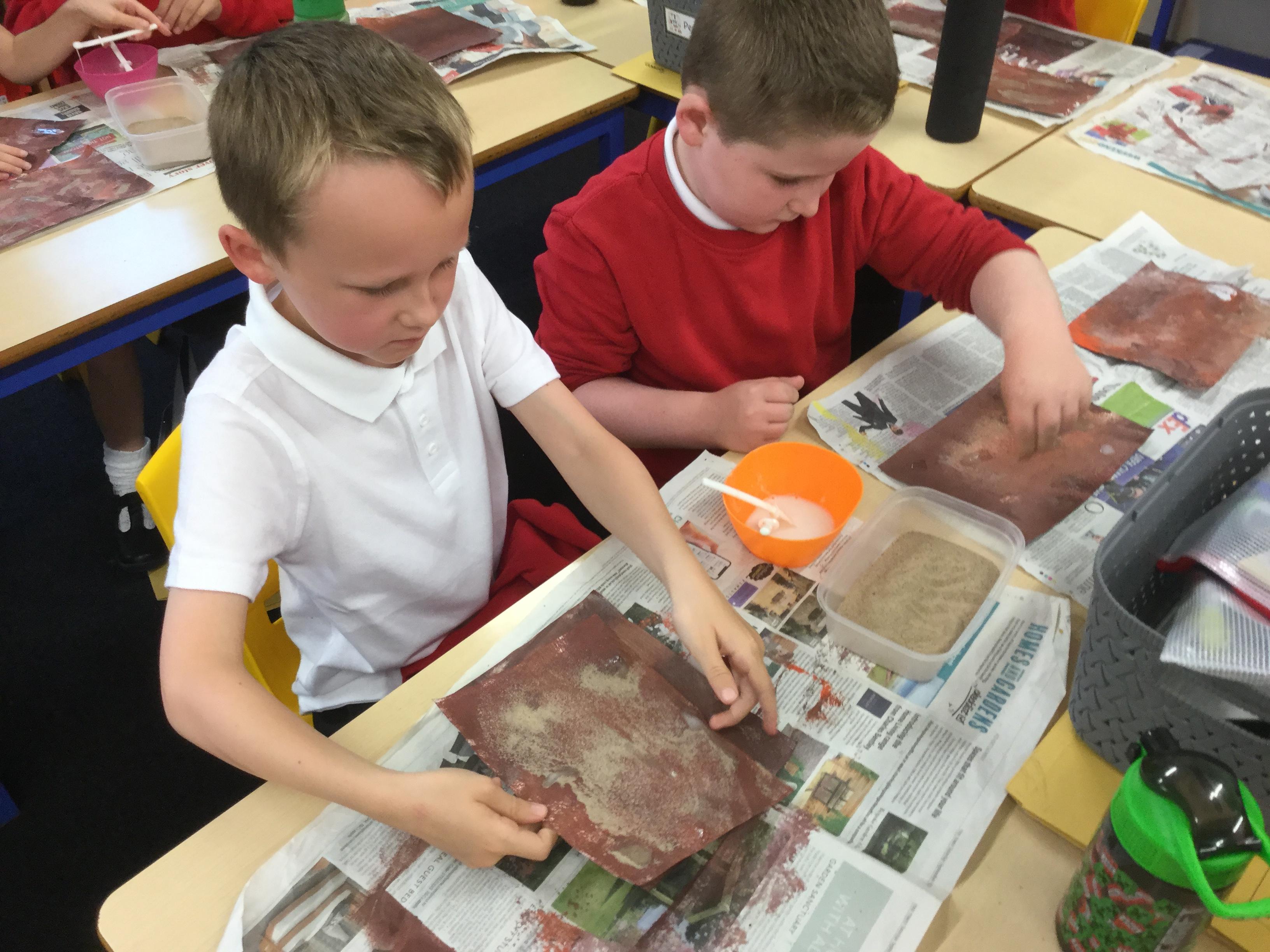 Our work will soon be displayed around school but here are a few photos of us doing this work.