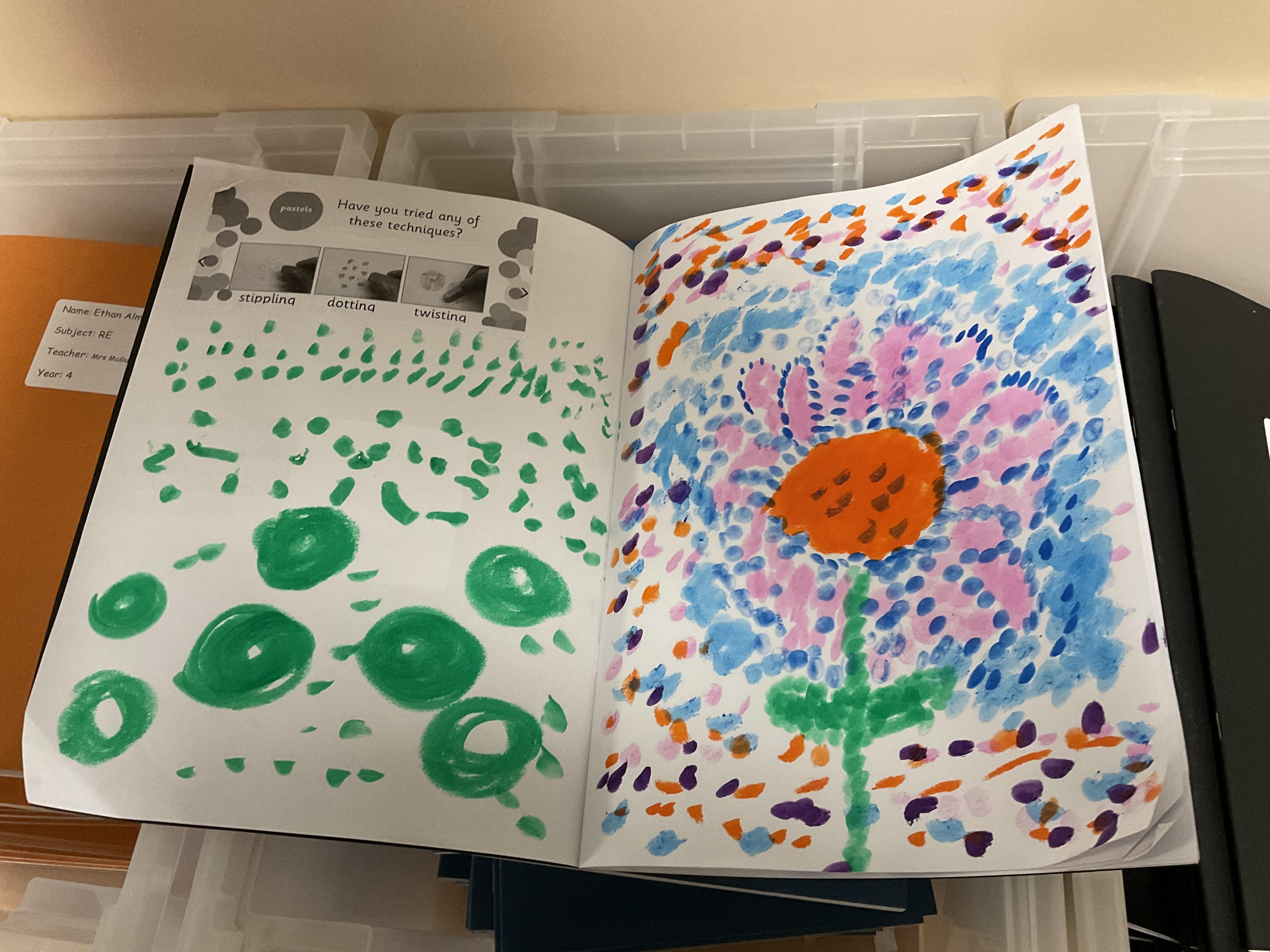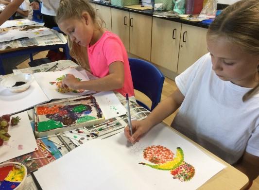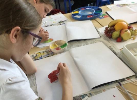 Year 6 studied pointillism and still life painting to create dotty paints of fruit.