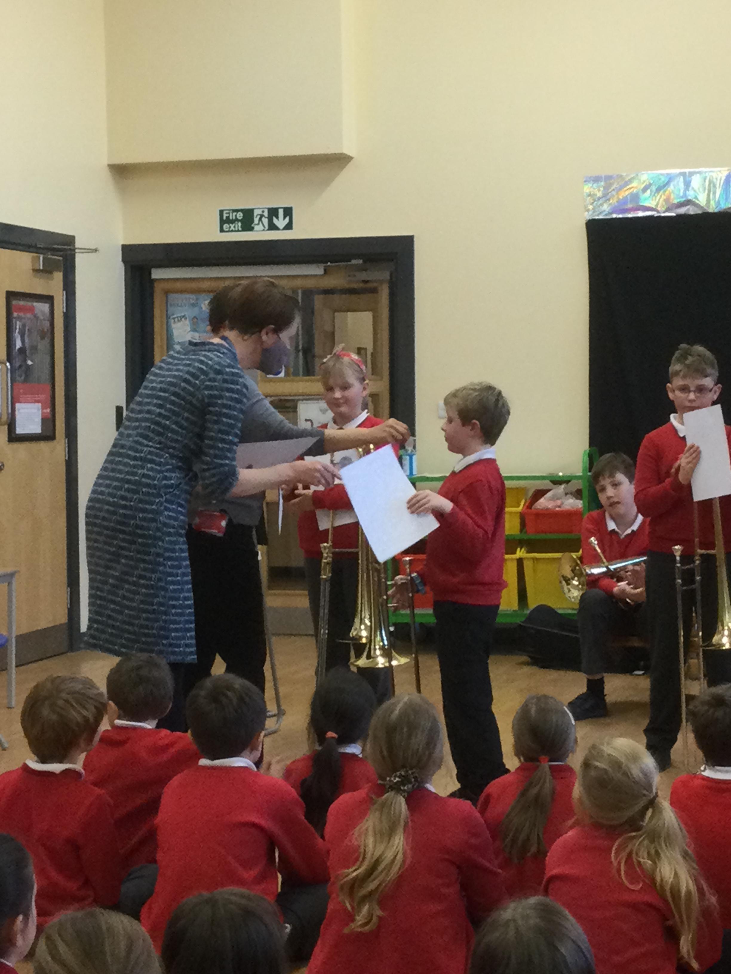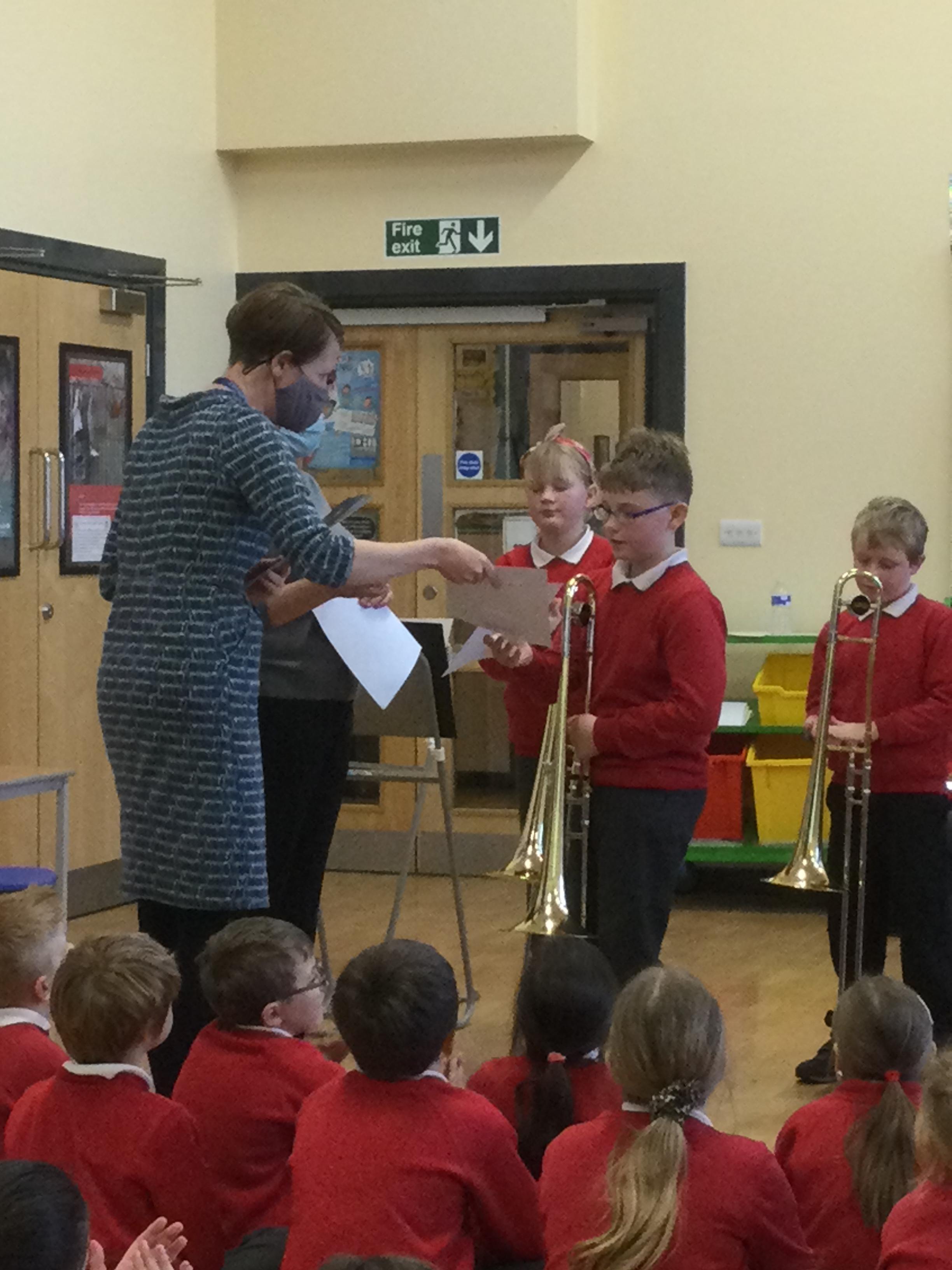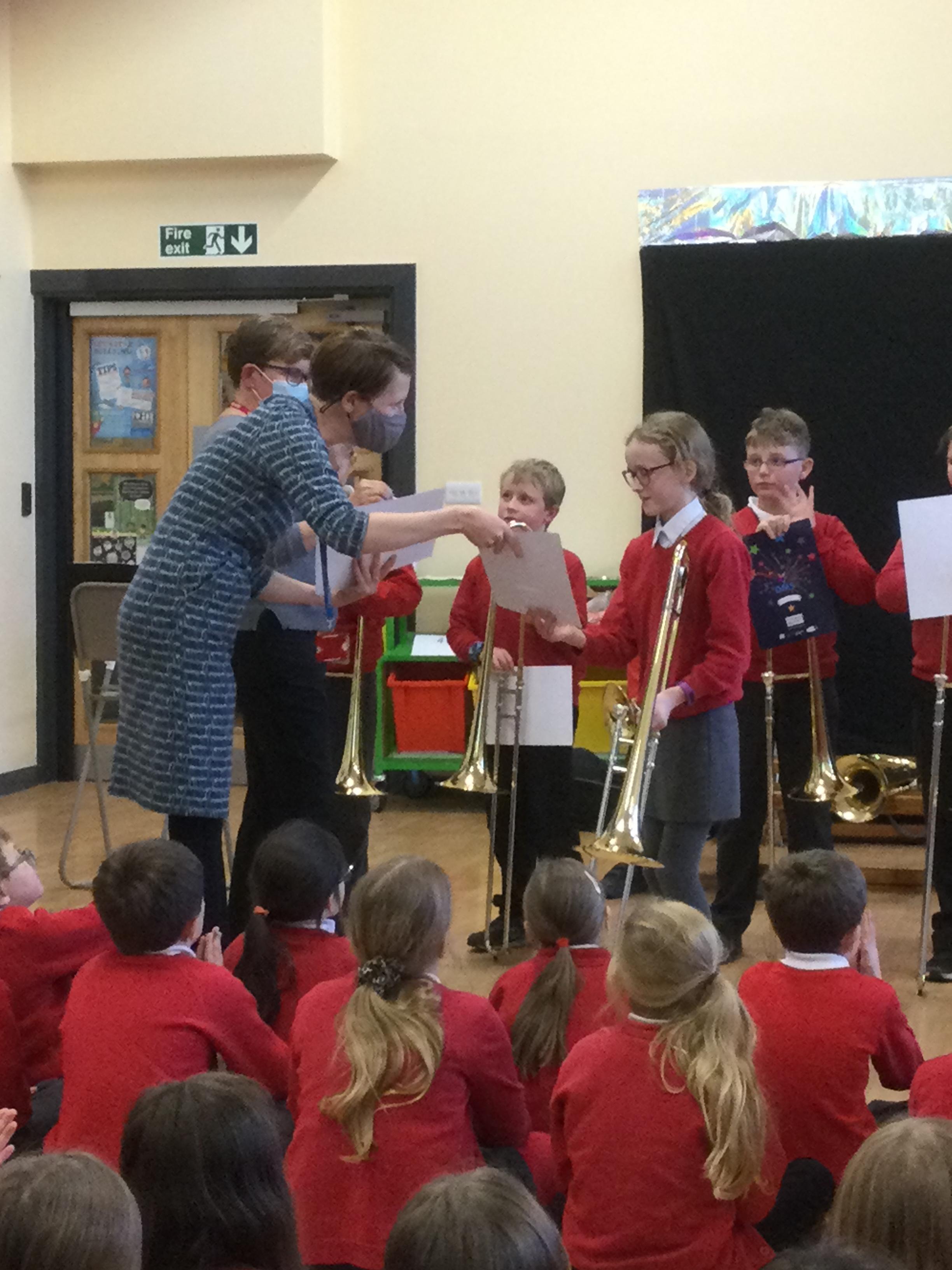 The children in Years 4 and 5 were awarded with their Durham Music Service Stars certificates, celebrating their hard work and achievement this year.