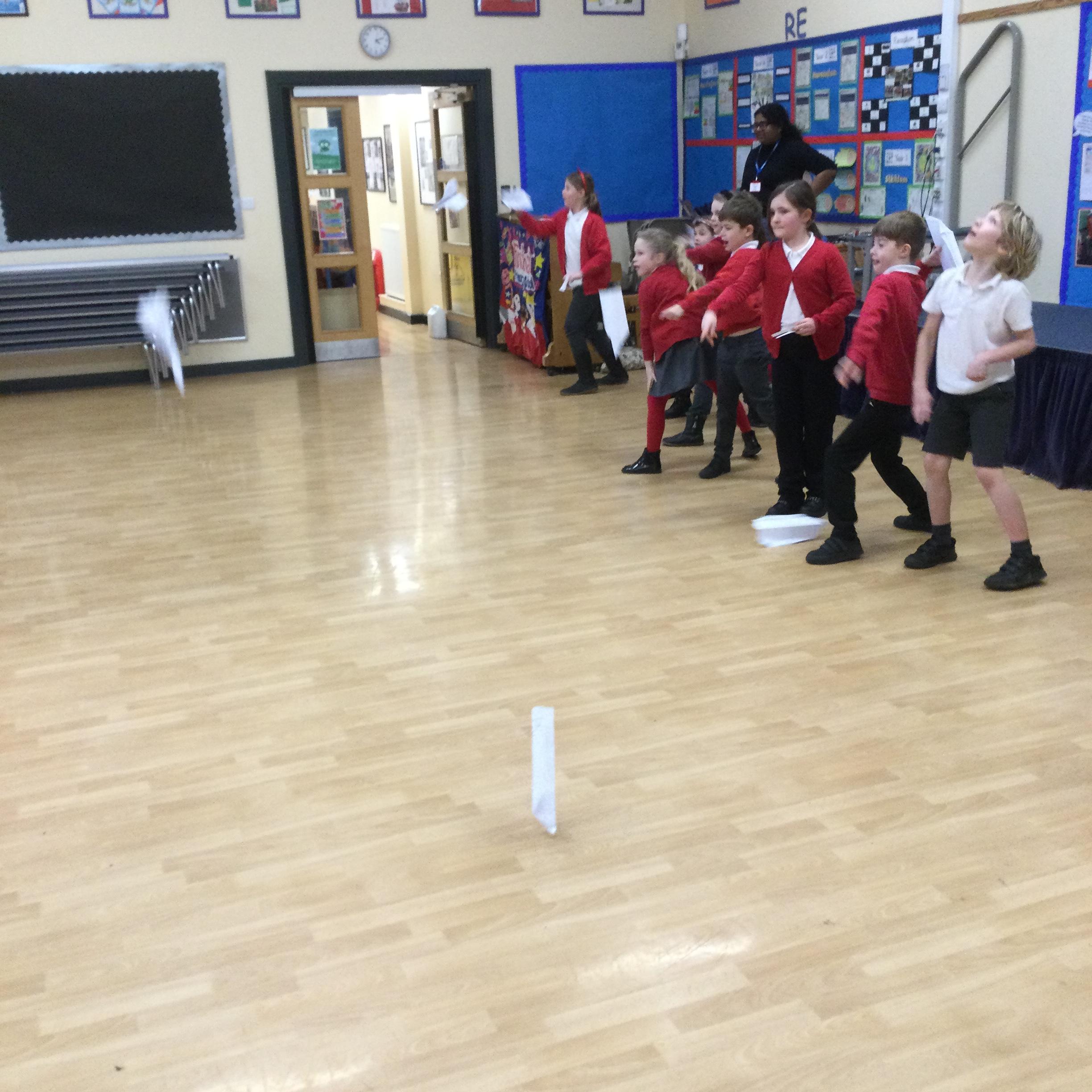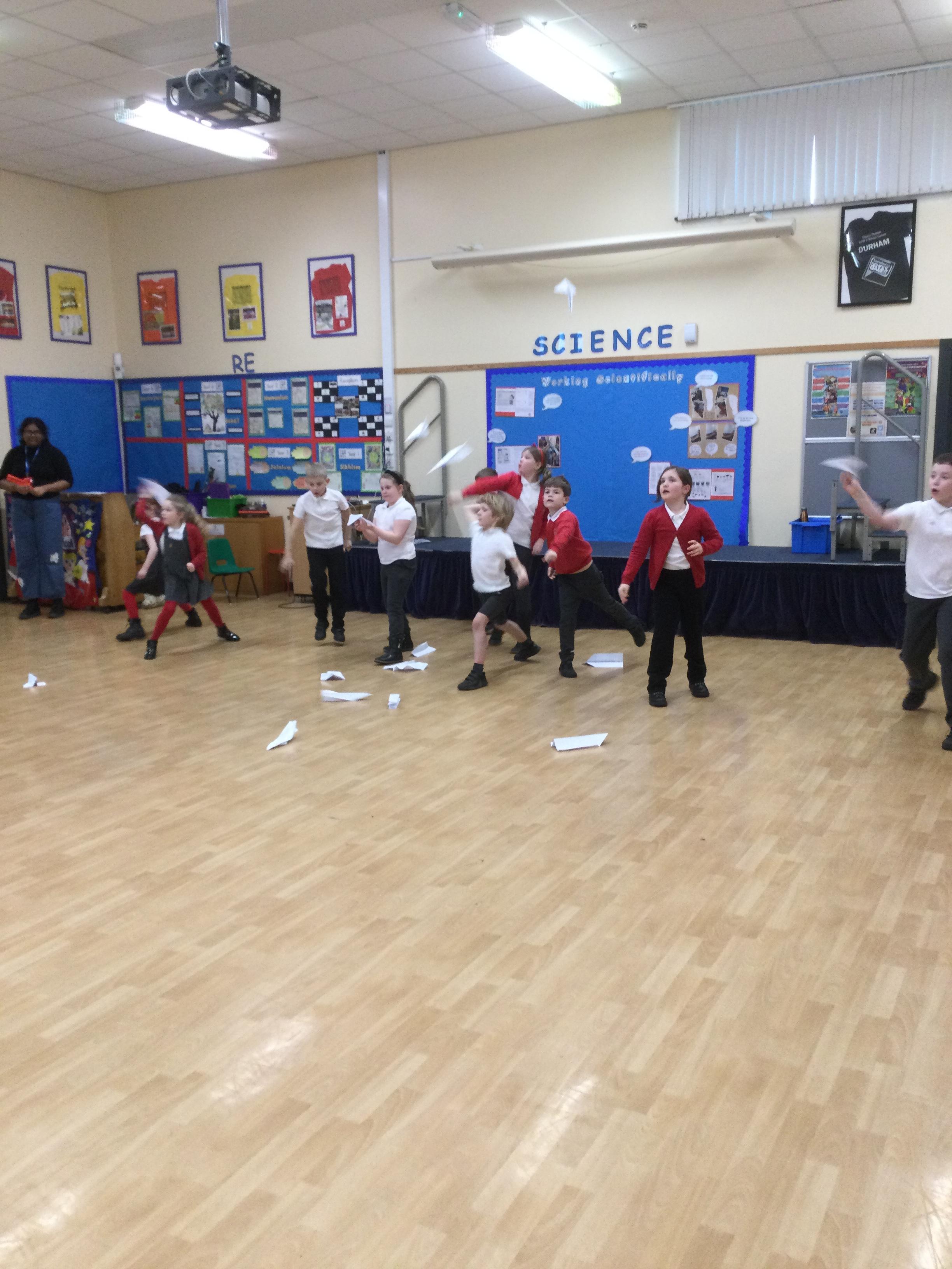 Year 3 and 4 Science Club- Making paper airplanes and thinking about the words streamline, air resistance and friction.