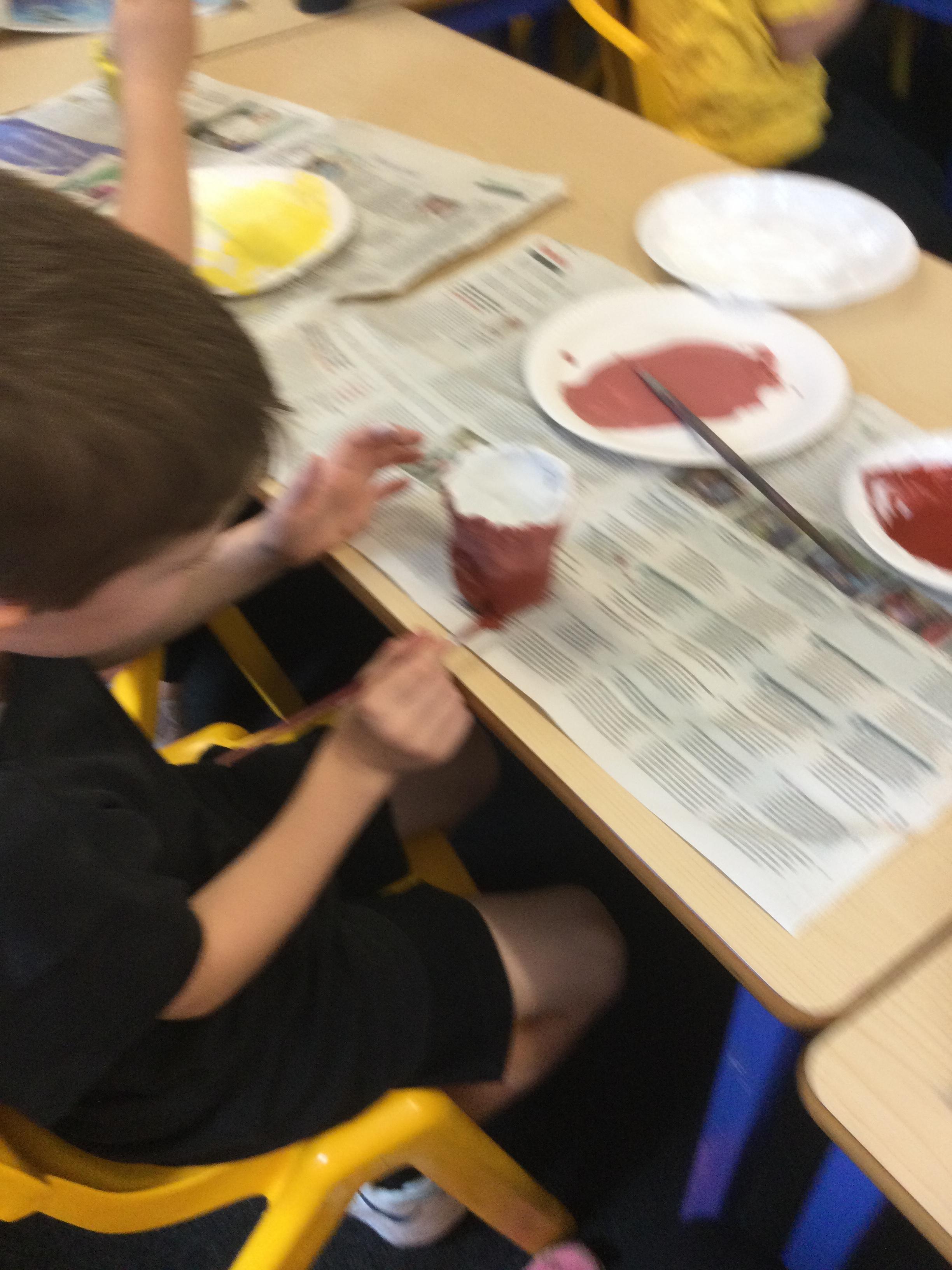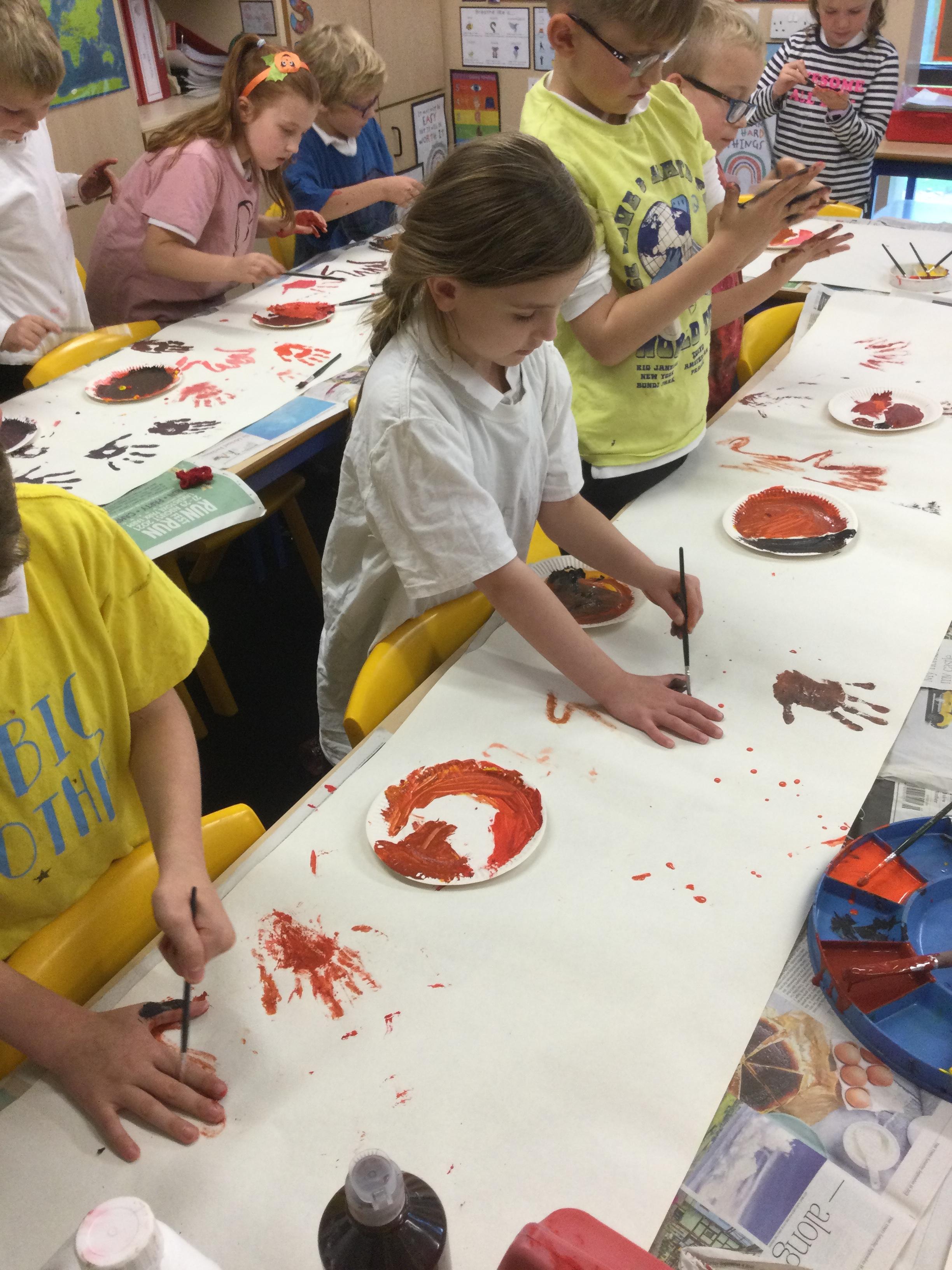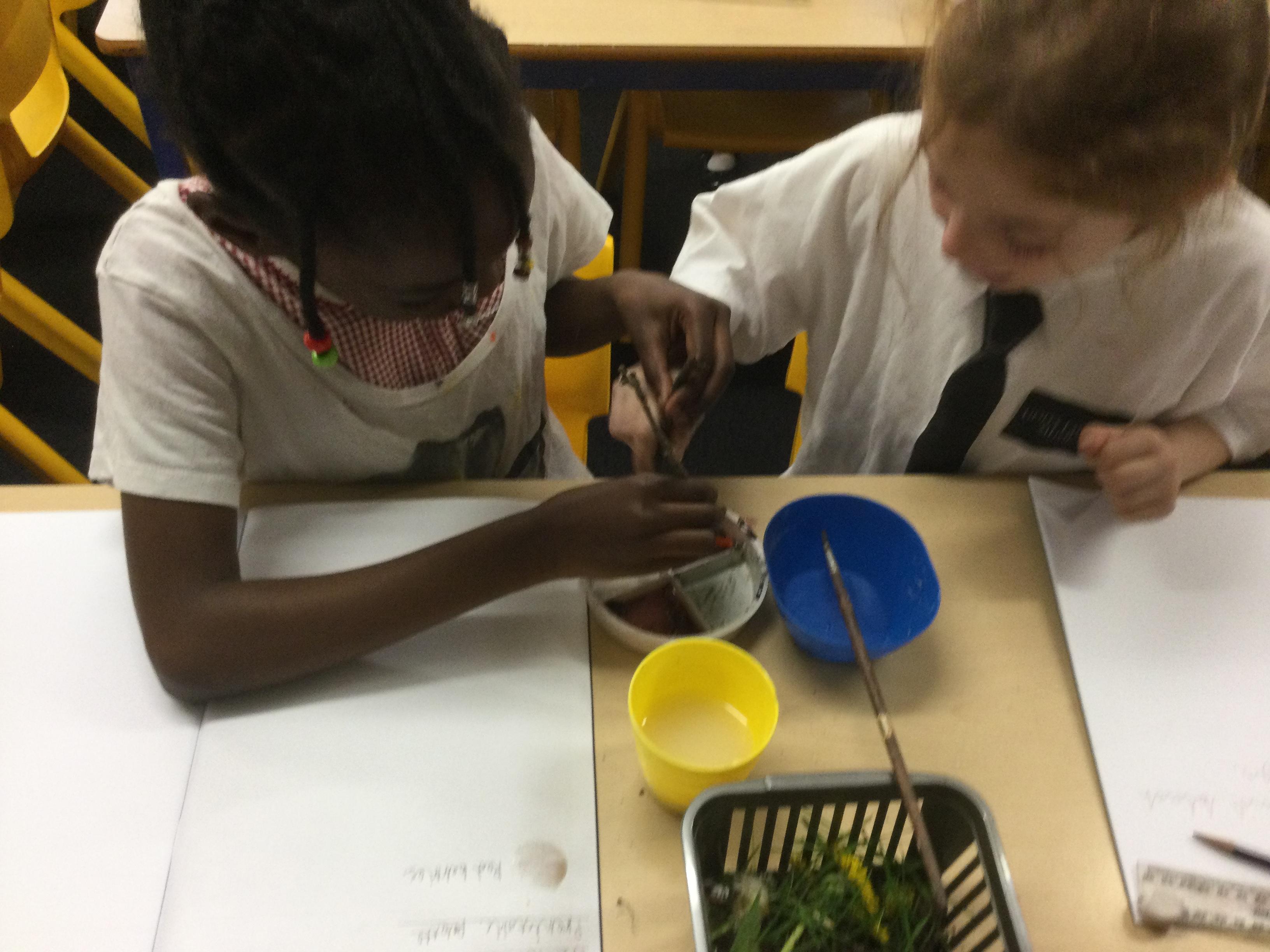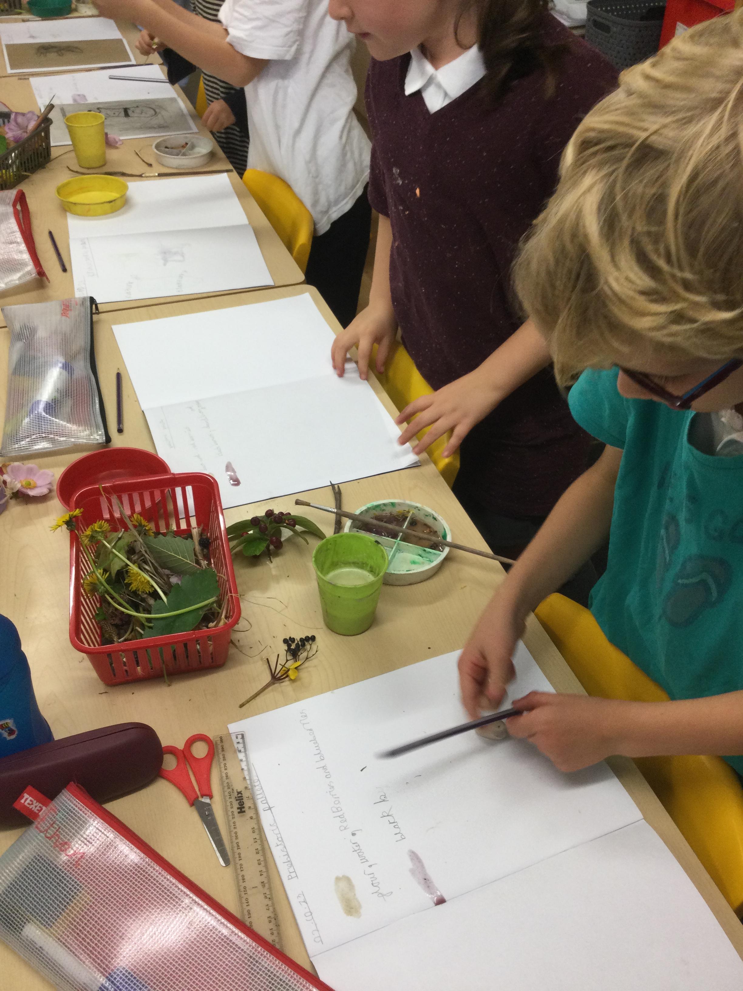 We became gatherers from the Stone Age and created our own paint with things we could find around school