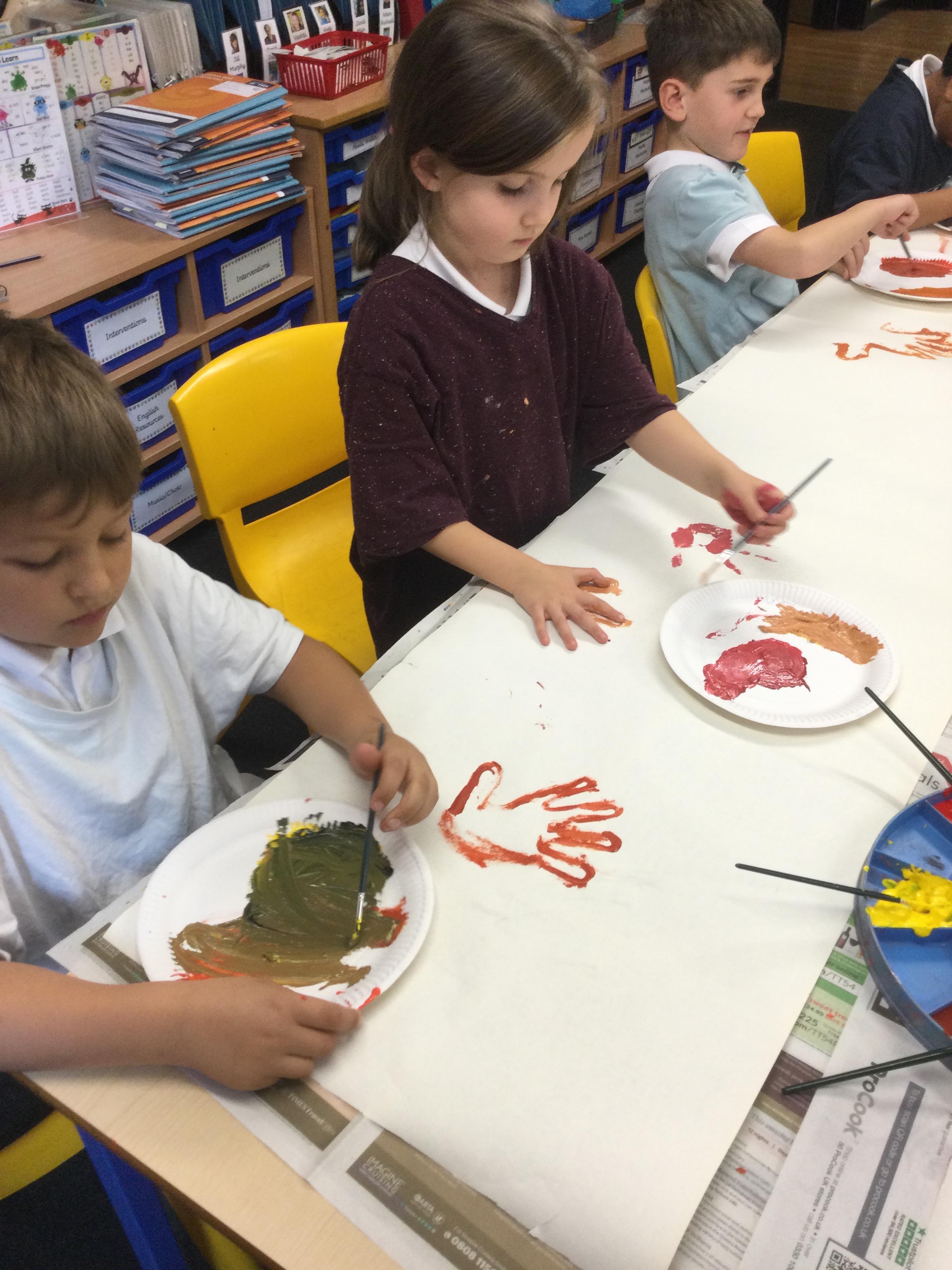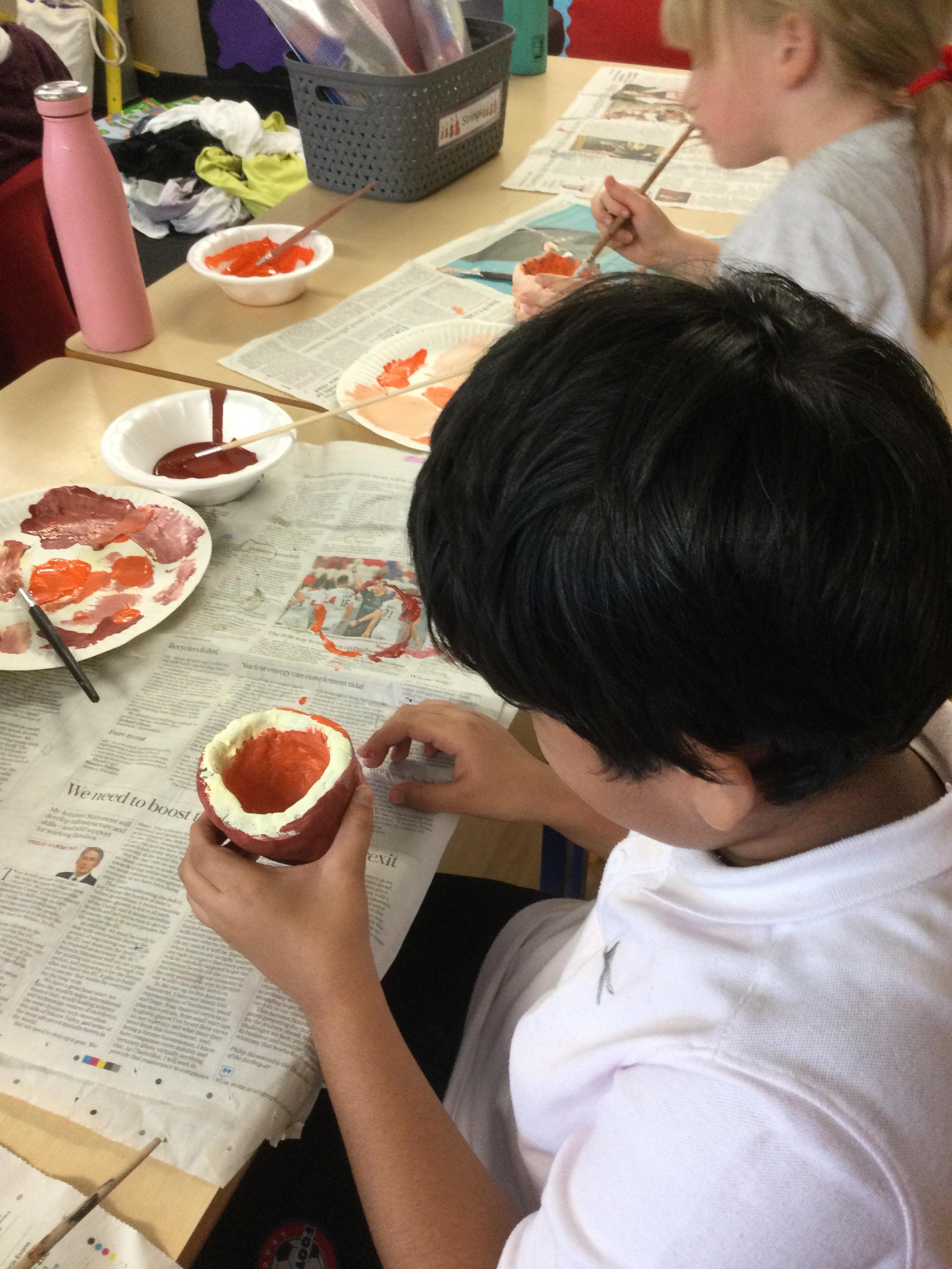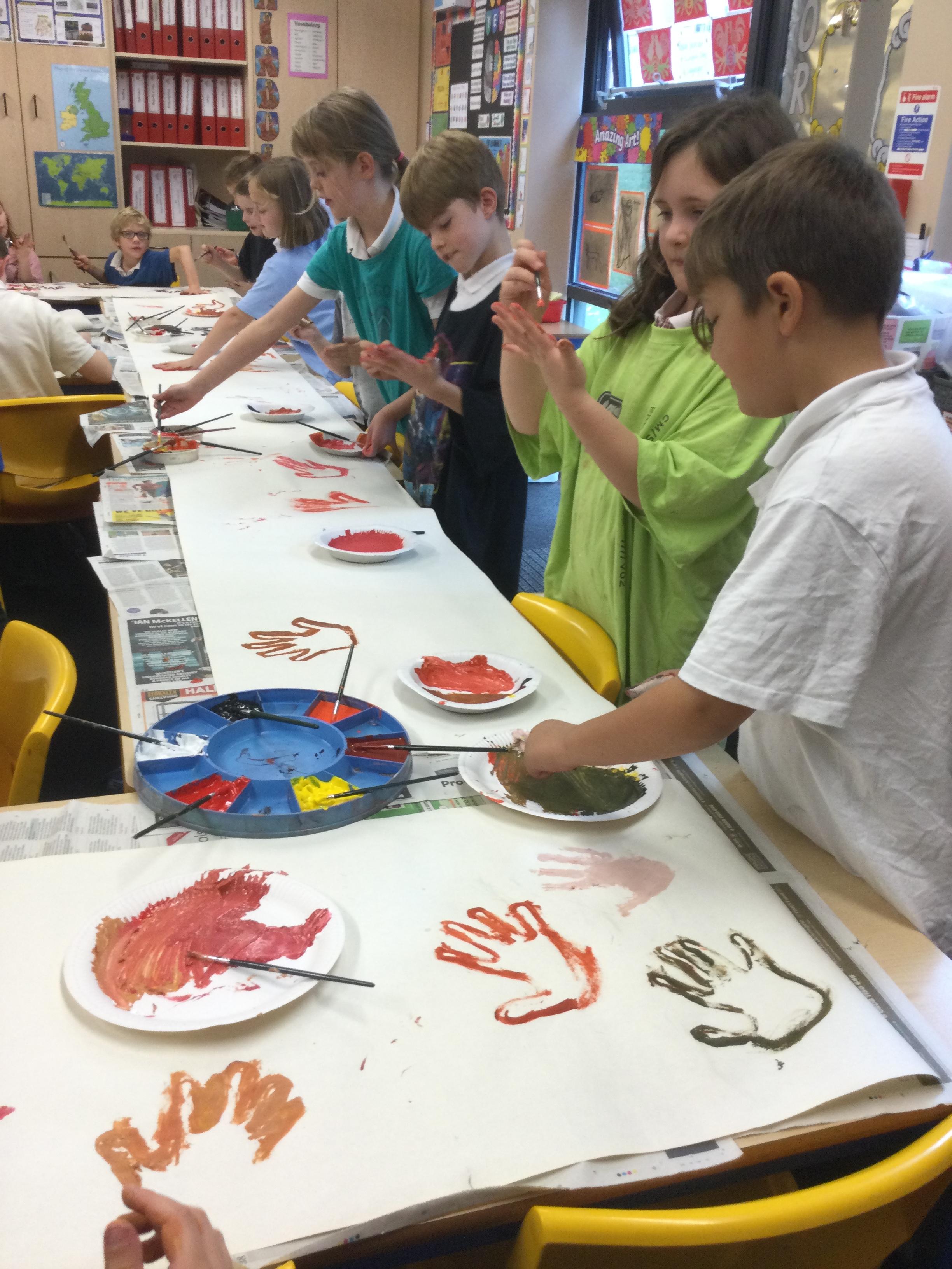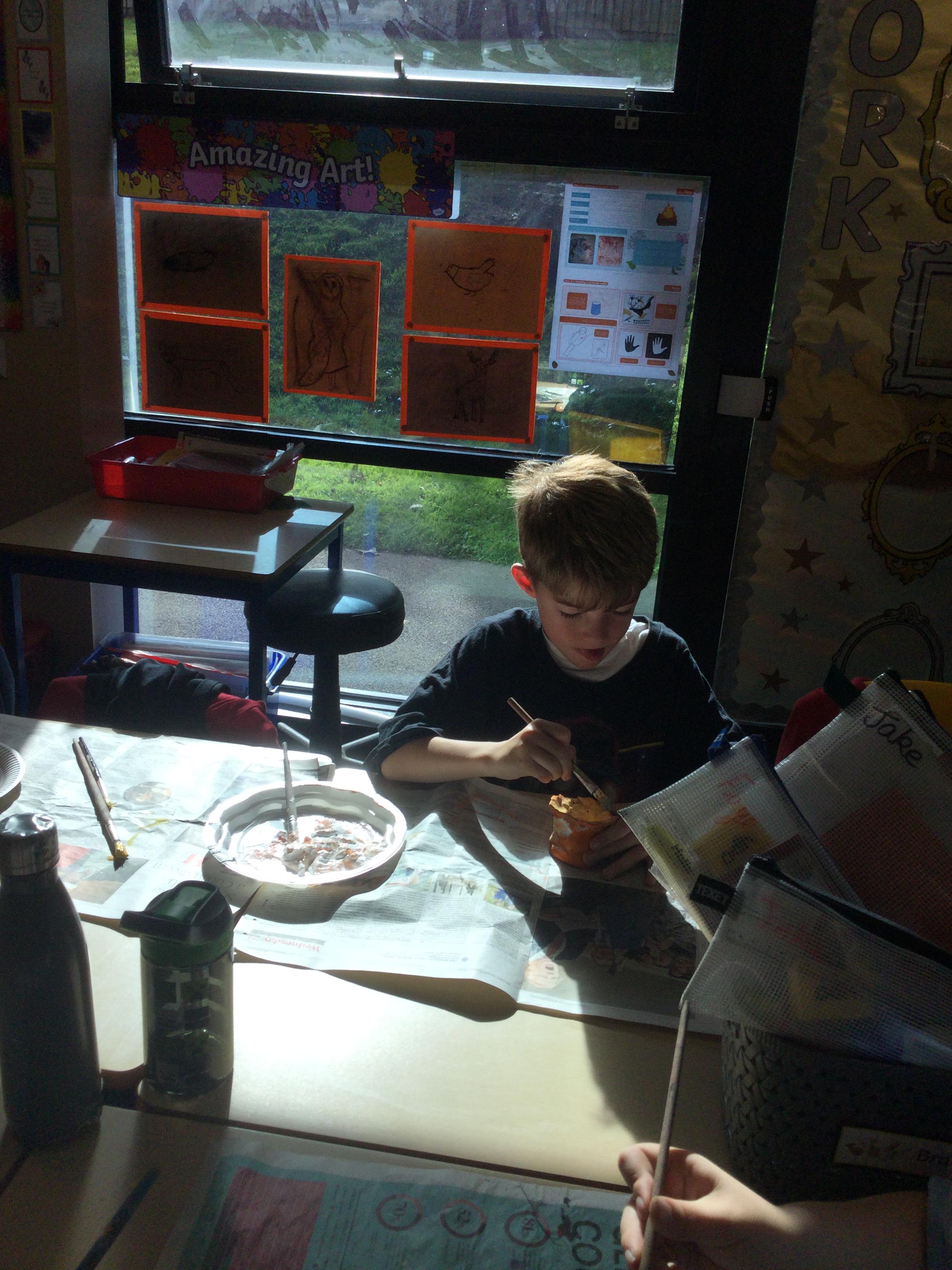 We became gatherers from the Stone Age and created our own paint with things we could find around school