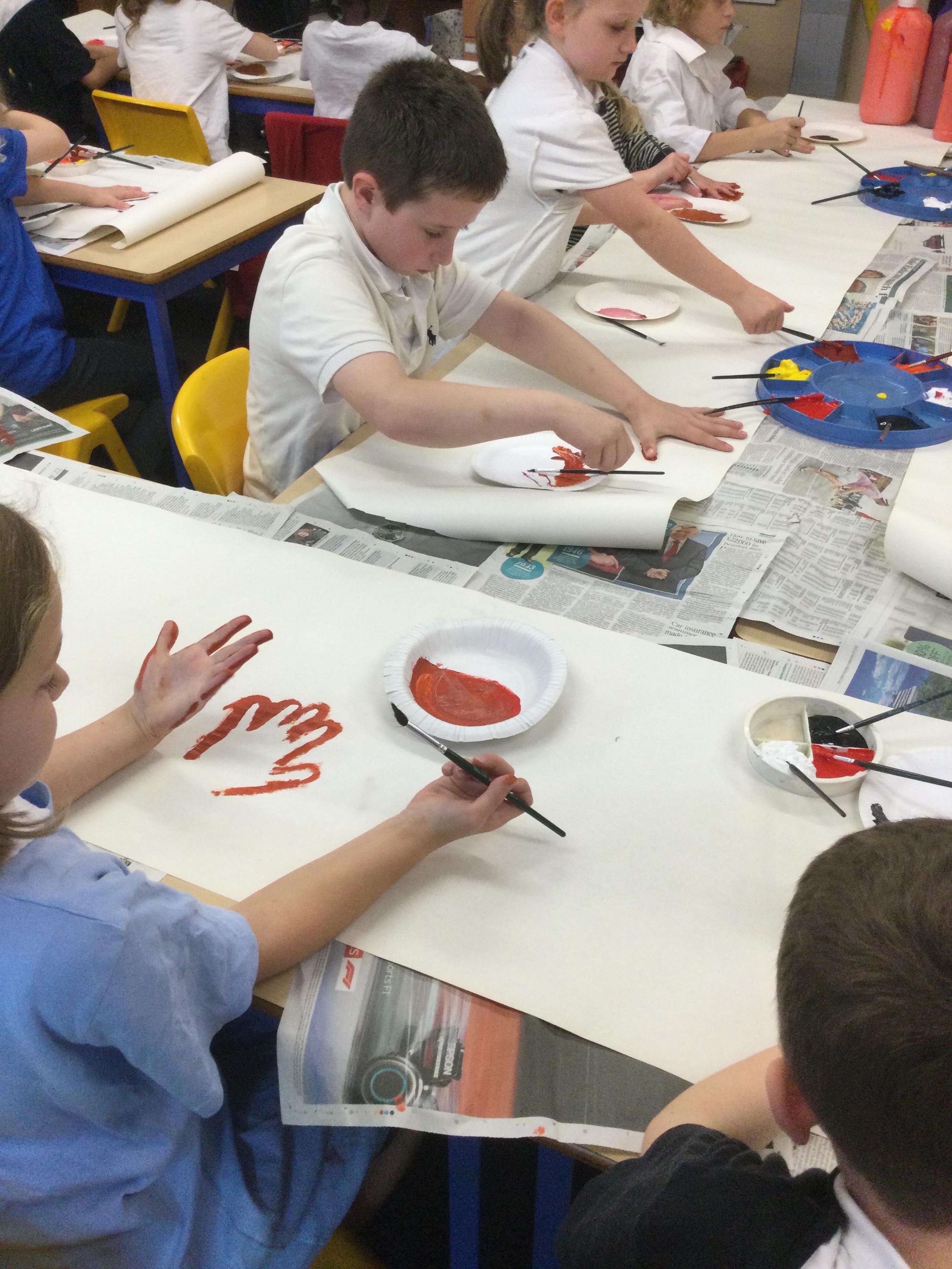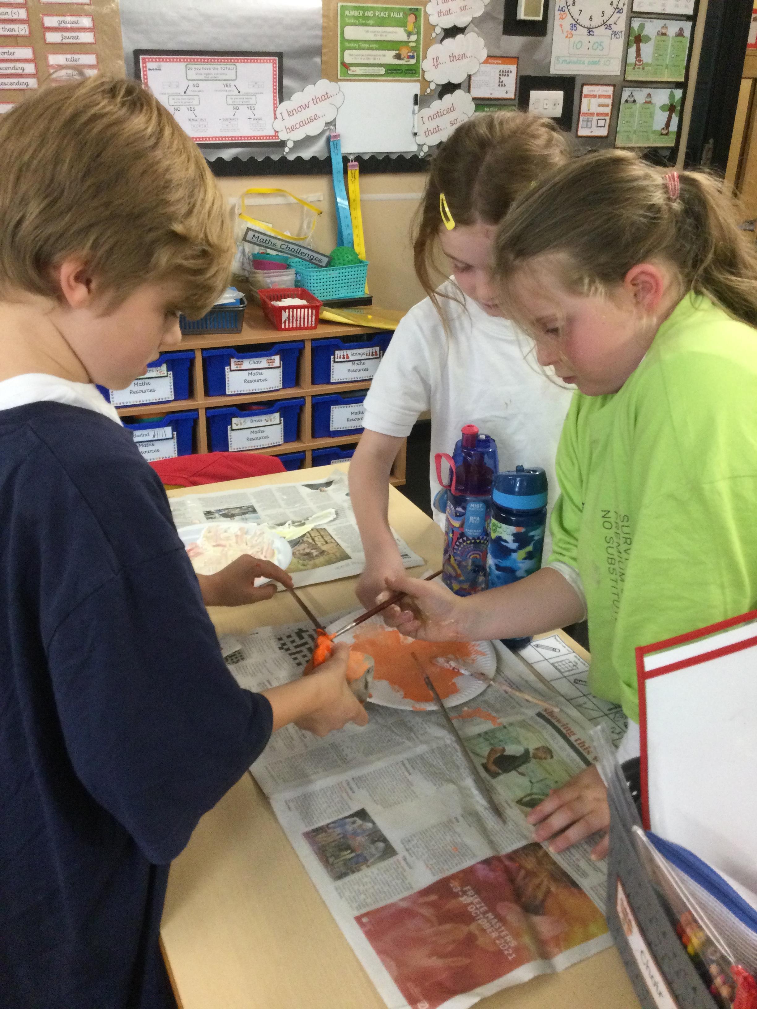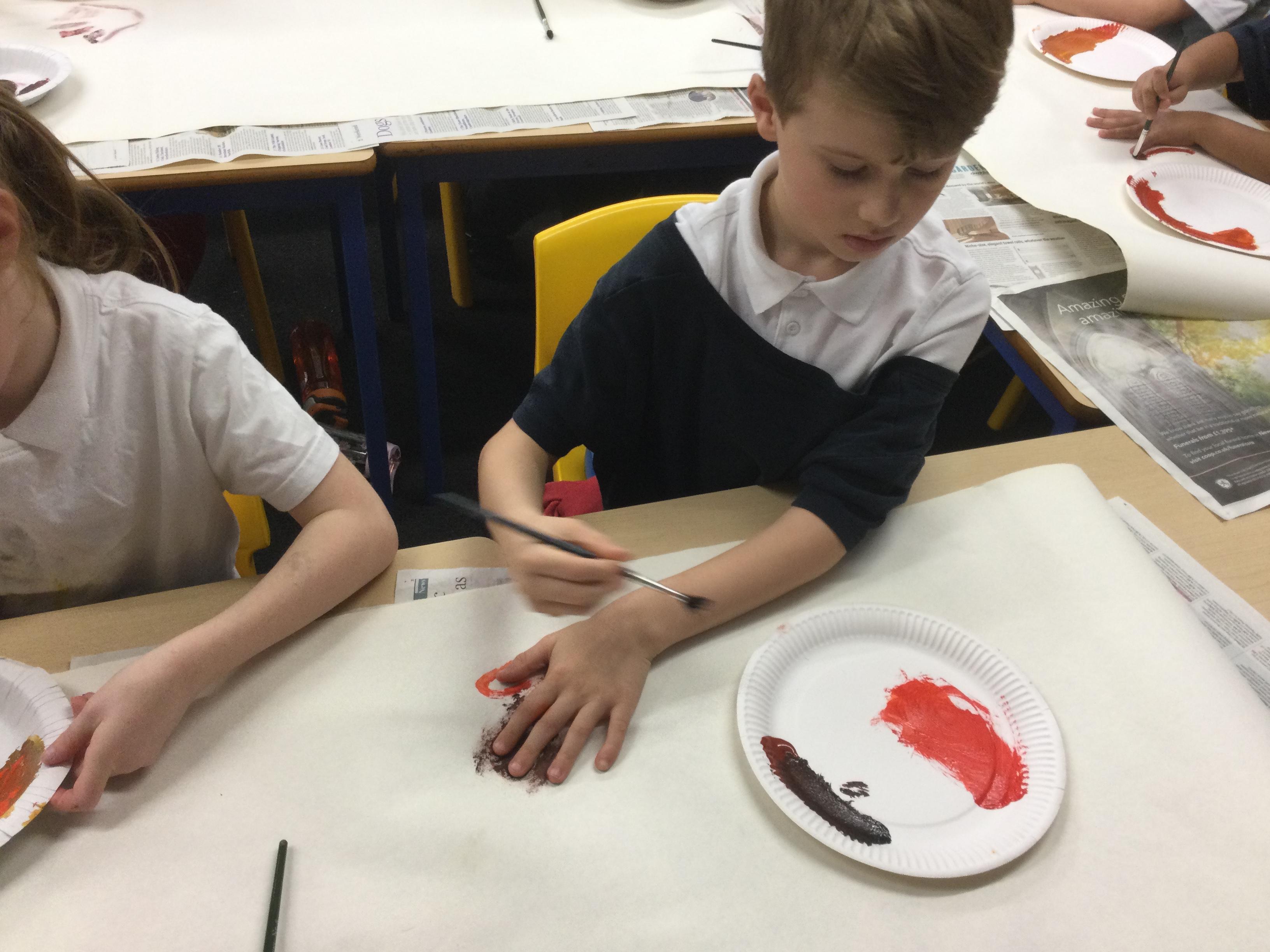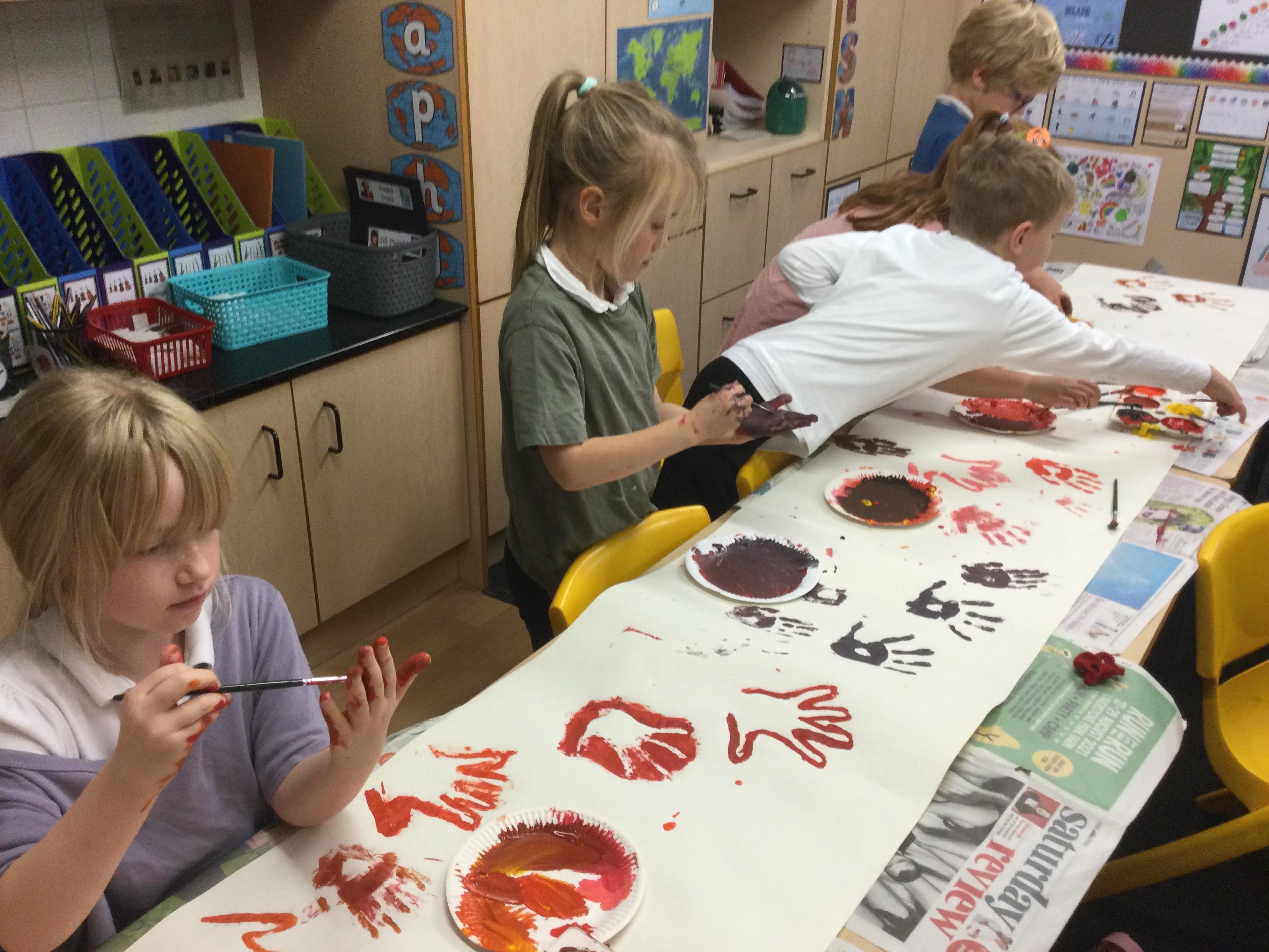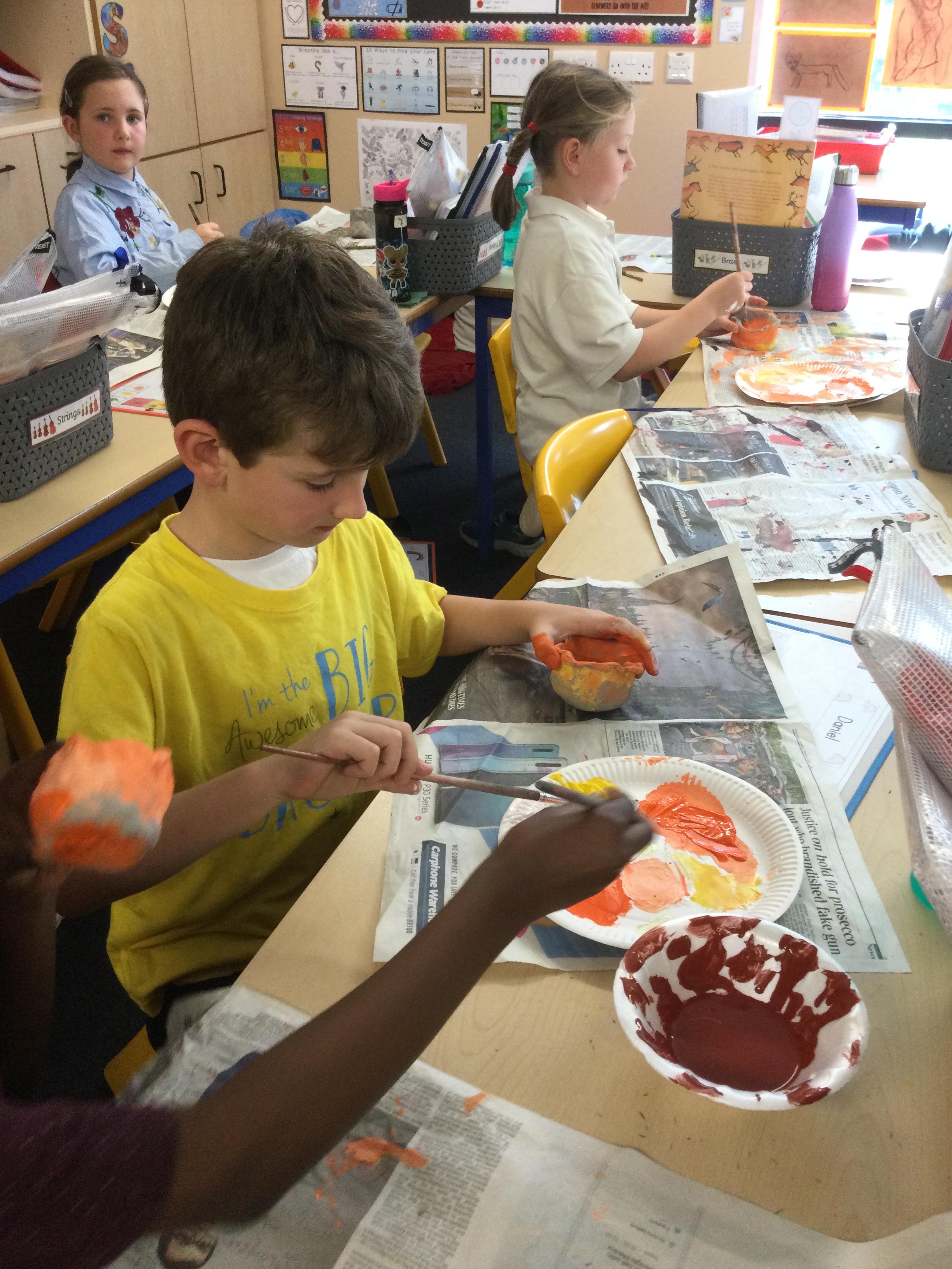 We became gatherers from the Stone Age and created our own paint with things we could find around school