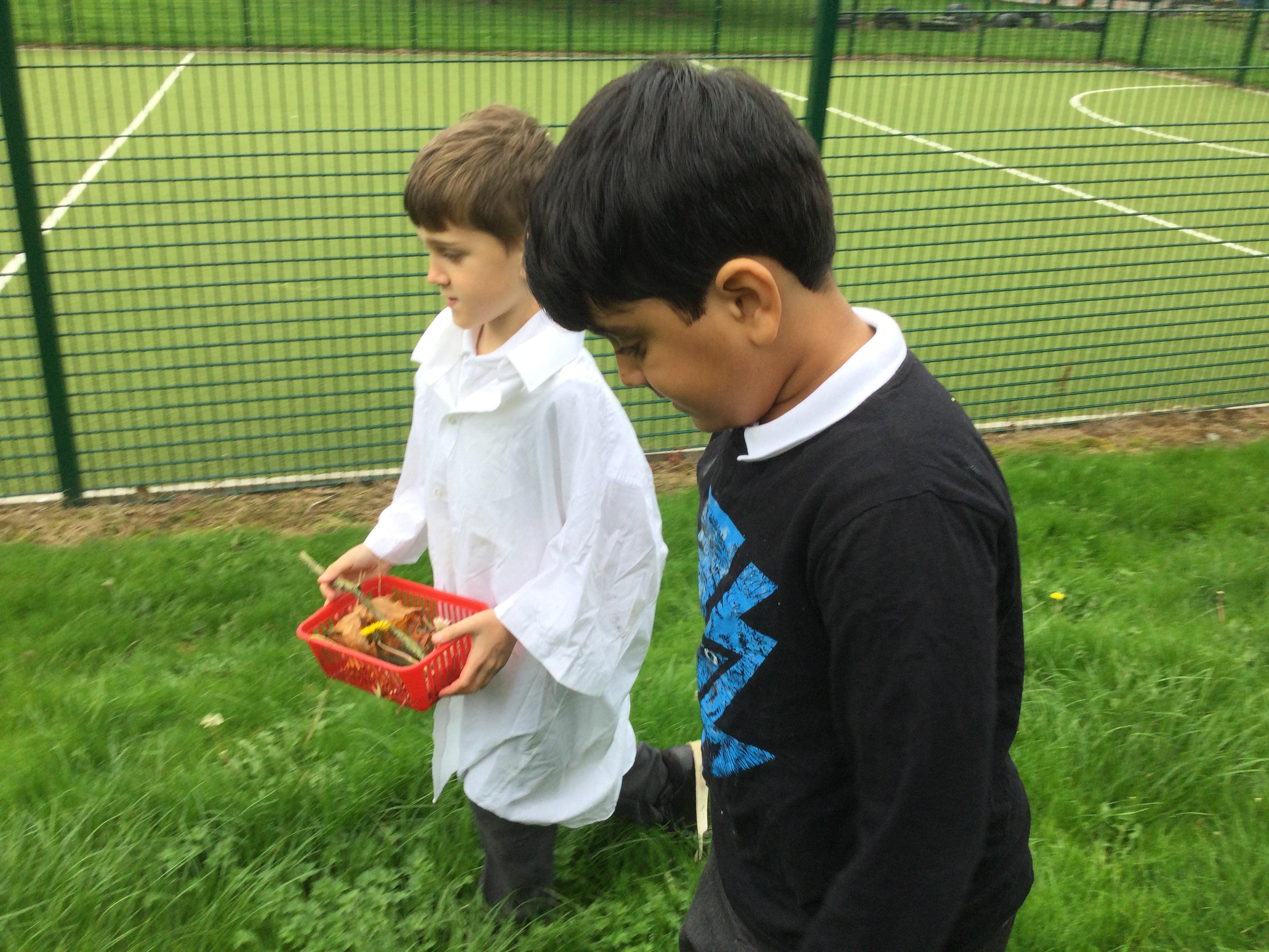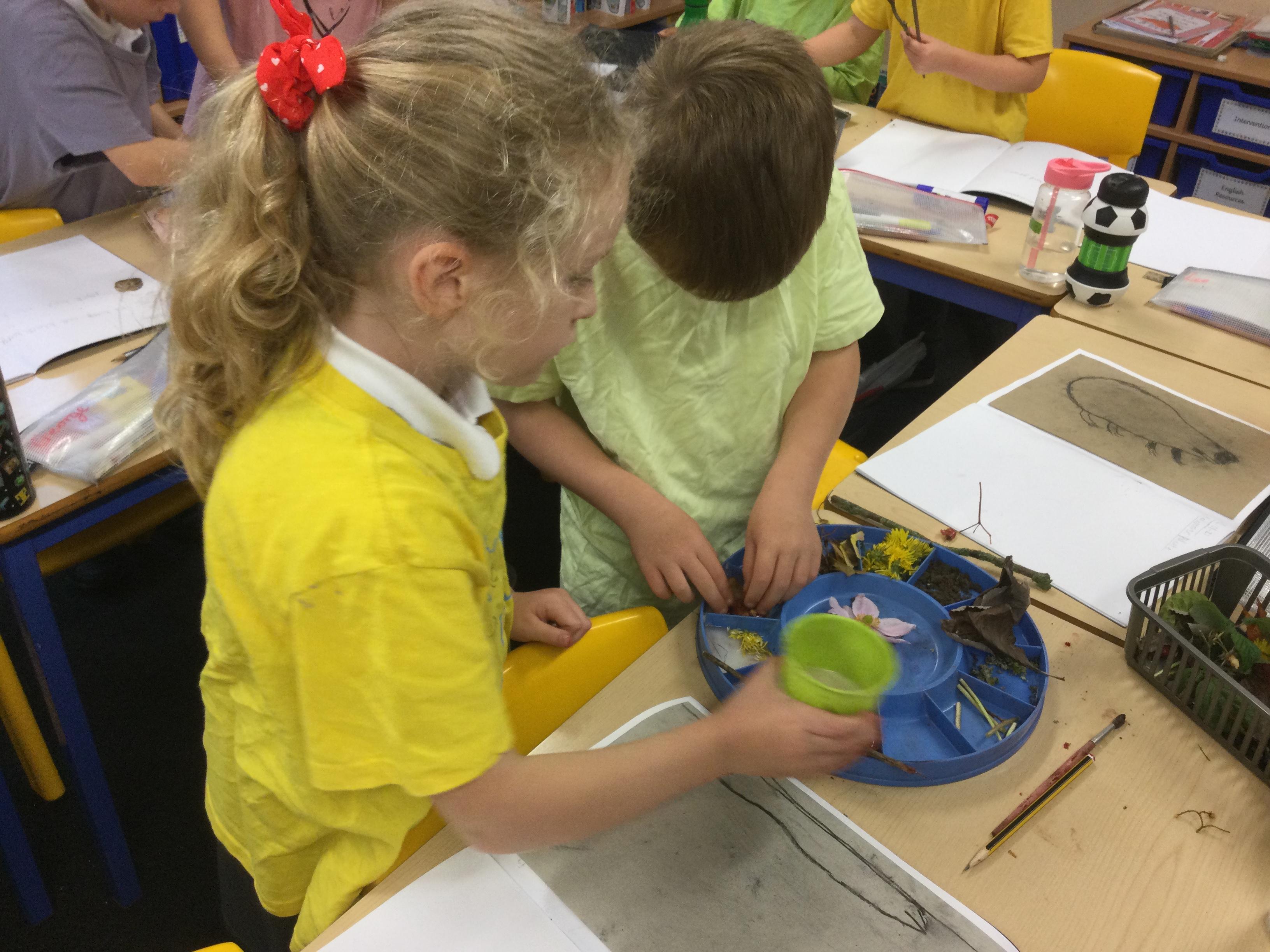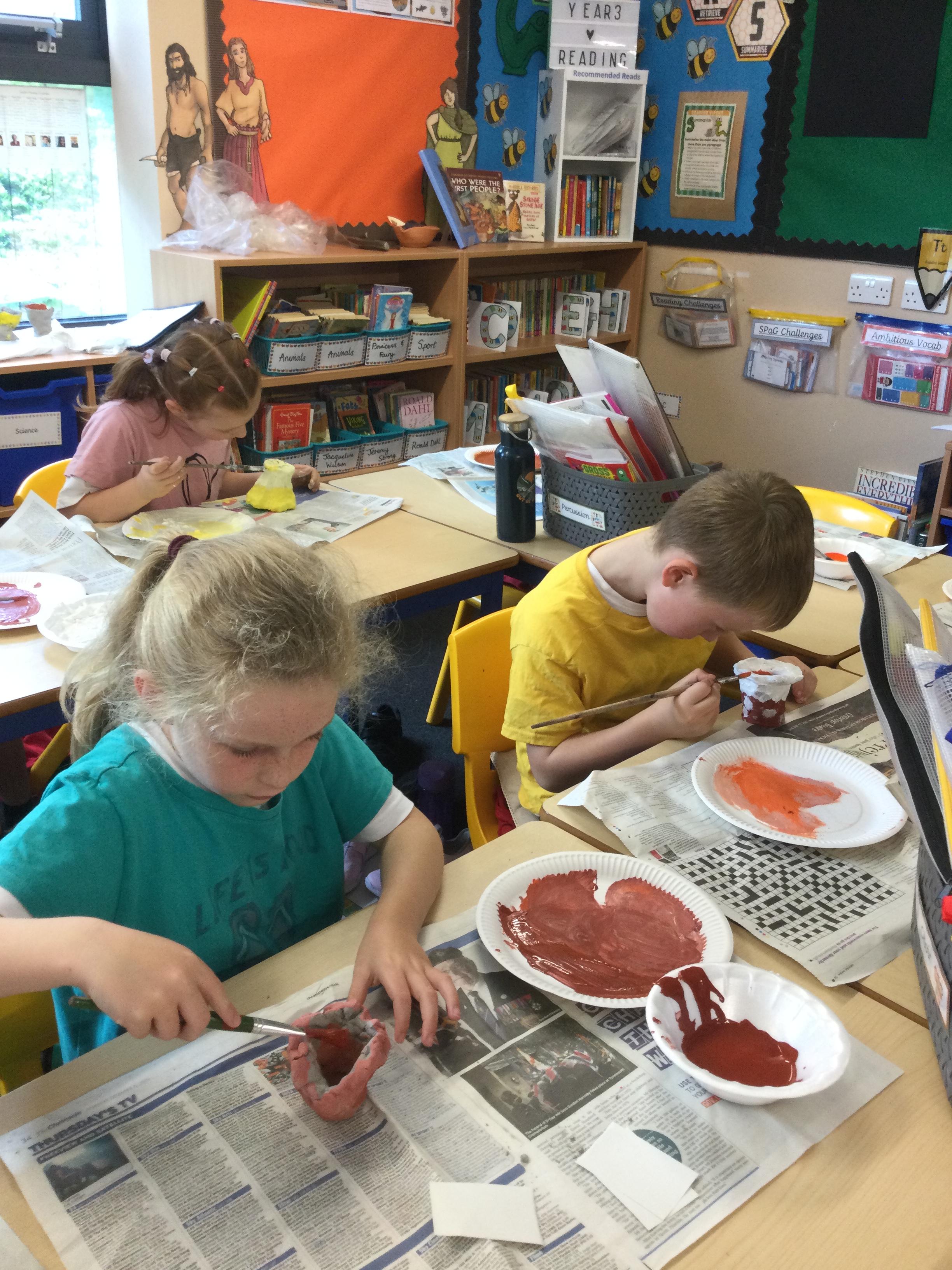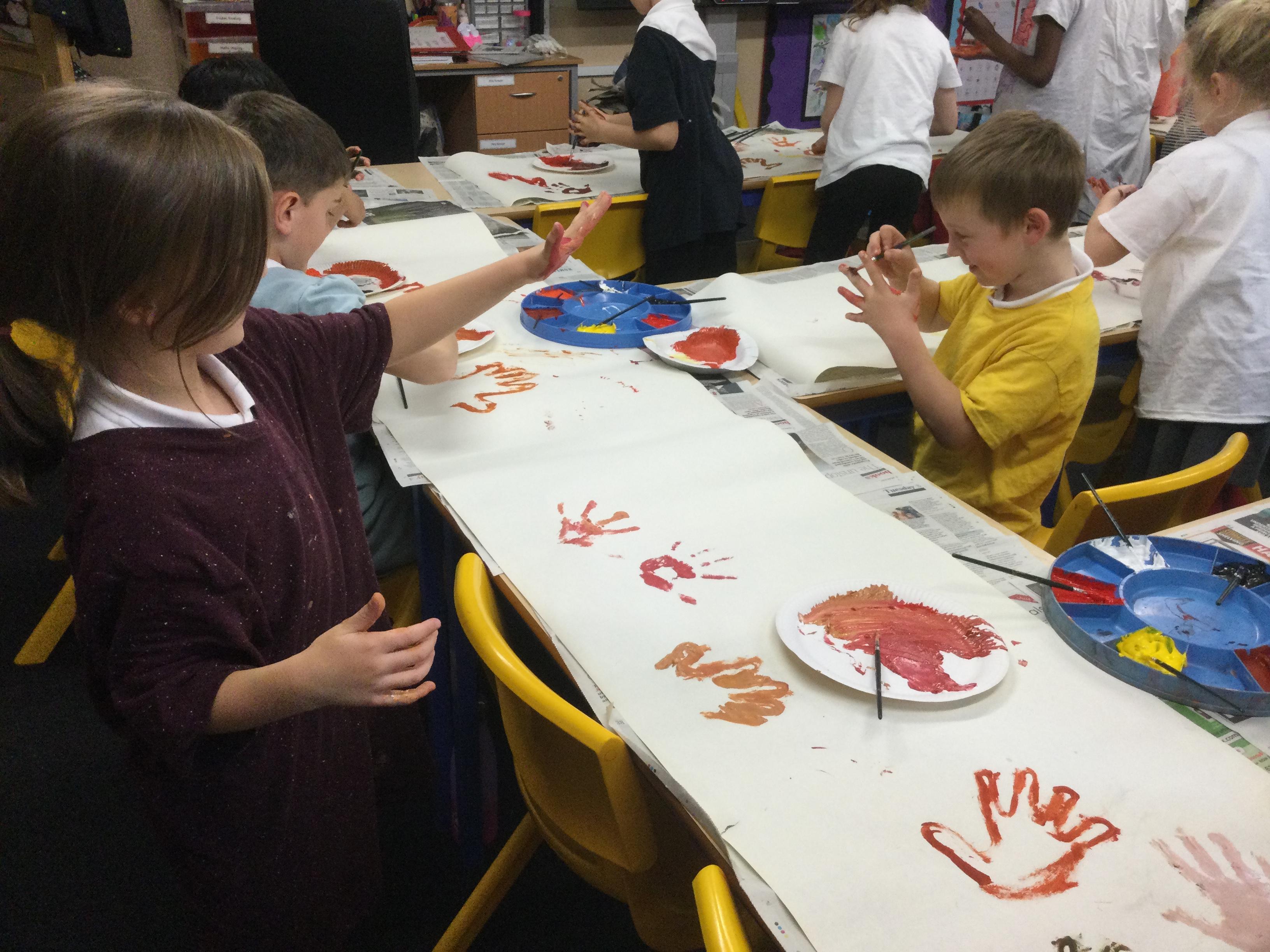 We became gatherers from the Stone Age and created our own paint with things we could find around school
