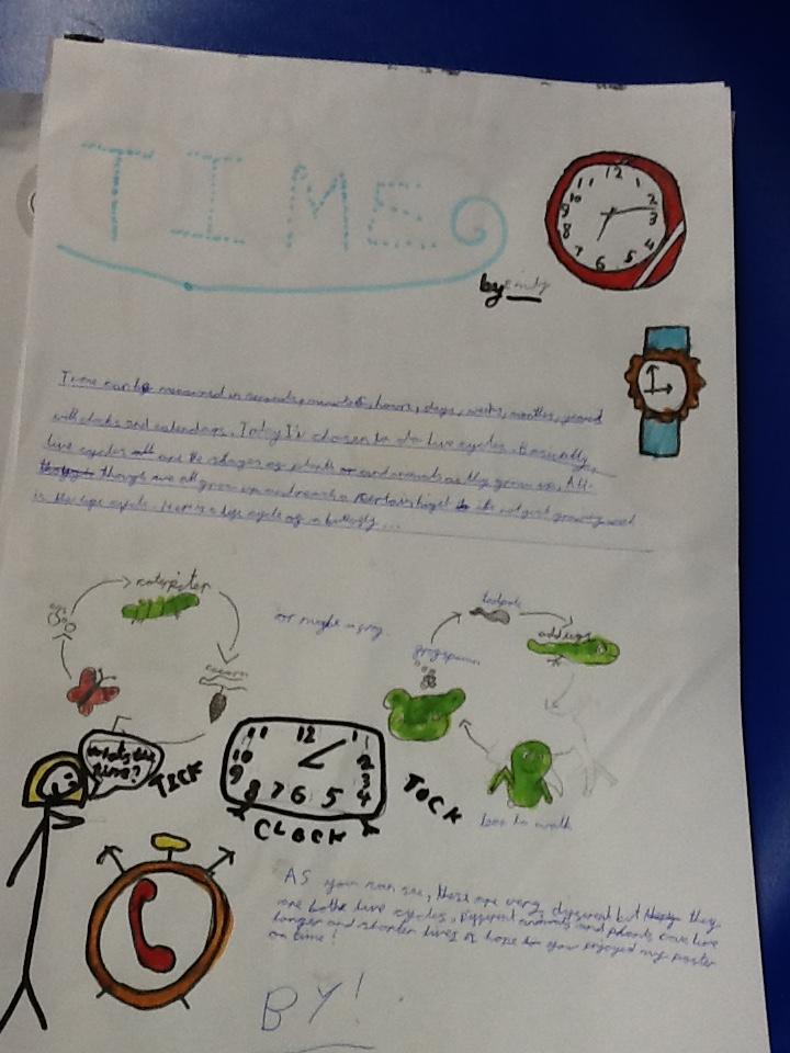 For British Science Week Year 4 have made some wonderful Posters on this year's topic of 'Time'. Can you think of how Time is found in Science?