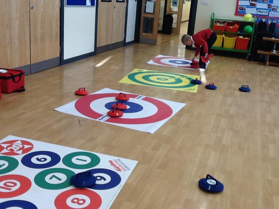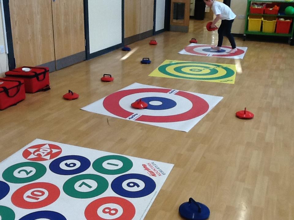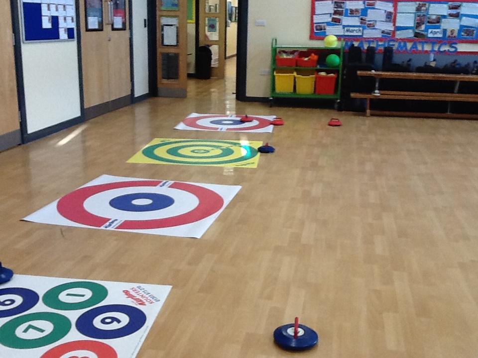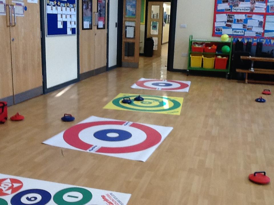 We were lucky enough to use the curling equipment today. It was a lot of fun!
