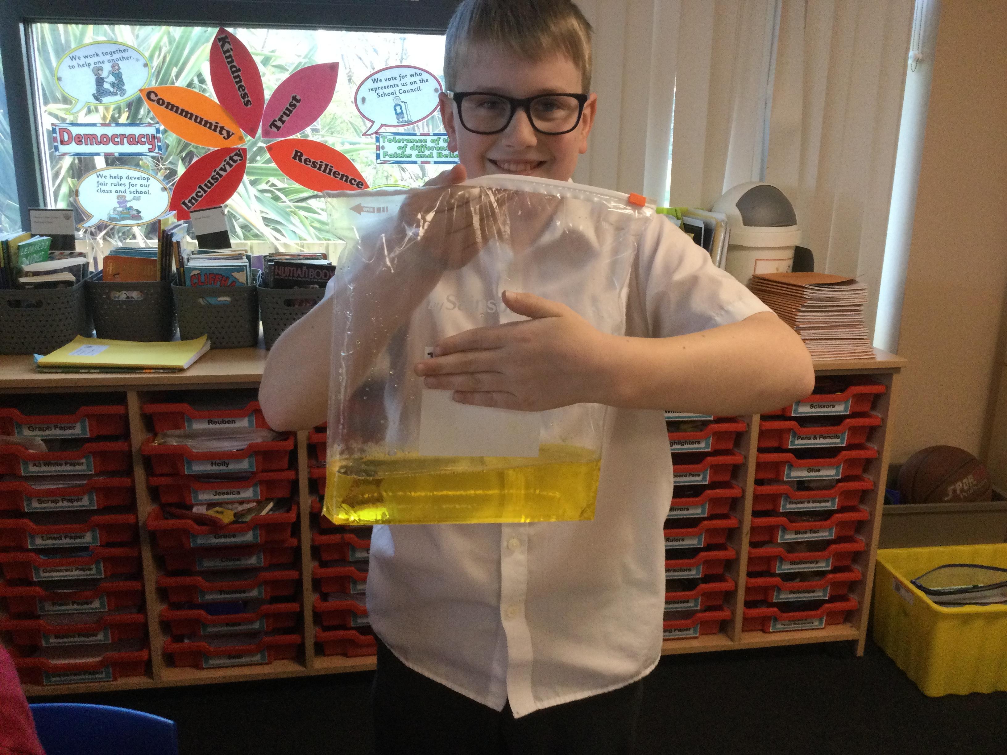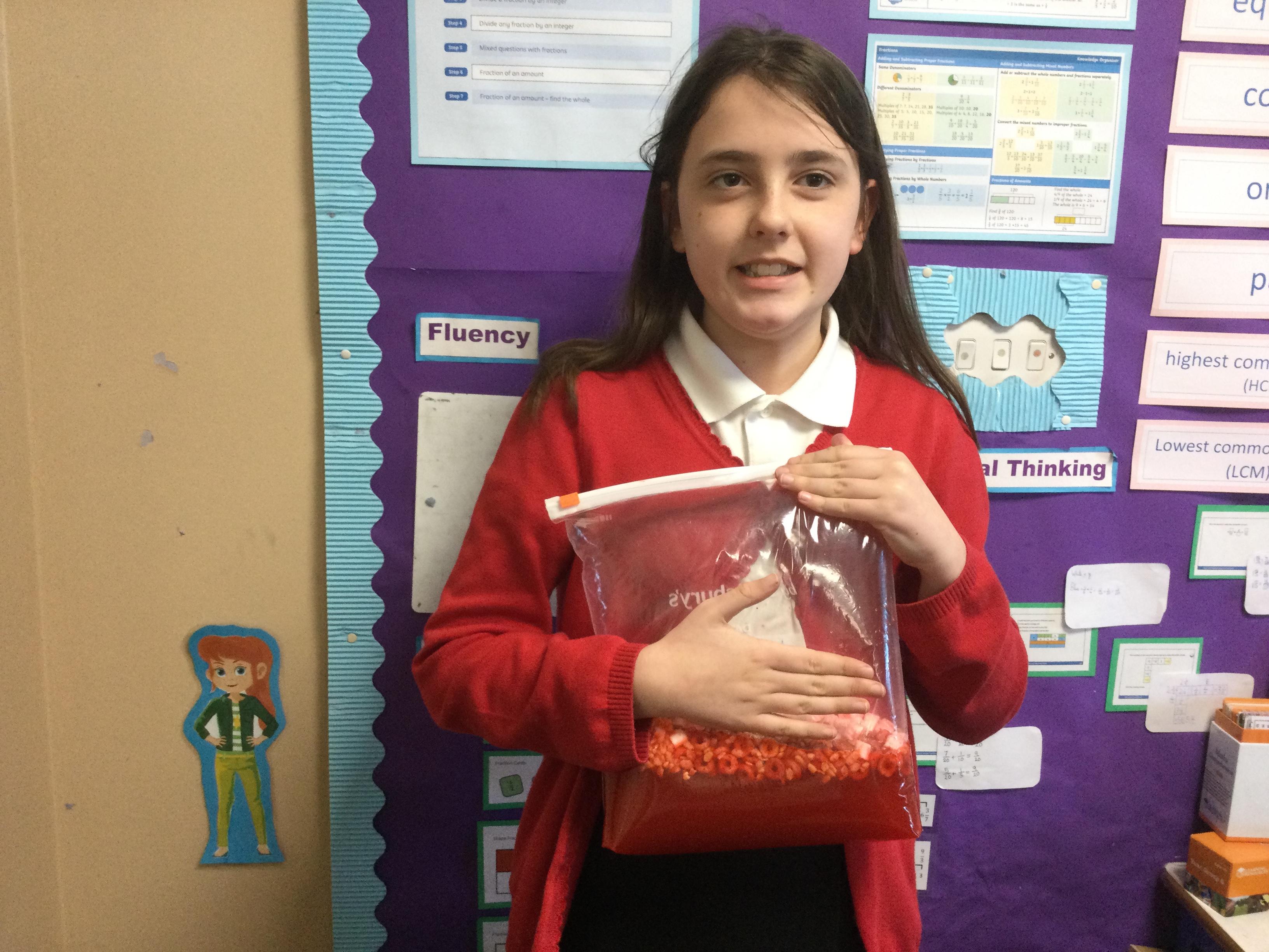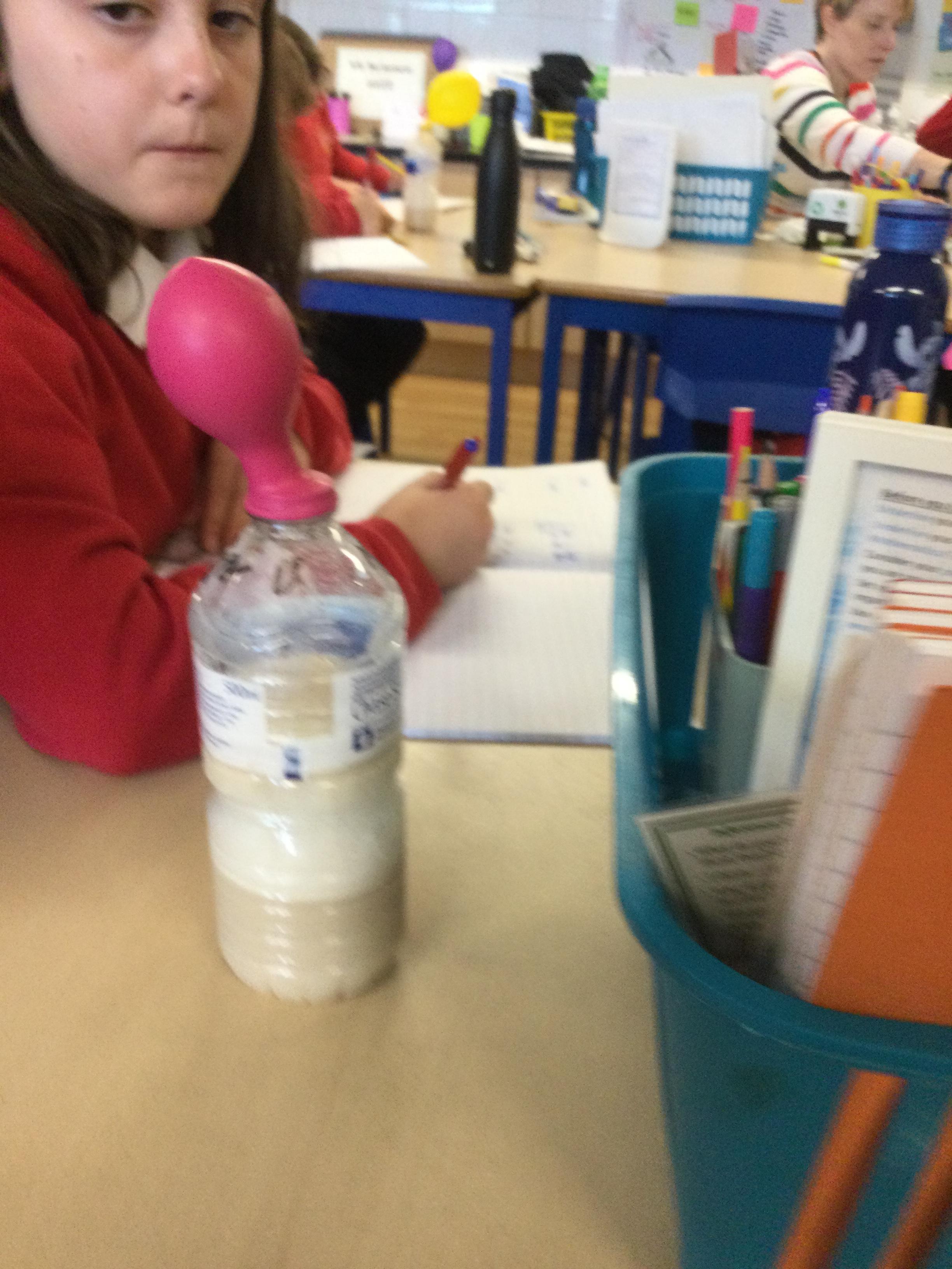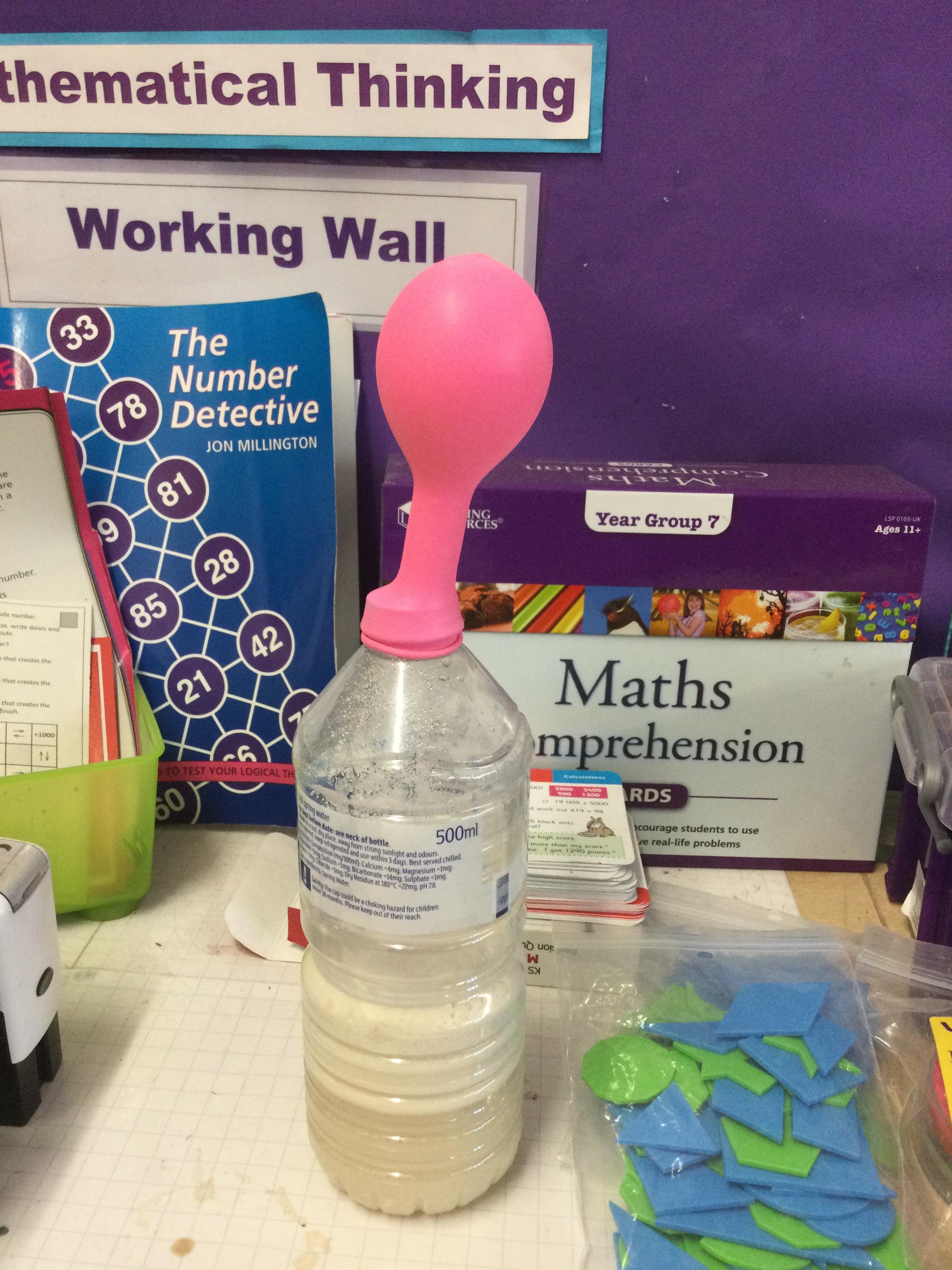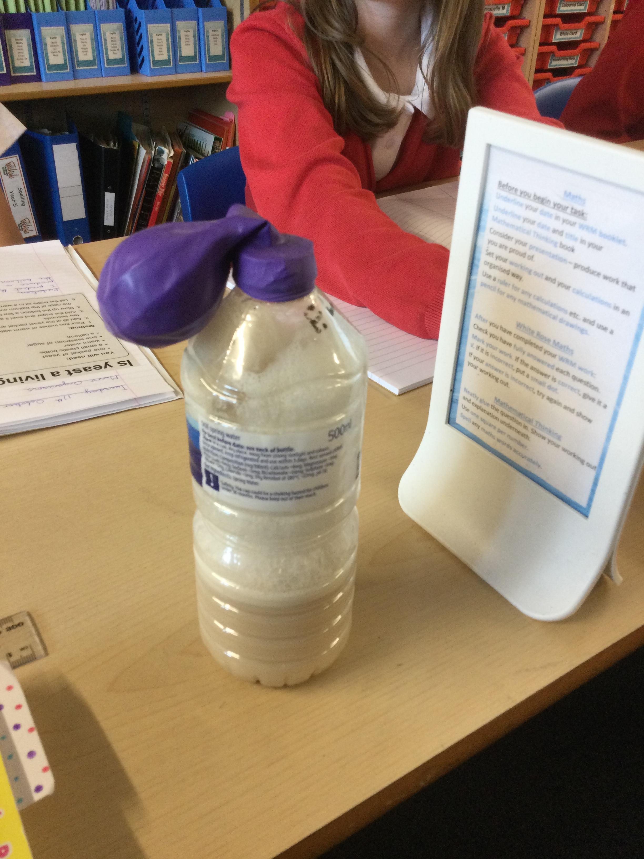 We carried out an investigation to see what effect yeast can have. We placed a teaspoon of yeast, a teaspoon of sugar and some warm water in to a bottle with a balloon placed over the top. Every ten minutes, we observed to see if anything had happened. Over time, we observed that the balloon was rising and this was due to the gas that had been produced due to the reaction of the yeast, sugar and warm water.