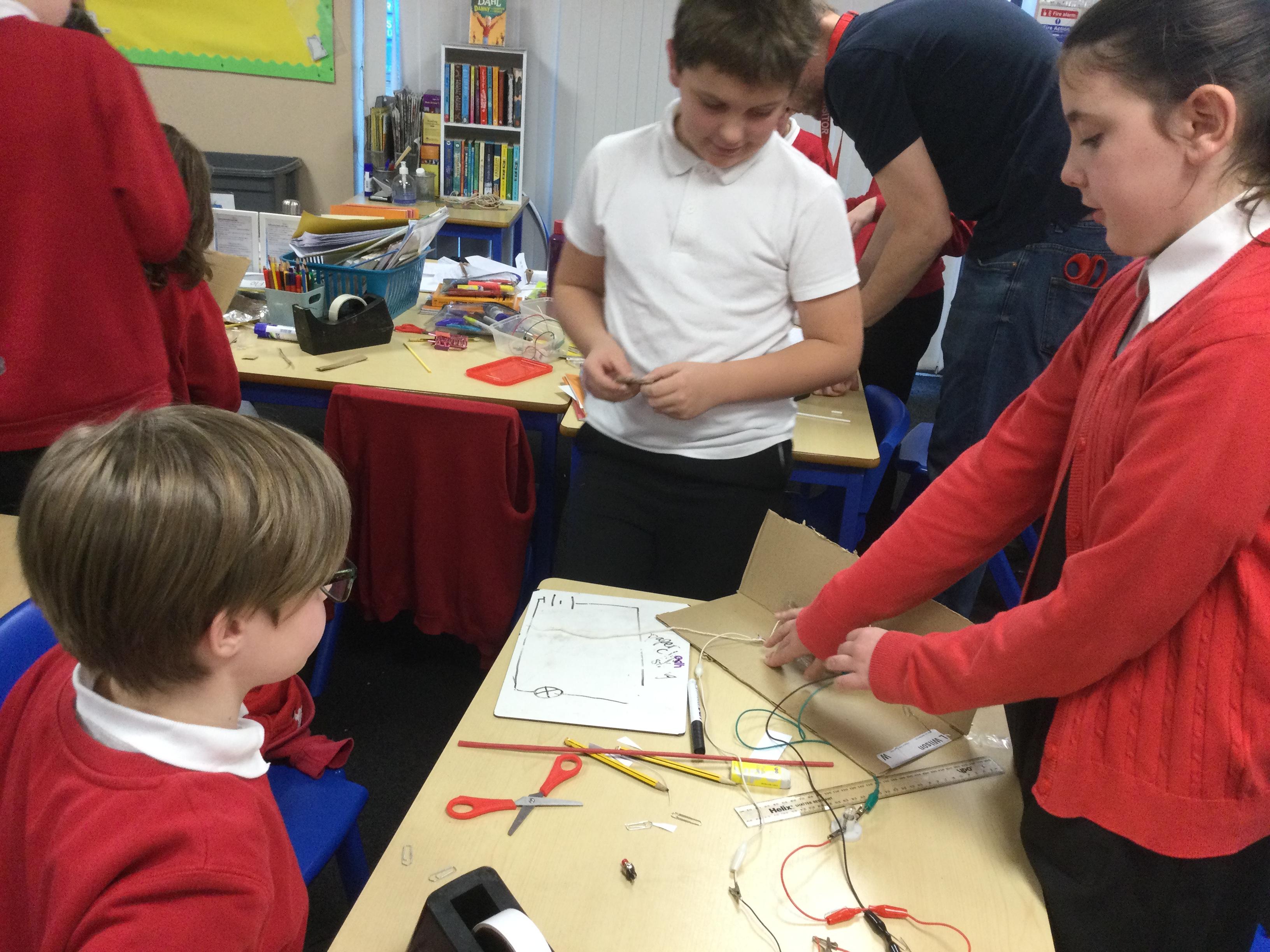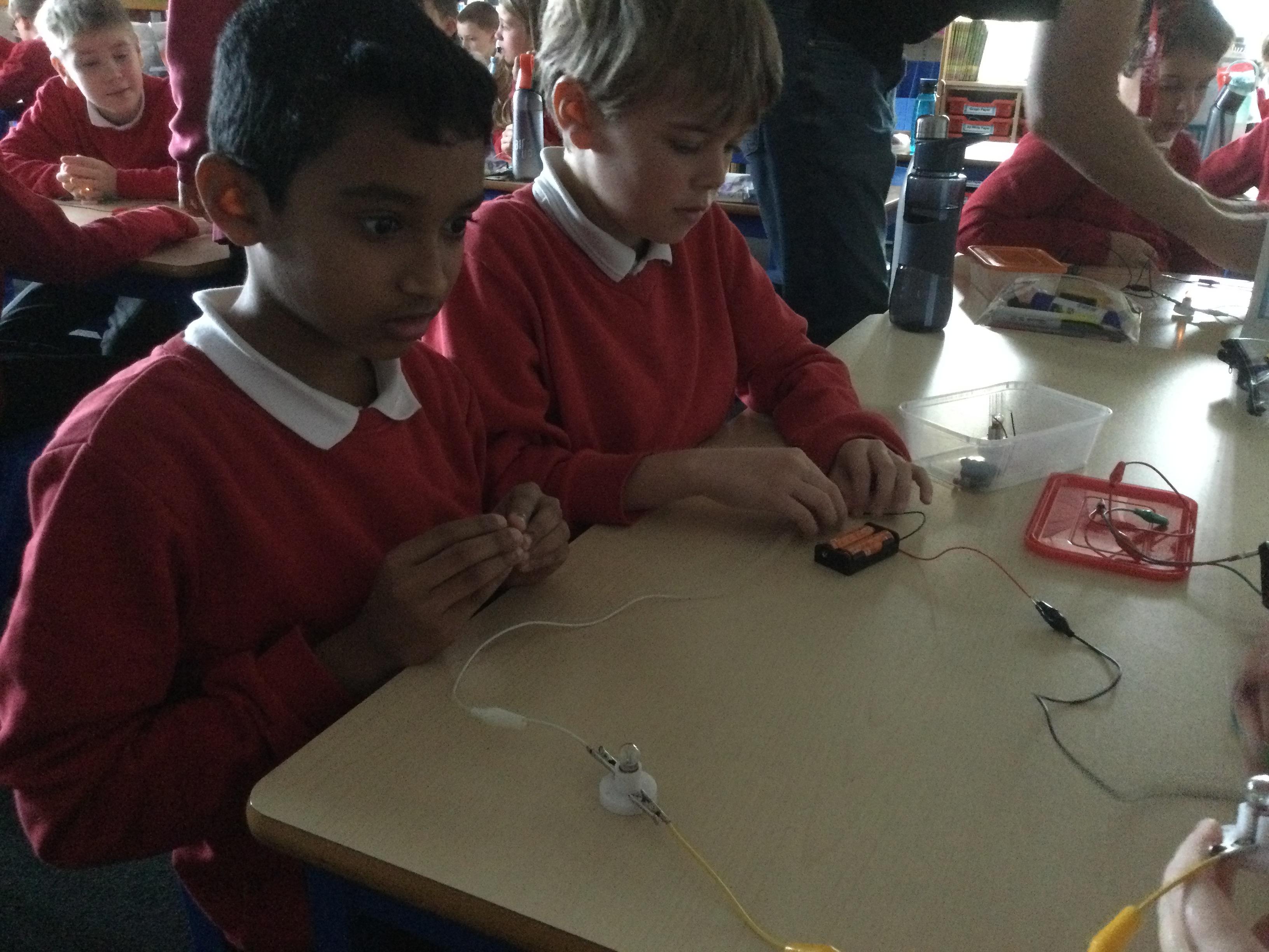 Captain Chemistry paid Year 6 a visit with electricity as a focus. We looked at static electricity, created a physical series circuit, investigated how adding components to a circuit affected the brightness of bulbs and made our own wind turbines. After this, we had a scenario of a statue in a museum that needed protecting by an alarm. We had to create a circuit so that when pressure was applied the buzzer (alarm) would not sound, but if someone tried to steal the sensor the buzzer would sound. We made some fantastic creations.